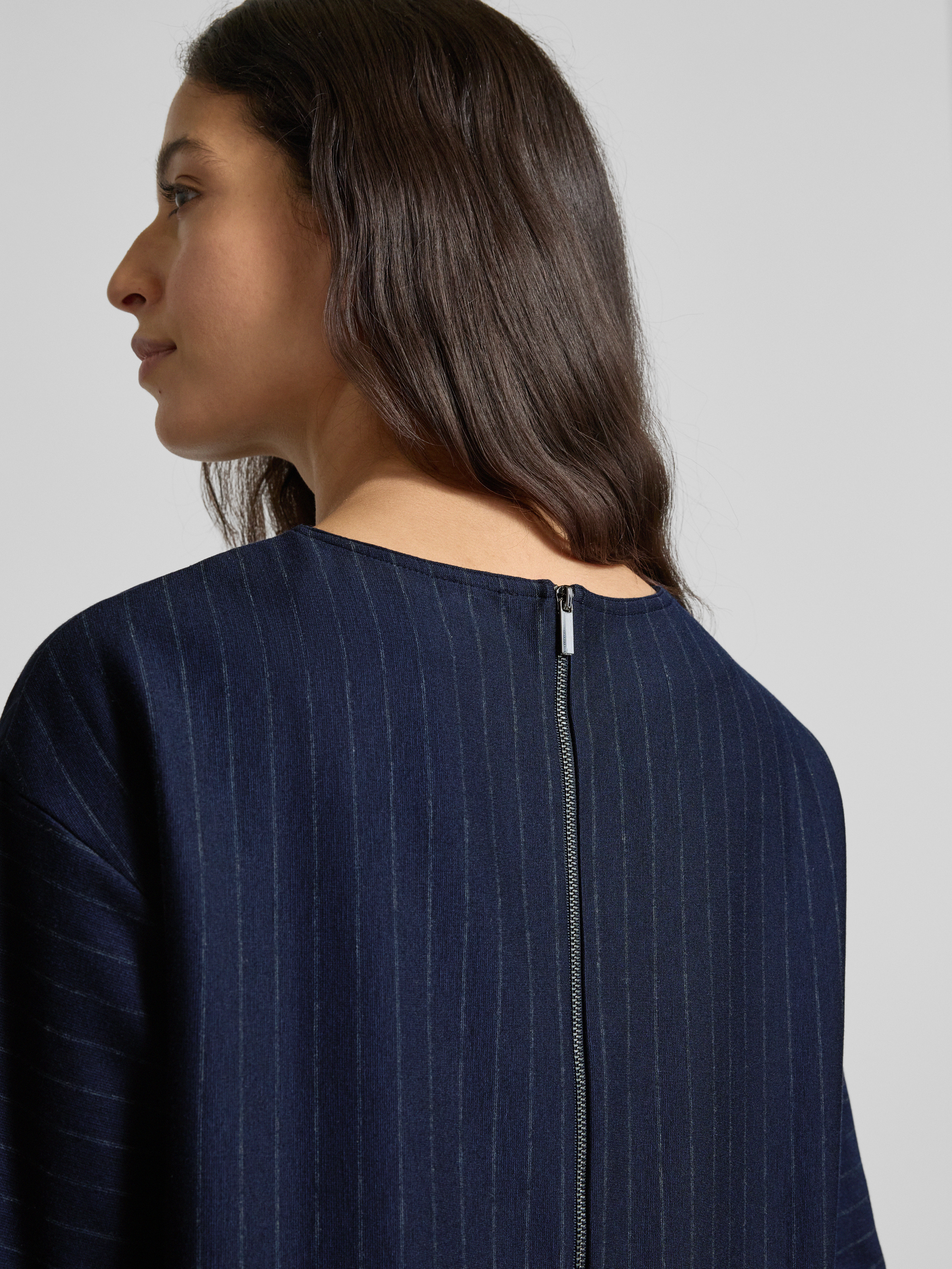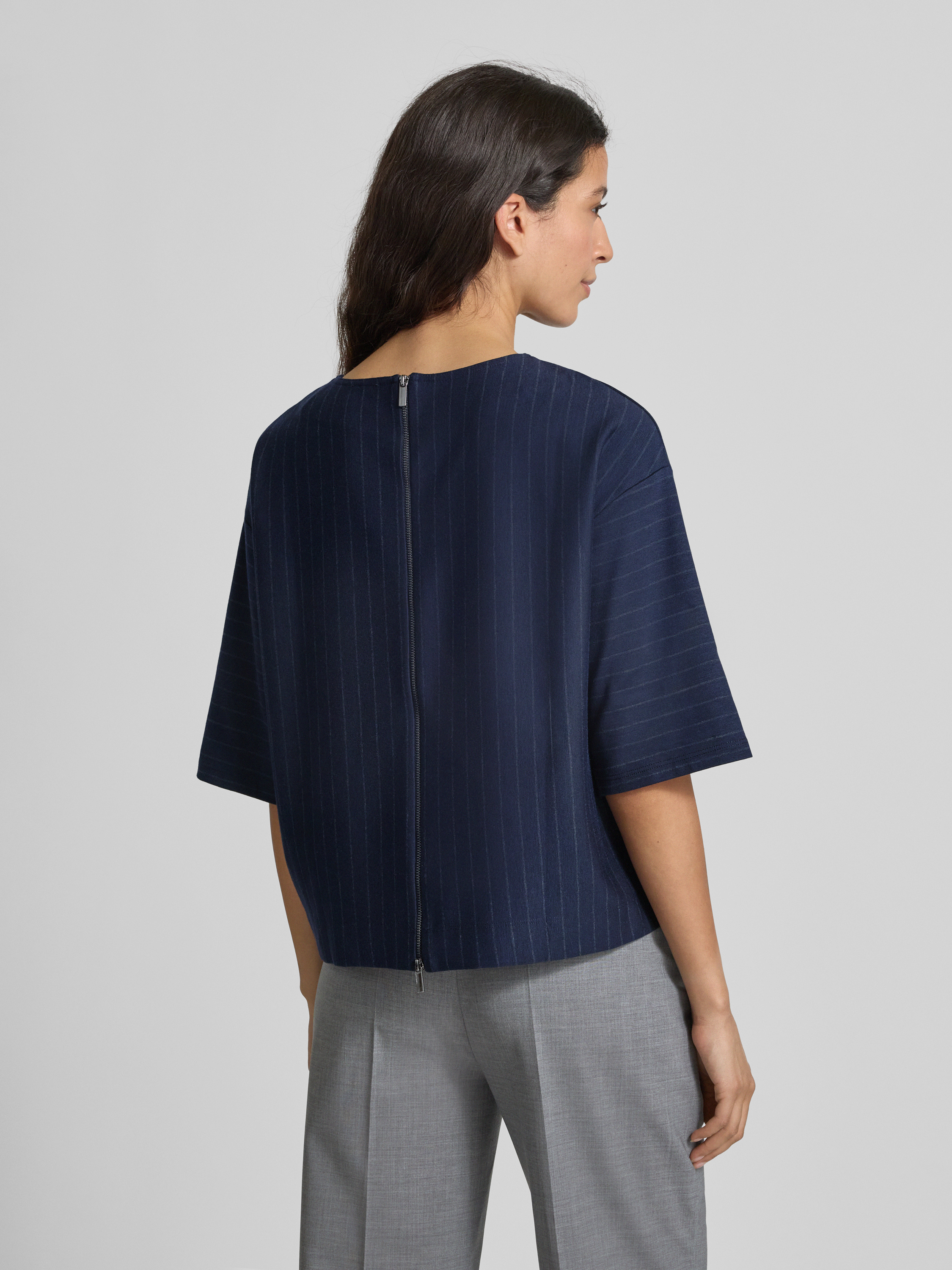 Bluzka o kroju relaxed fit z mieszanki wiskozy model ‘KAYA’ - granatowy