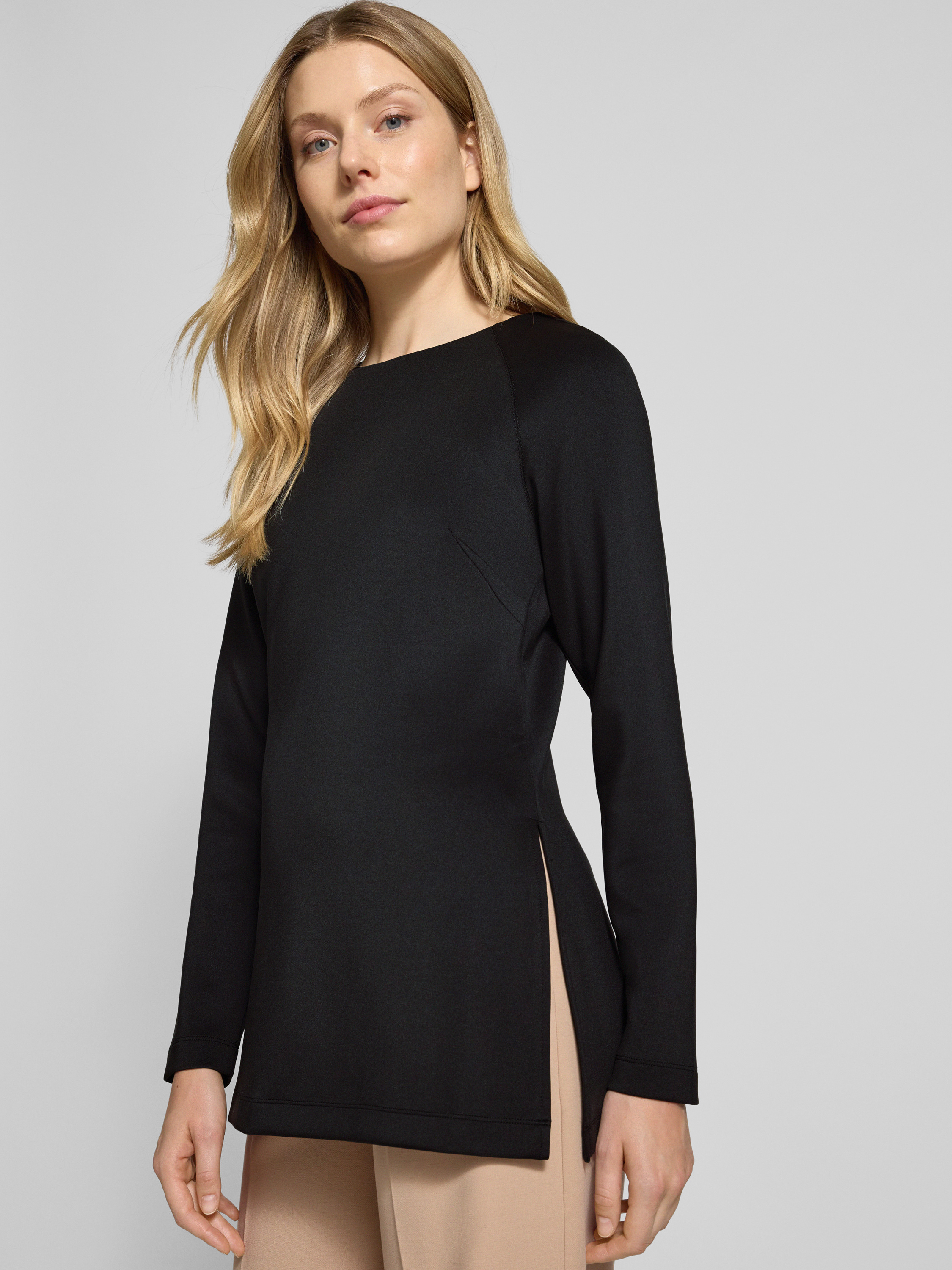 Bluzka z długim rękawem o kroju regular fit ze scuby model ‘UNDICI’ - czarny