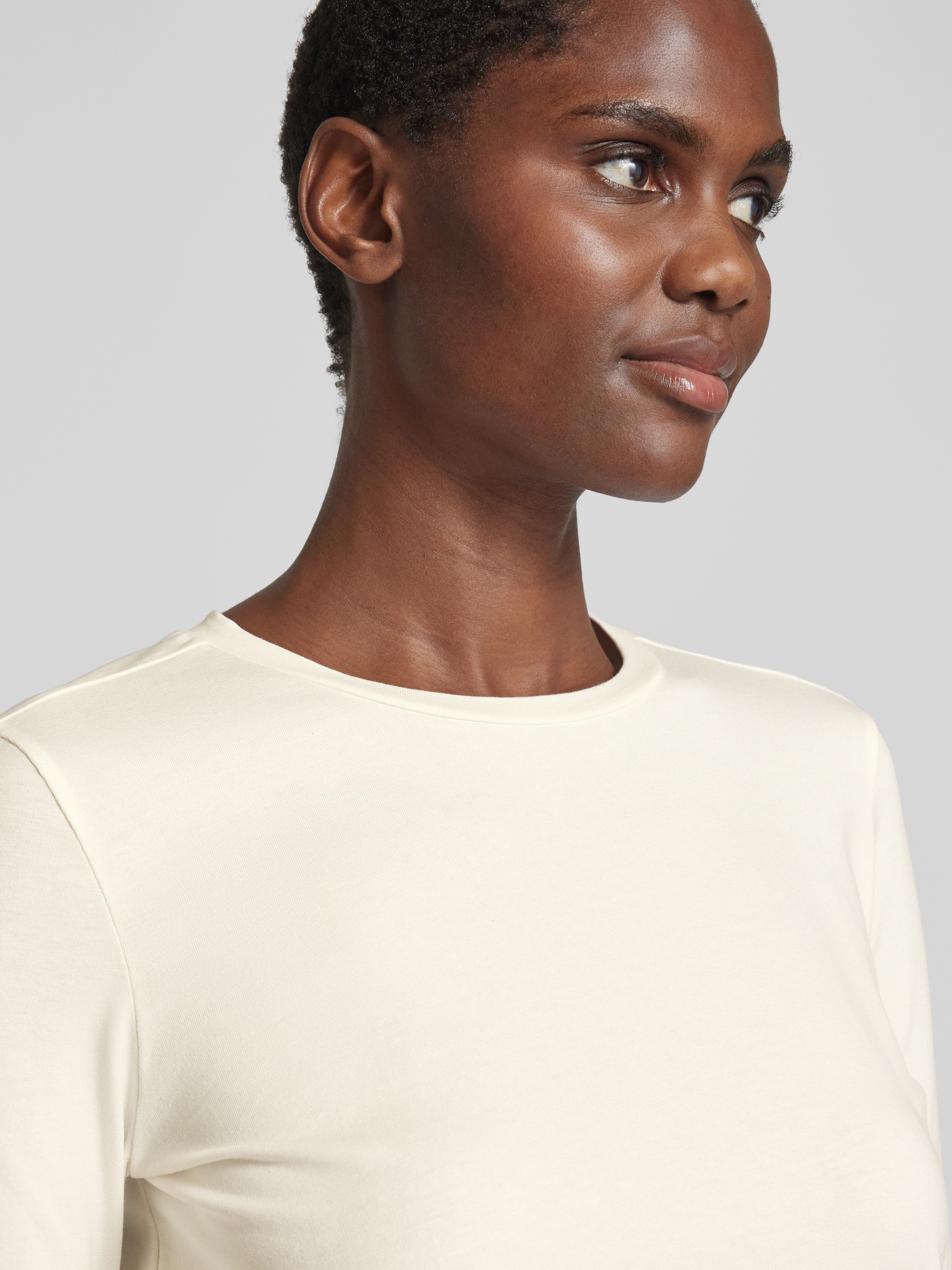 Bluzka z długim rękawem o kroju slim fit z mieszanki bawełny model ‘CRIS’ - écru