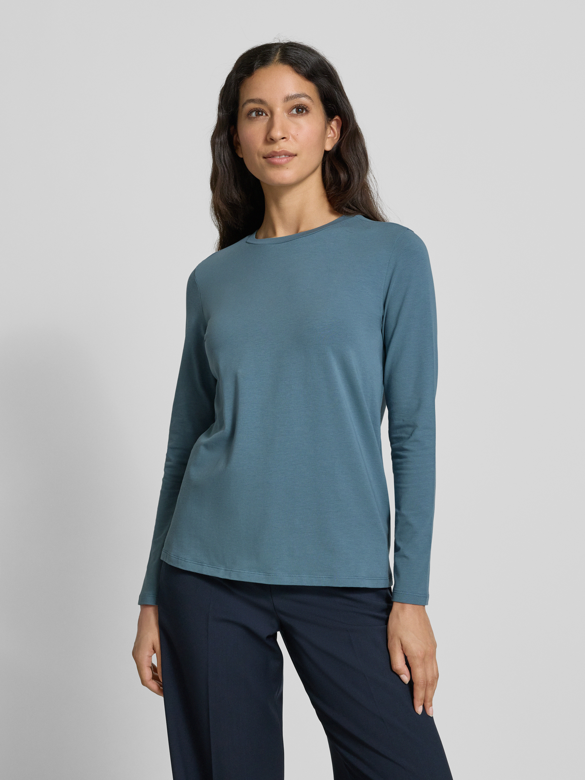 Bluzka z długim rękawem o kroju slim fit z mieszanki bawełny model ‘CRIS’ - jasnoniebieski