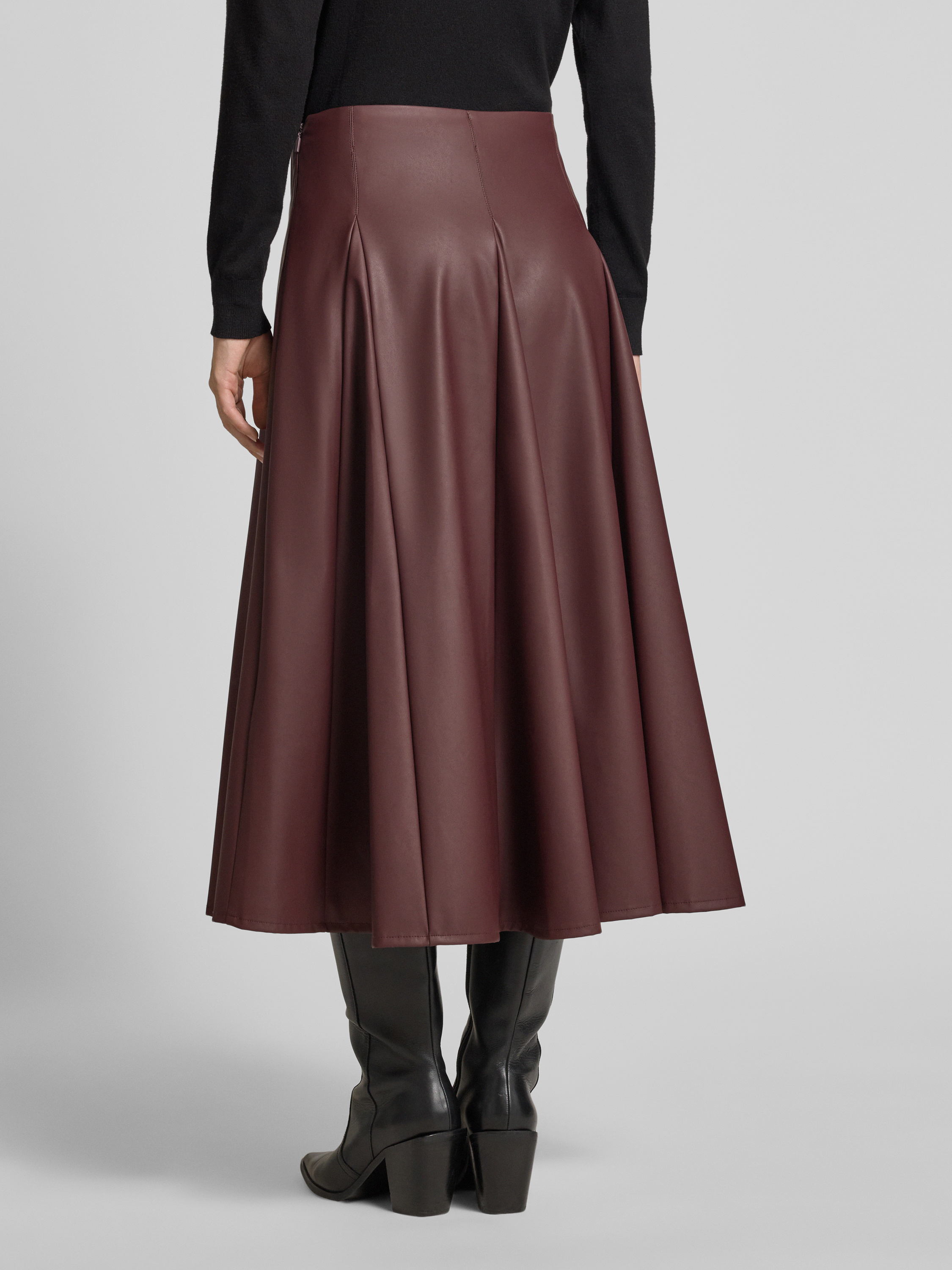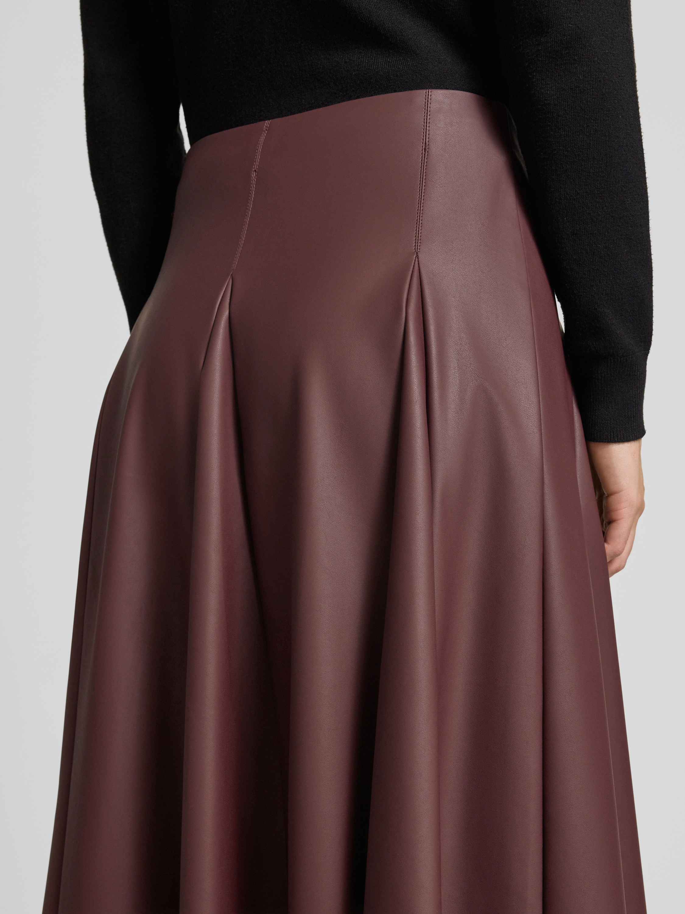 Spódnica rozkloszowana z imitacji skóry model ‘NOCERA’ - oberżynowy