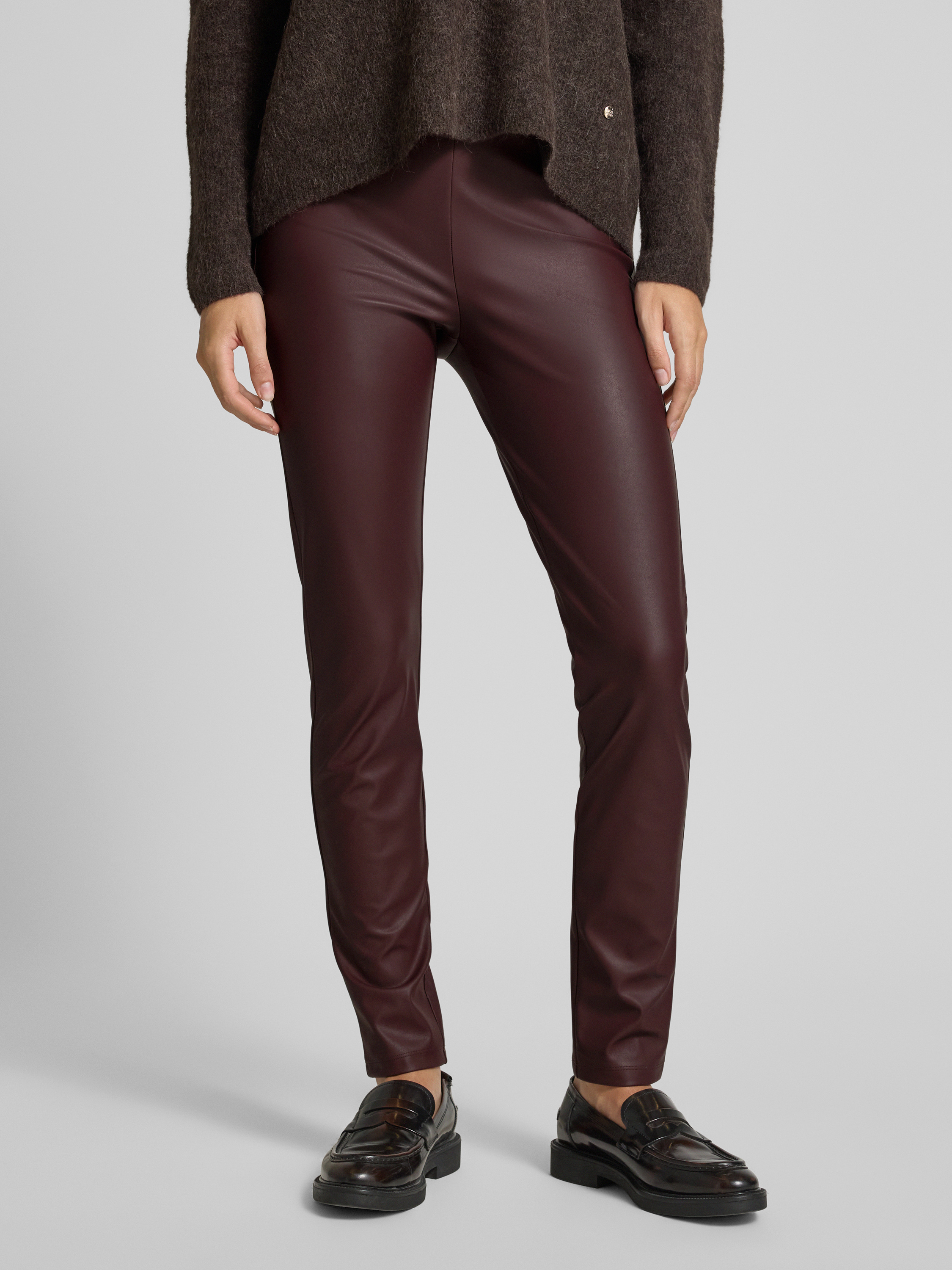 Spodnie o kroju slim fit z imitacji skóry z elastycznym pasem model ‘ECHO’ - oberżynowy