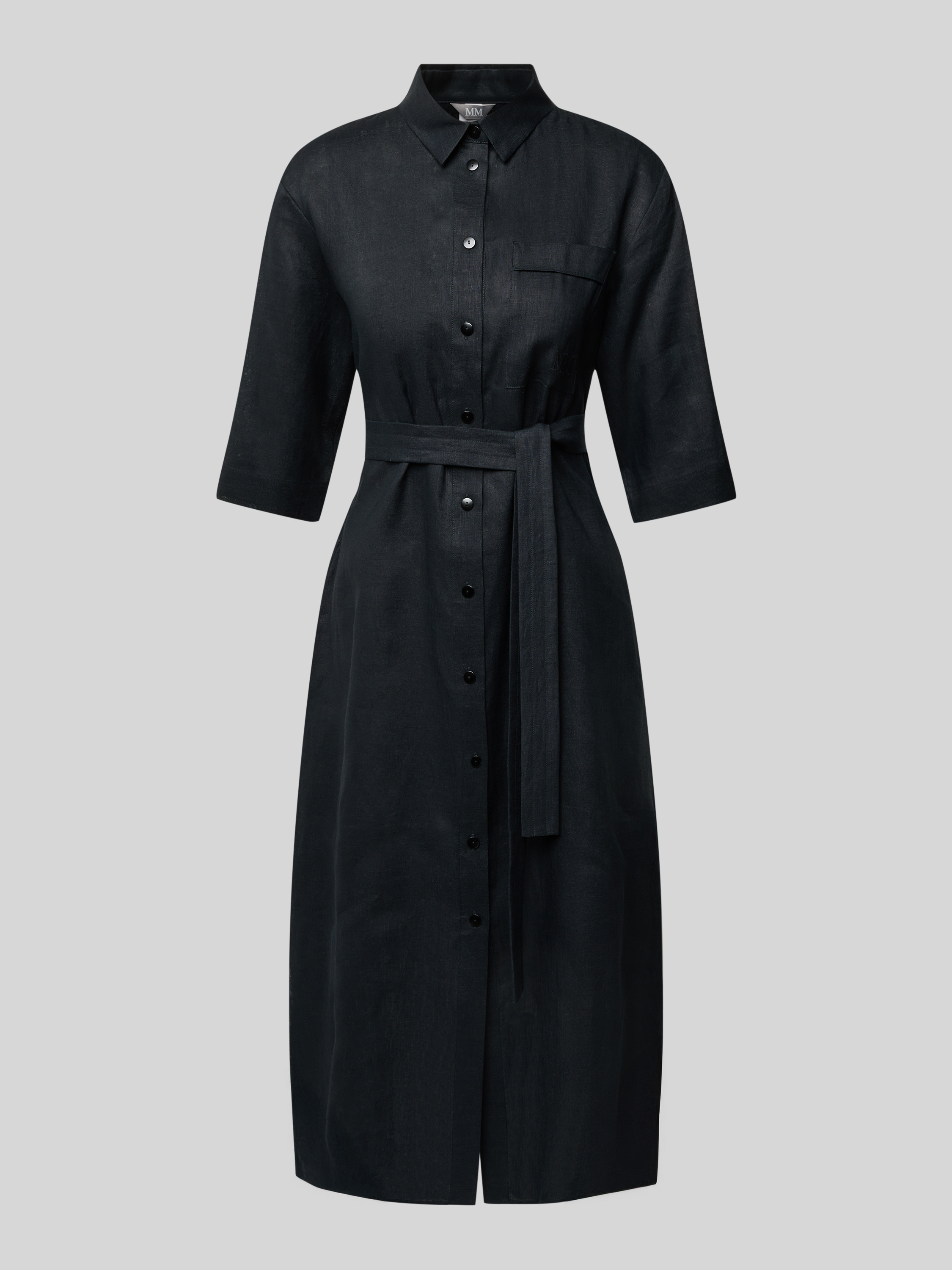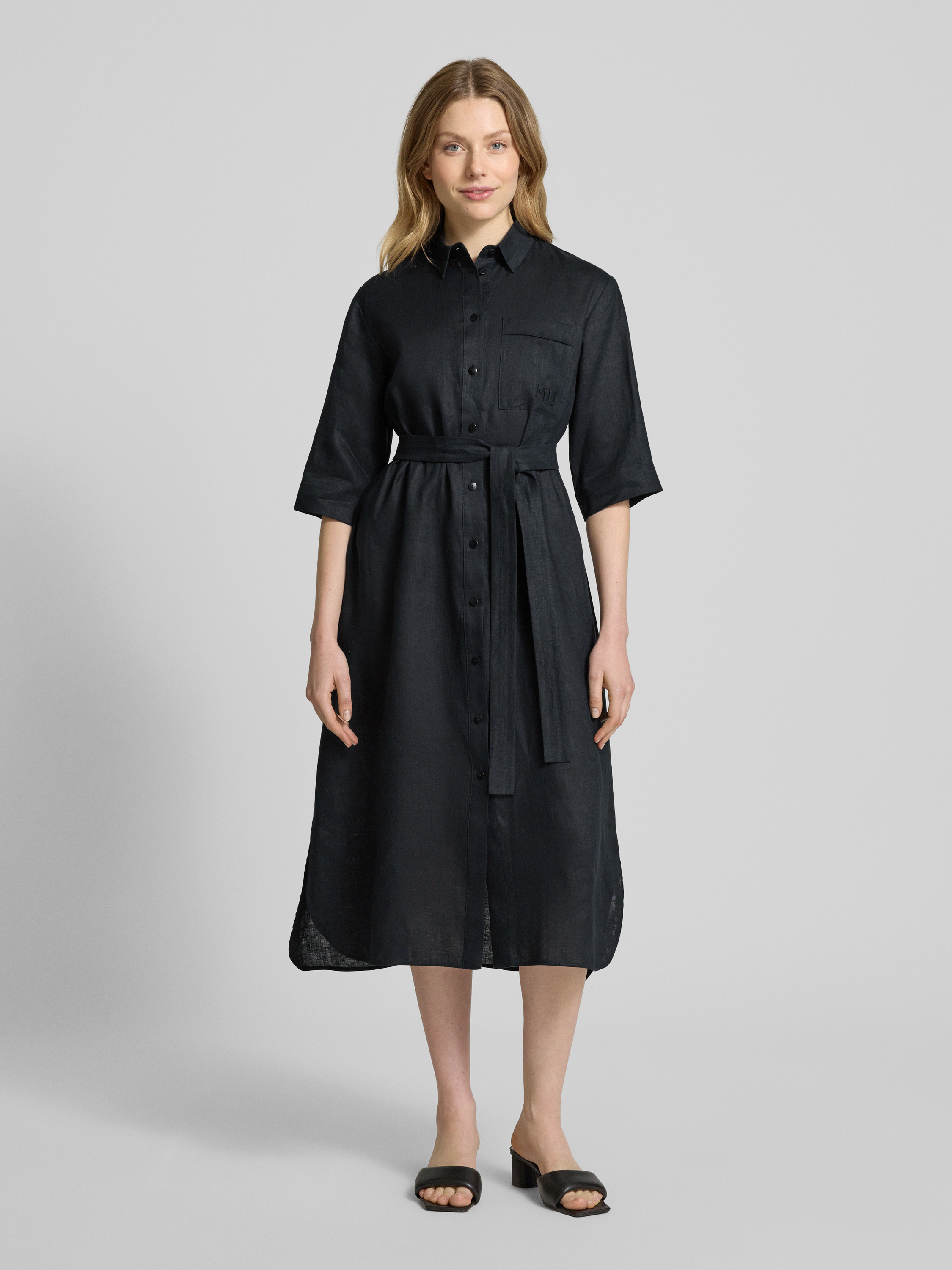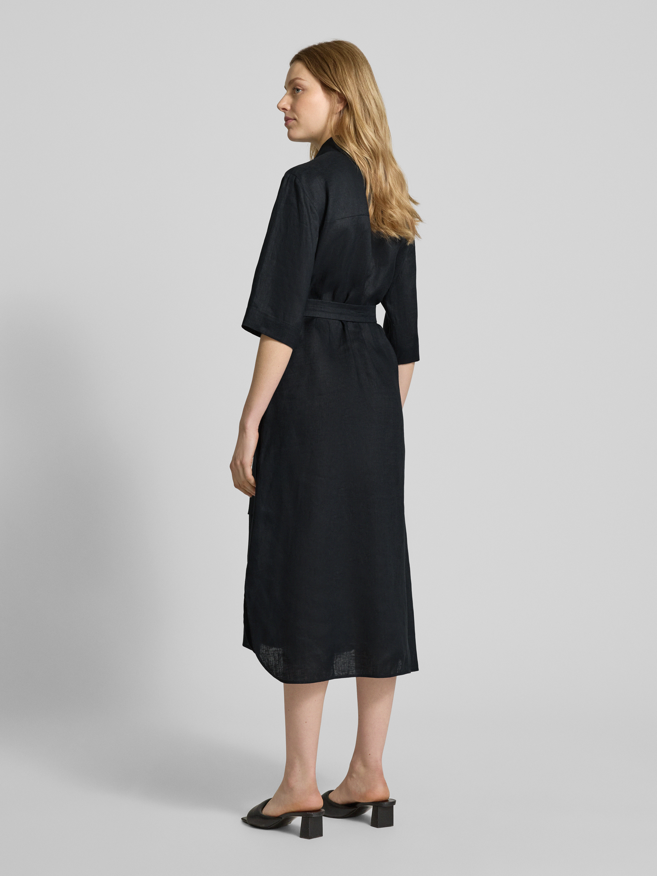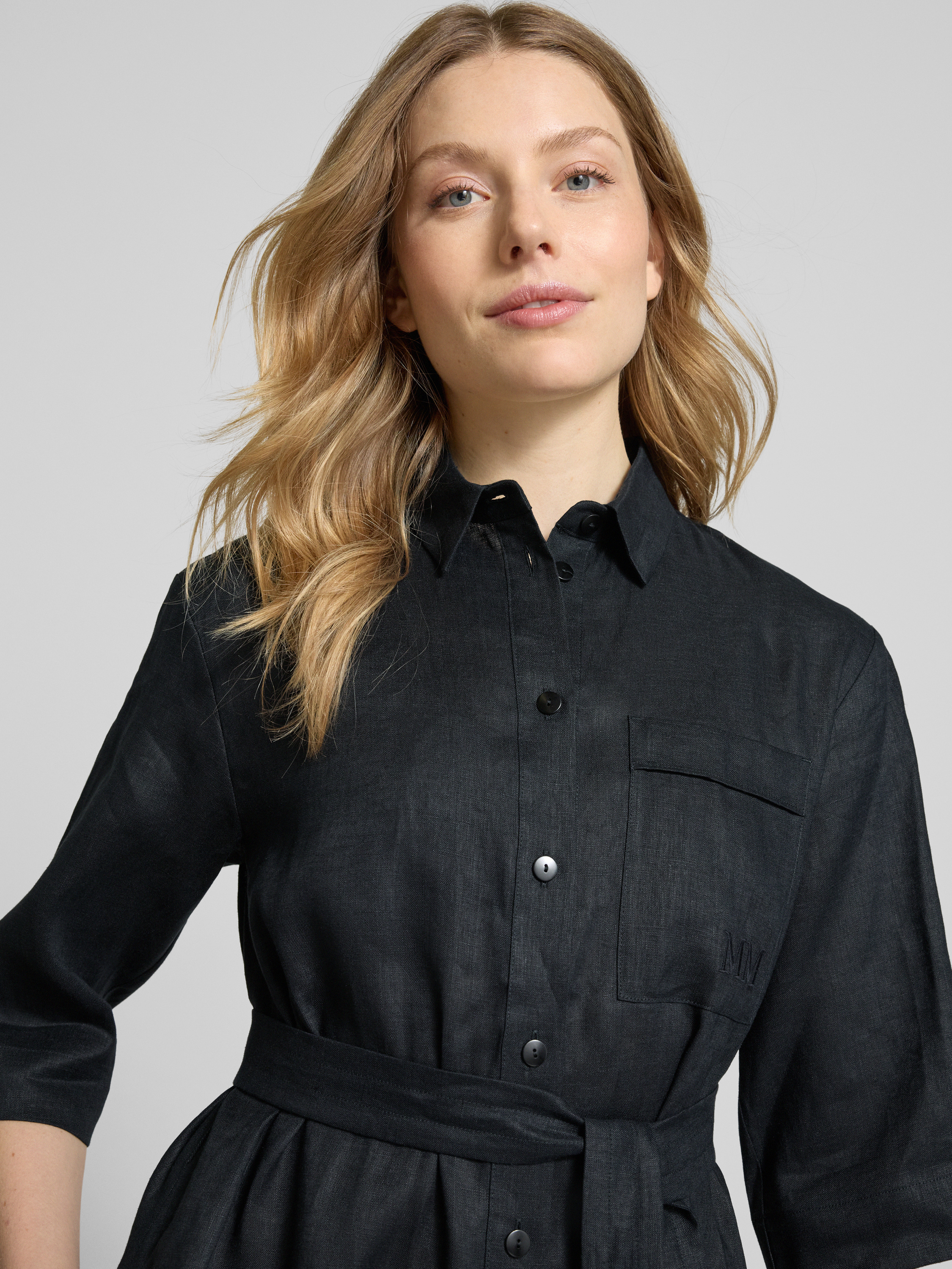 Sukienka lniana z kieszenią na piersi model ‘SALUTE’ - czarny