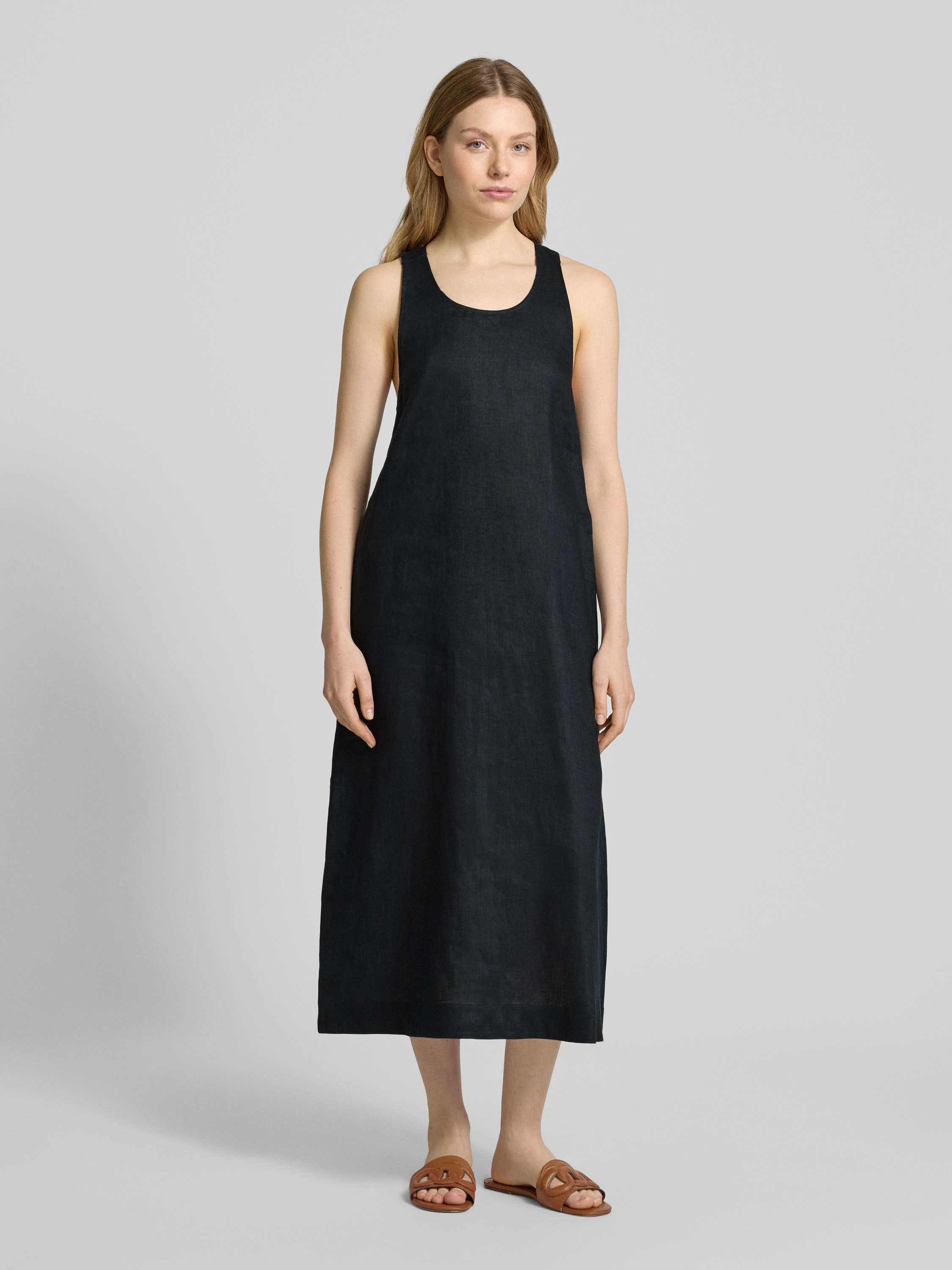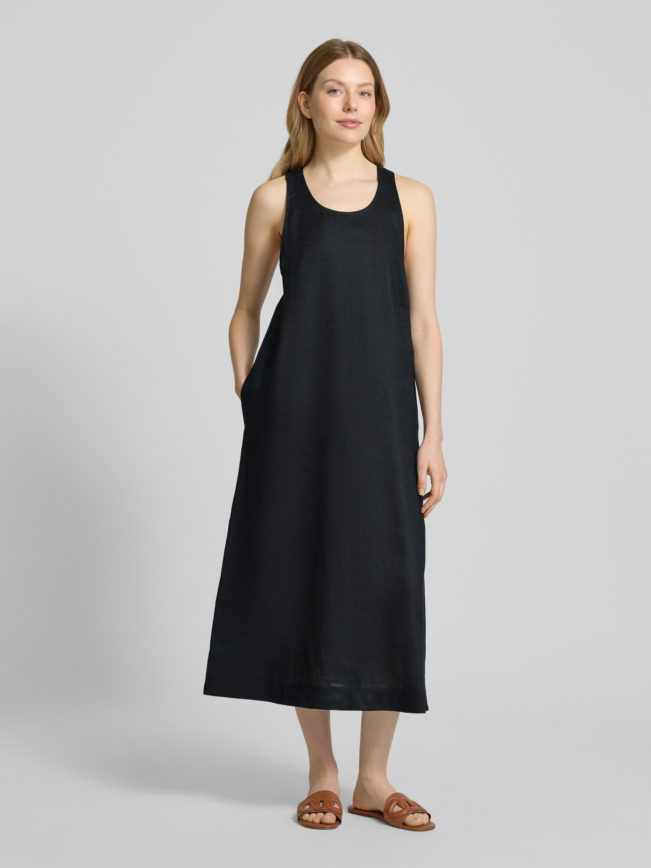 Sukienka lniana z wpuszczanymi kieszeniami model ‘DOUGLAS’ - czarny