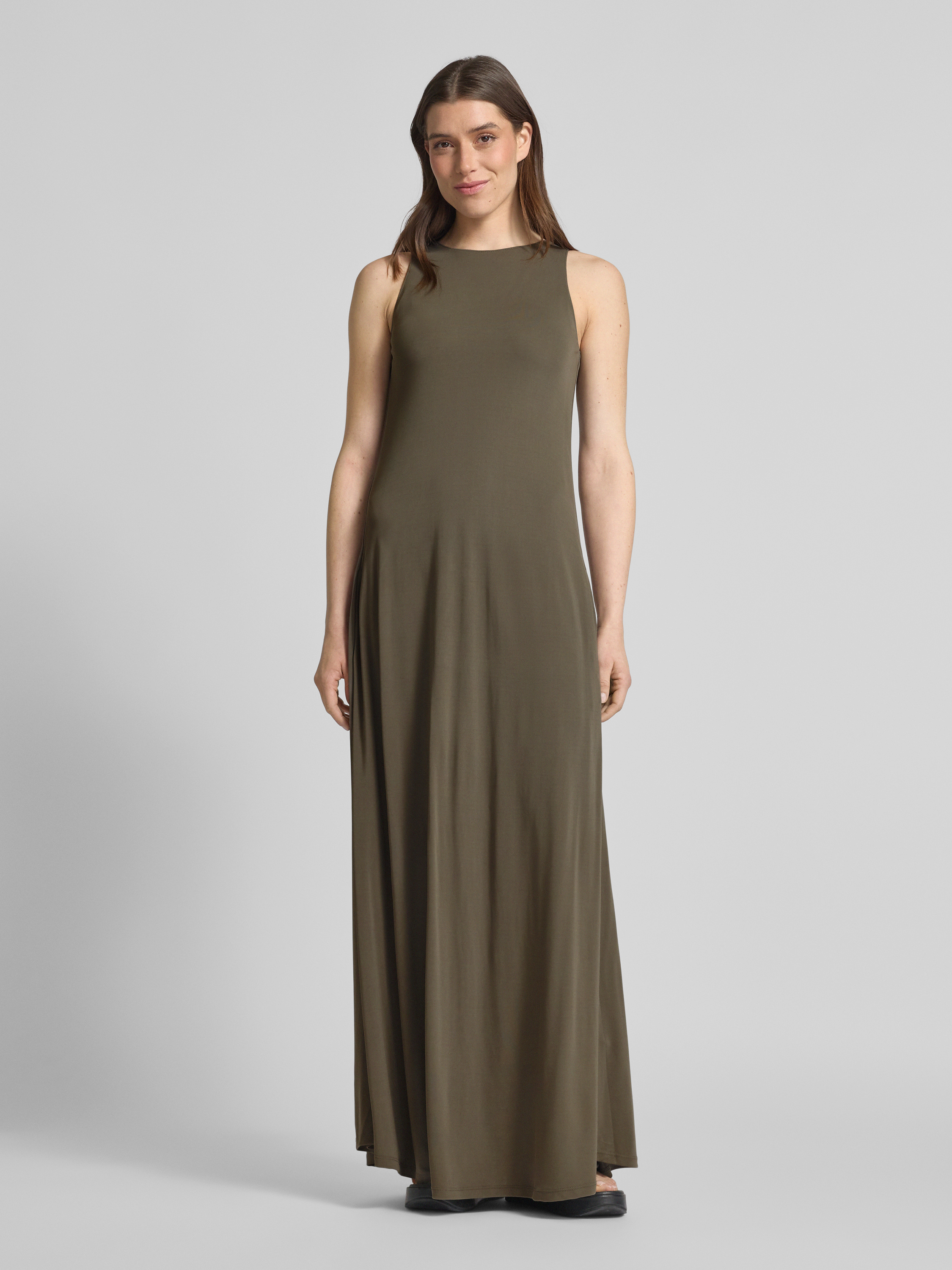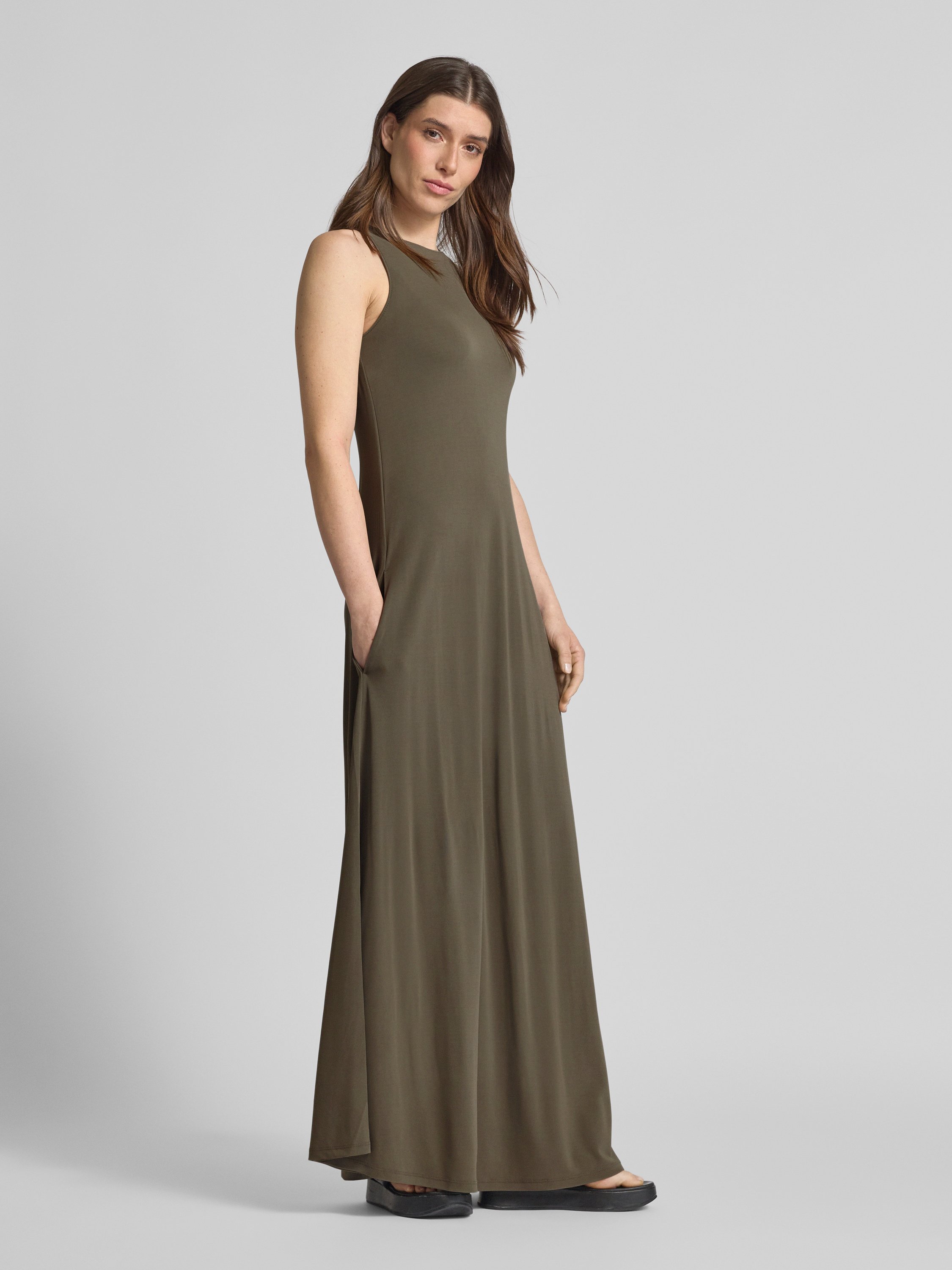 Sukienka midi z okrągłym dekoltem model ‘ACCENTO’ - oliwkowy