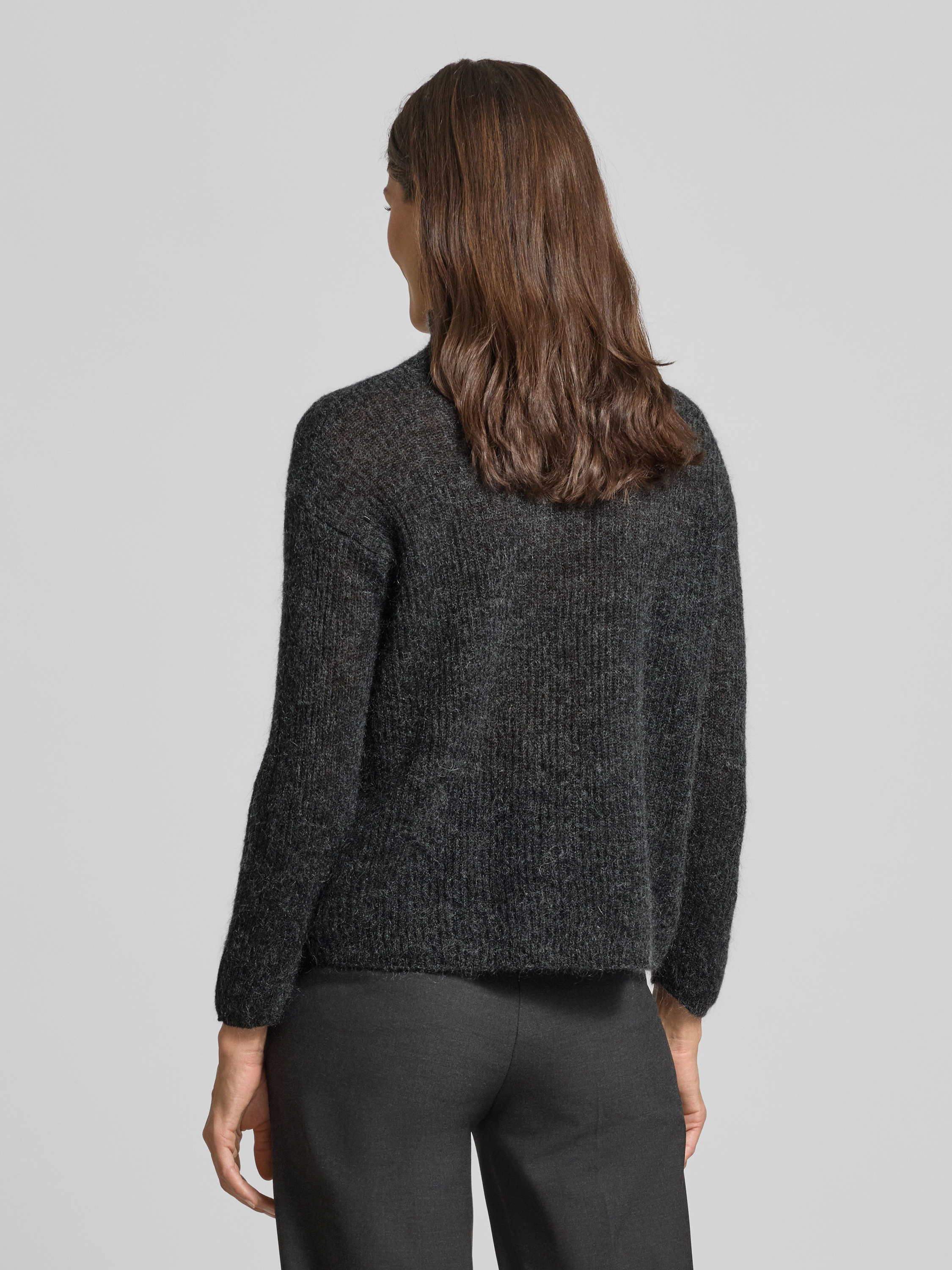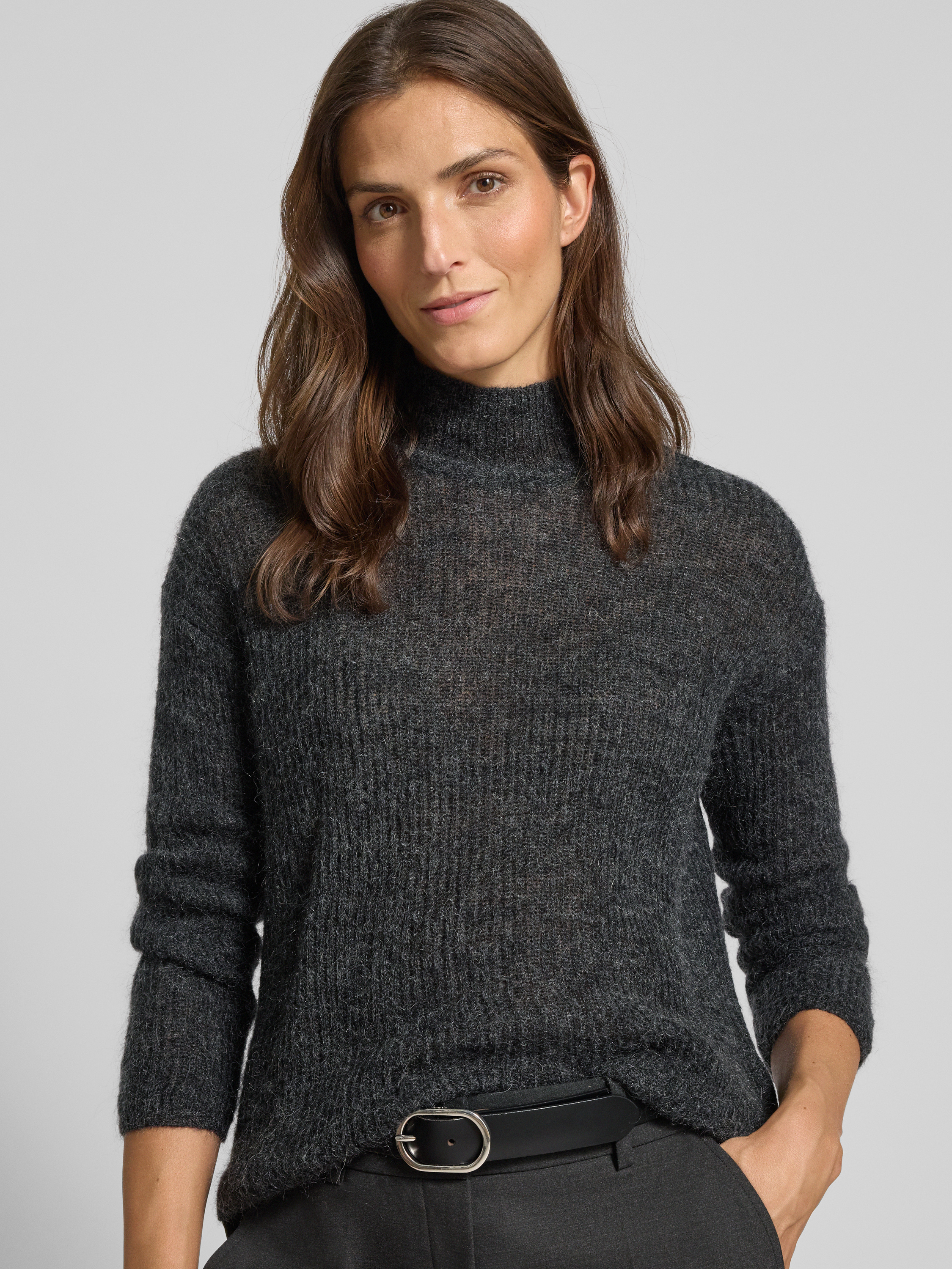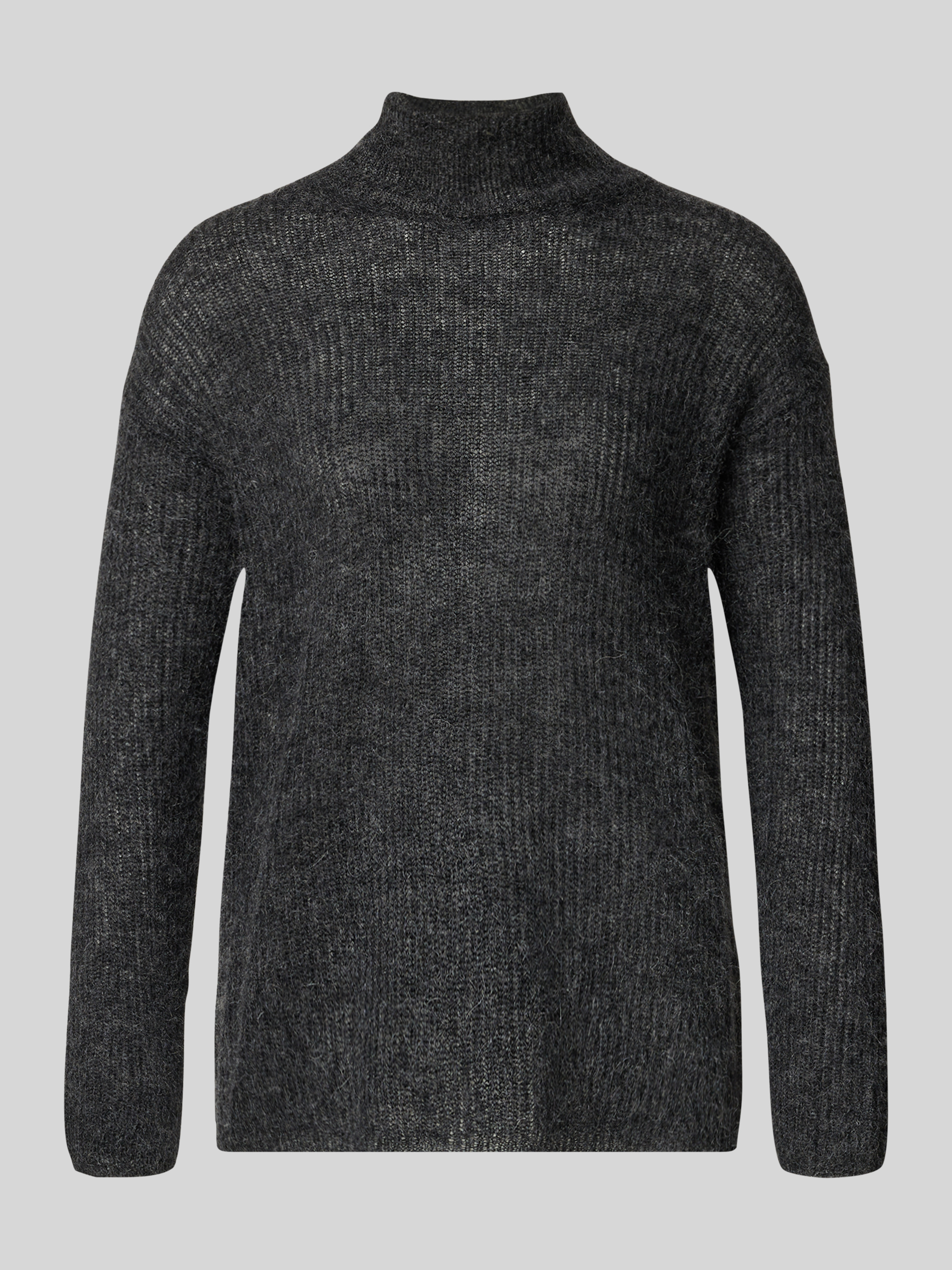 Sweter z dzianiny o kroju comfort fit z dodatkiem wełny model ‘TENNA’ - antracytowy melanż