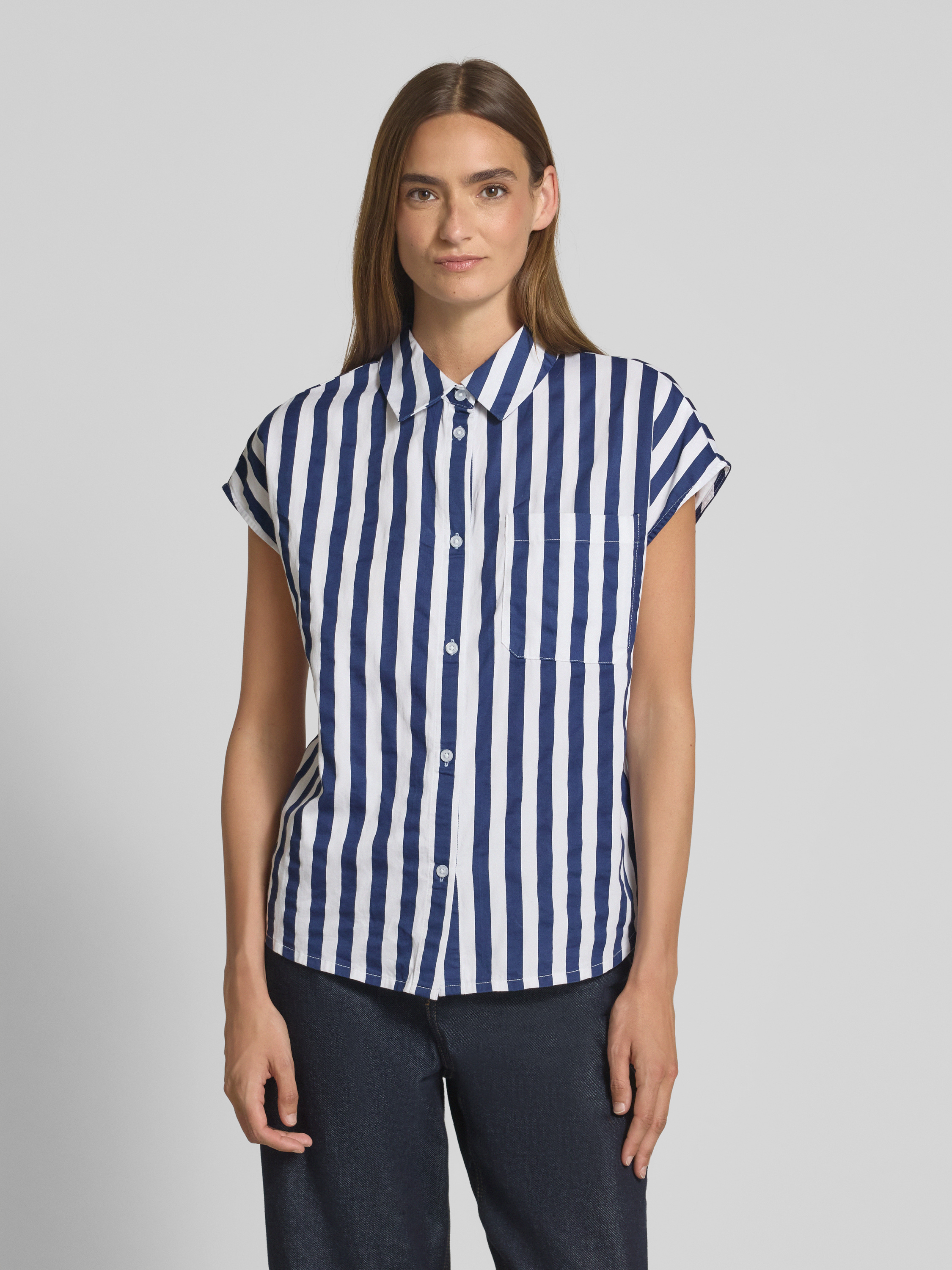 Bluzka o kroju regular fit z krótkimi rękawami i kieszenią na piersi - granatowy