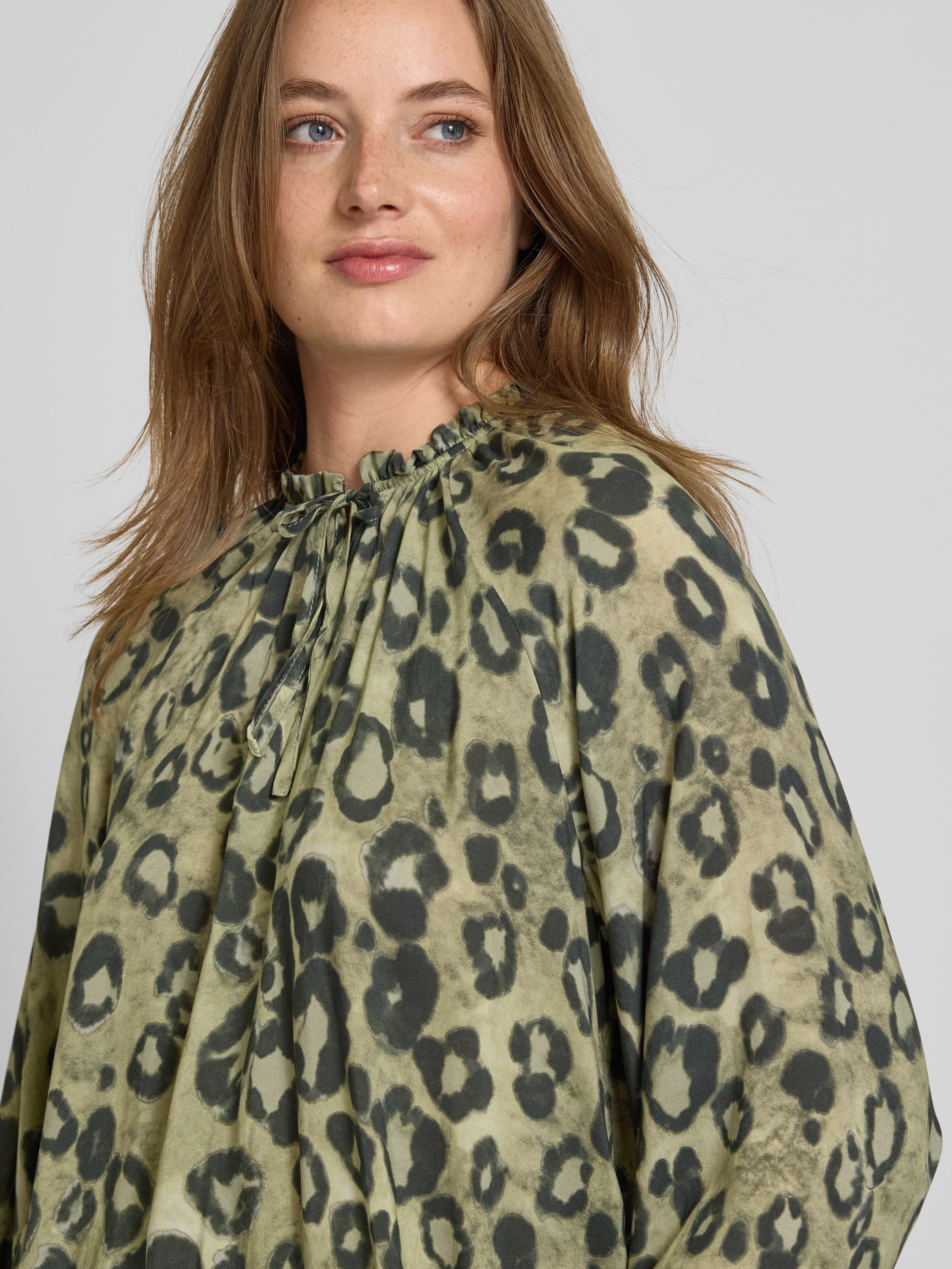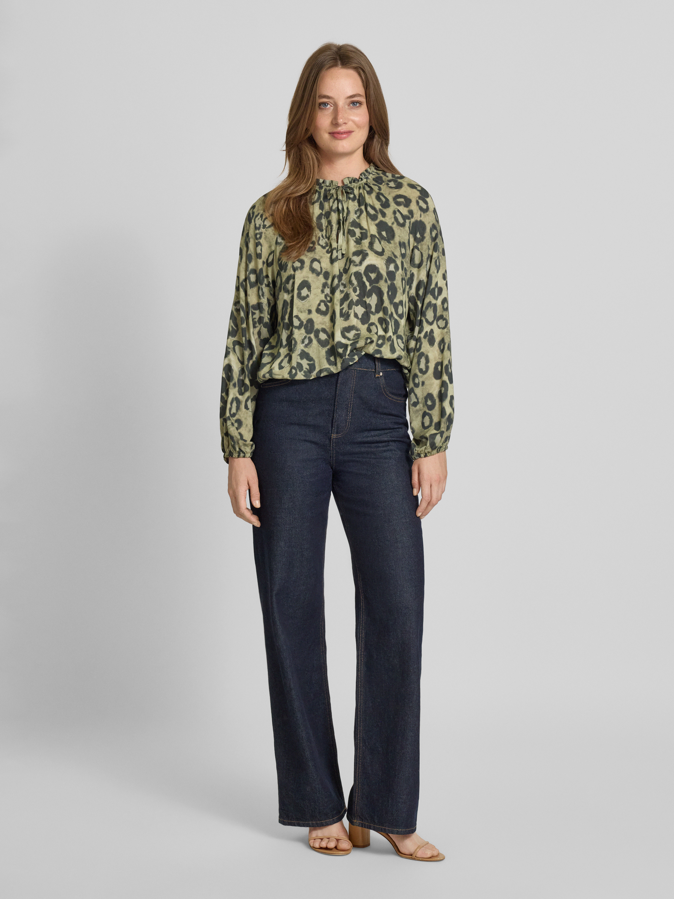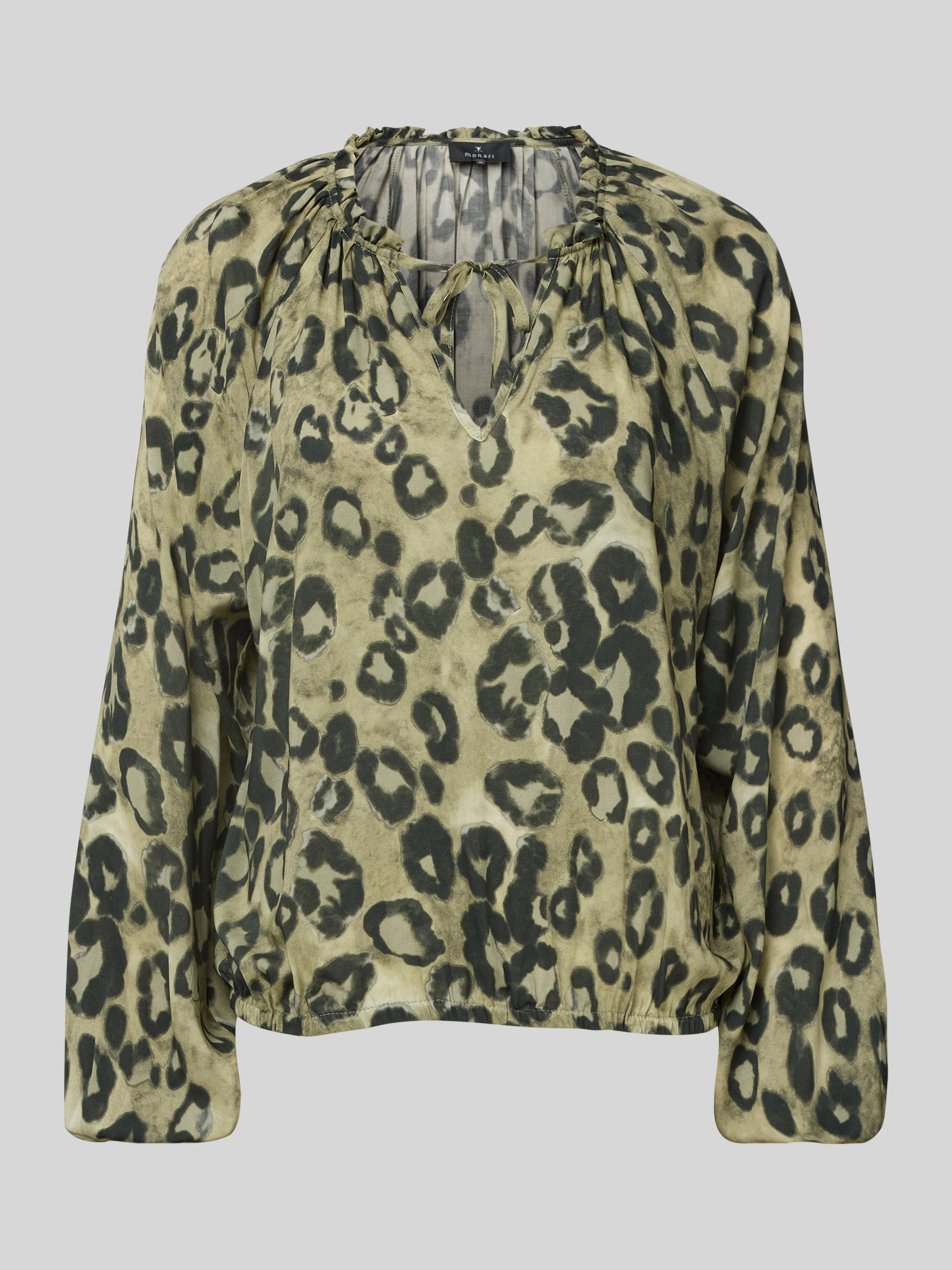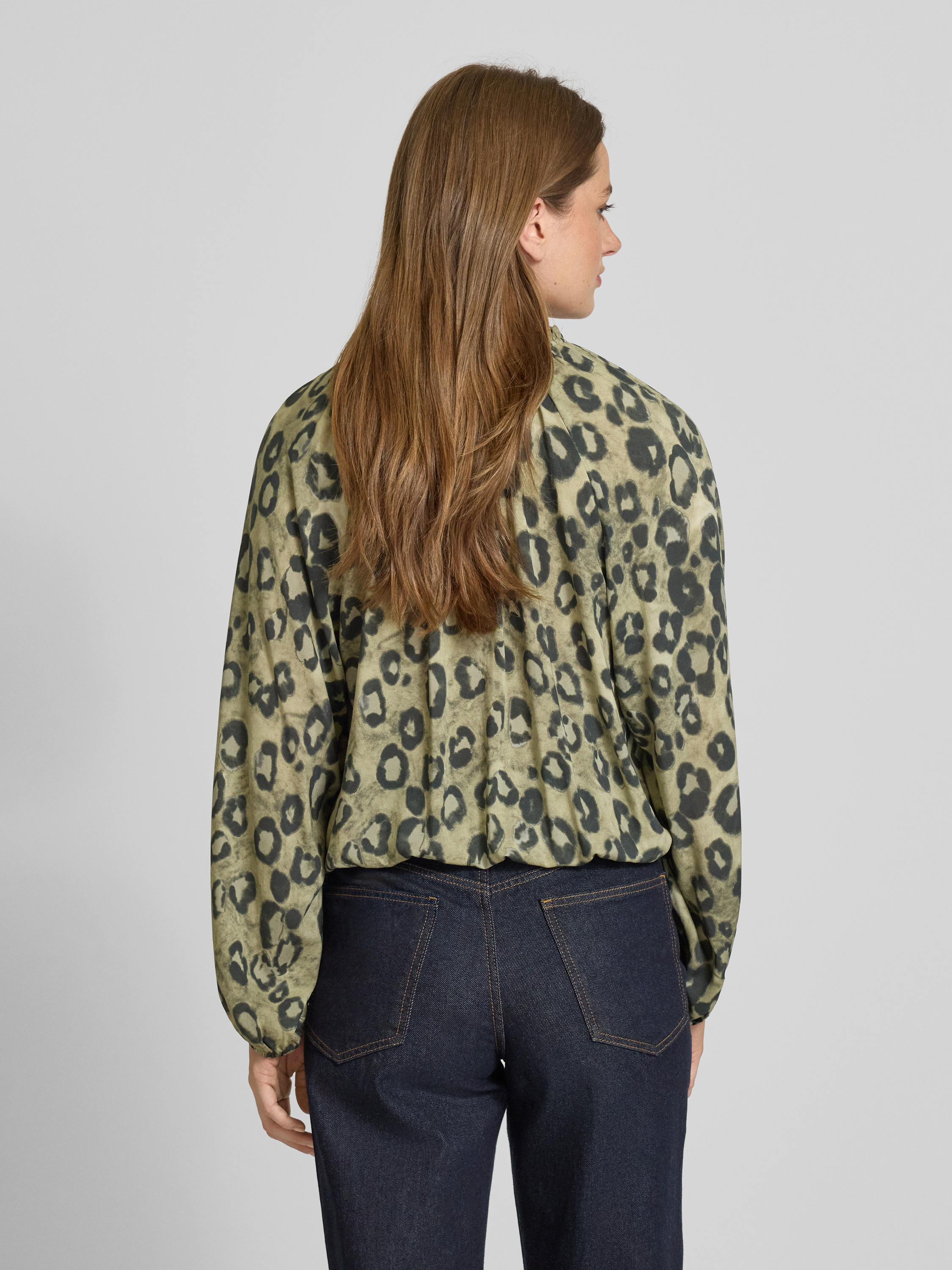 Bluzka o kroju regular fit z wiskozy ze zwierzęcym nadrukiem - zielony melanż
