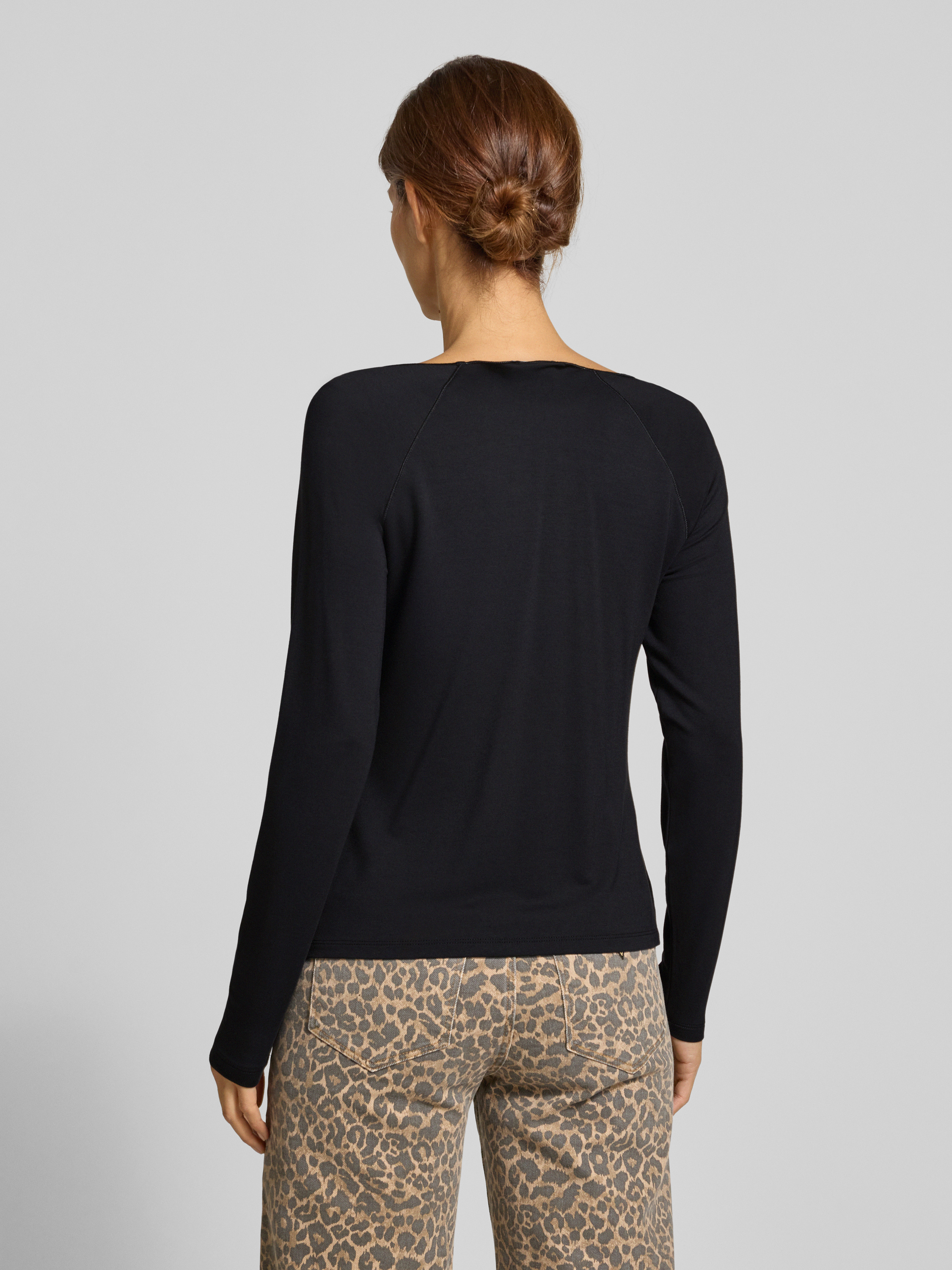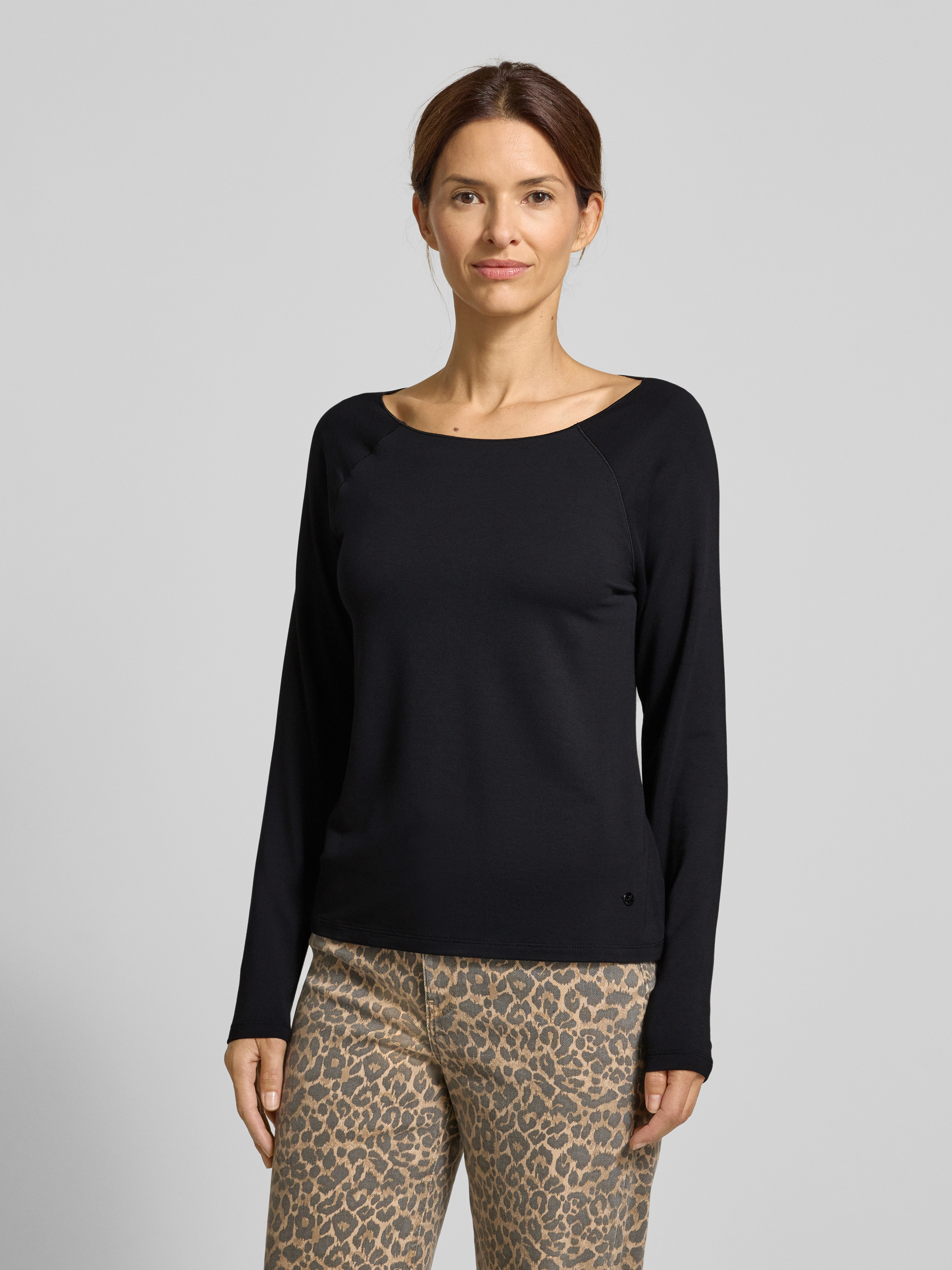 monariBluzka z długim rękawem z mieszanki wiskozy i modalu z okrągłym dekoltem - czarny