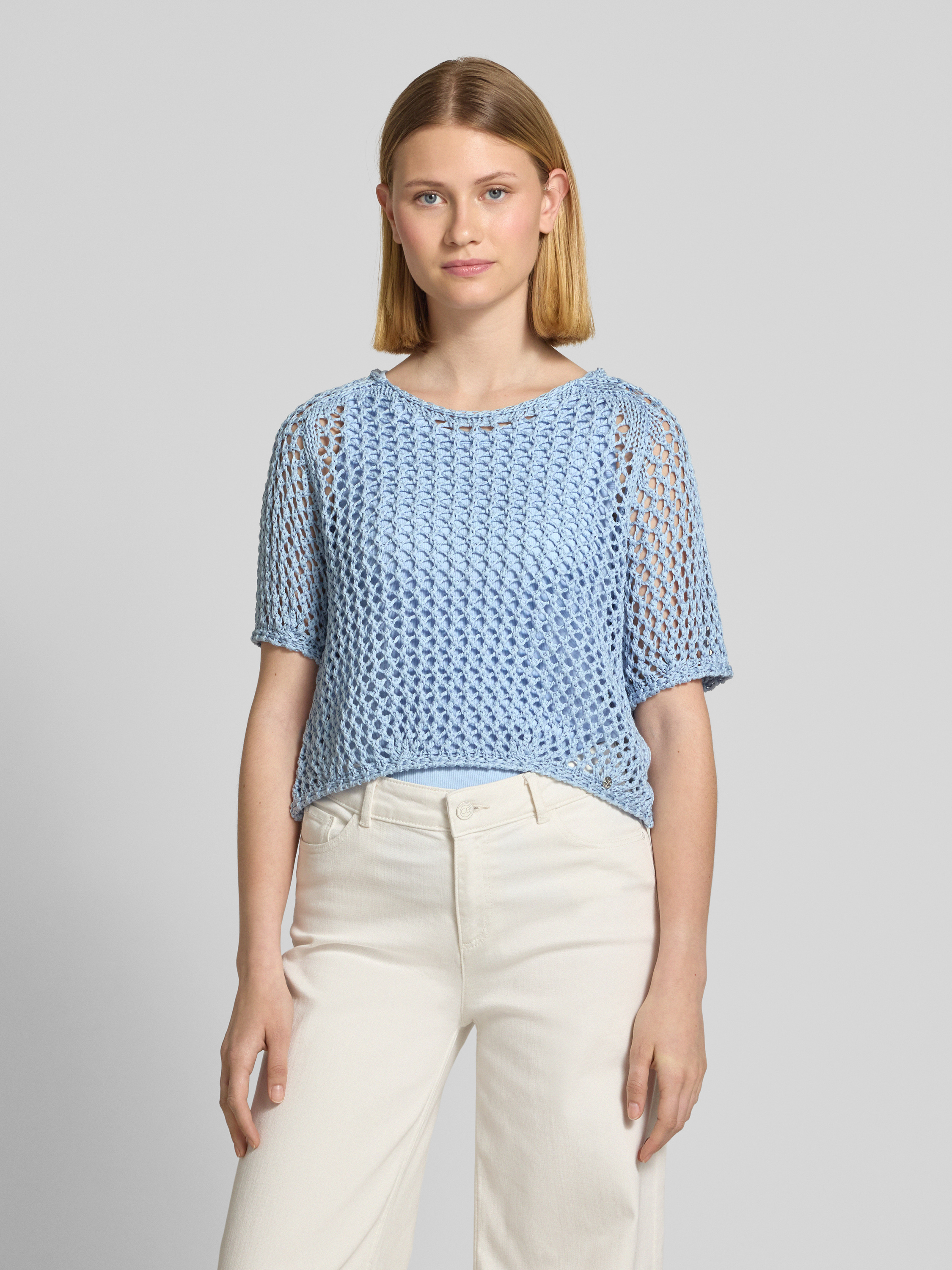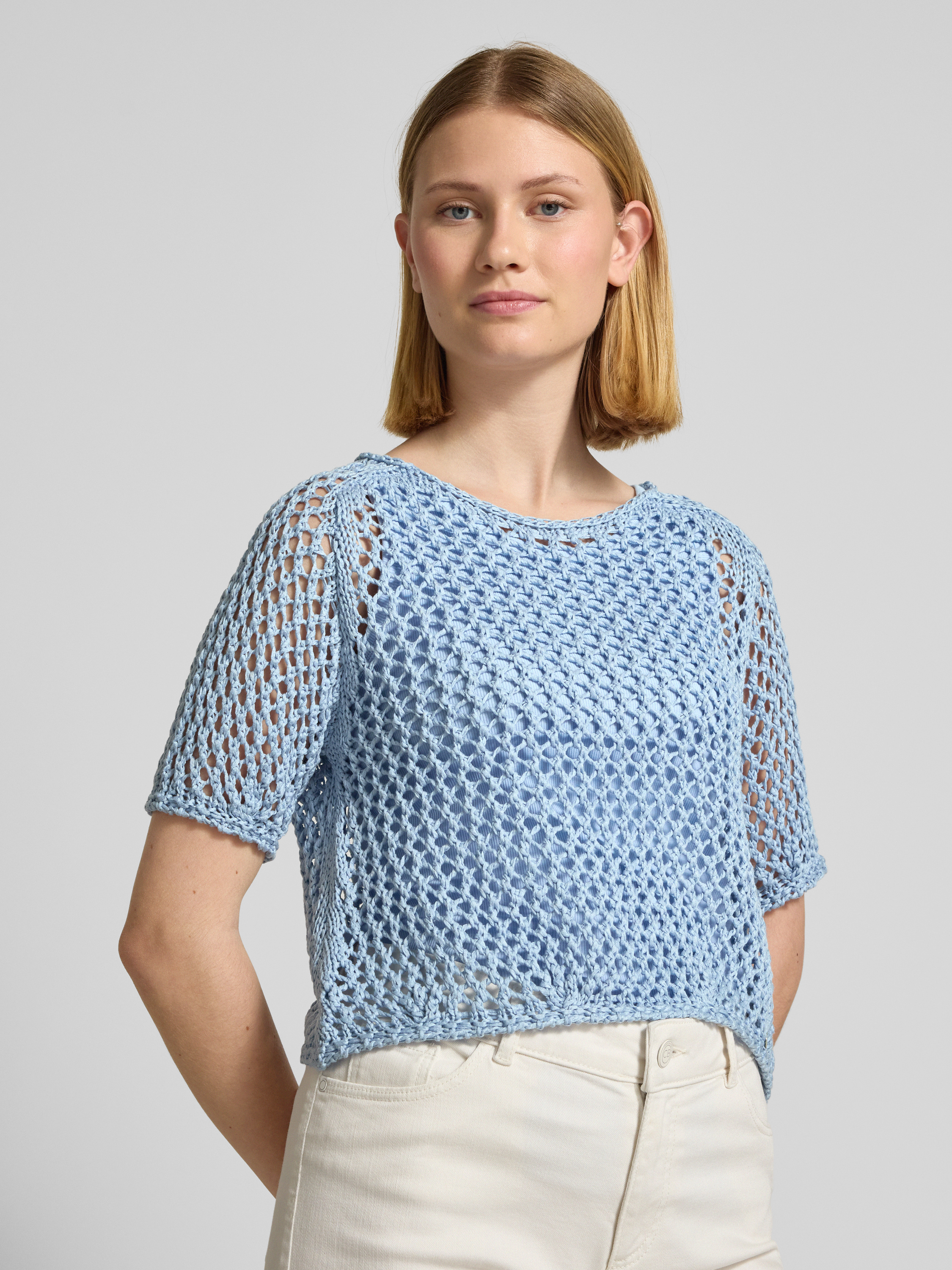 Bluzka z dzianiny z ażurowym wzorem - jasnoniebieski