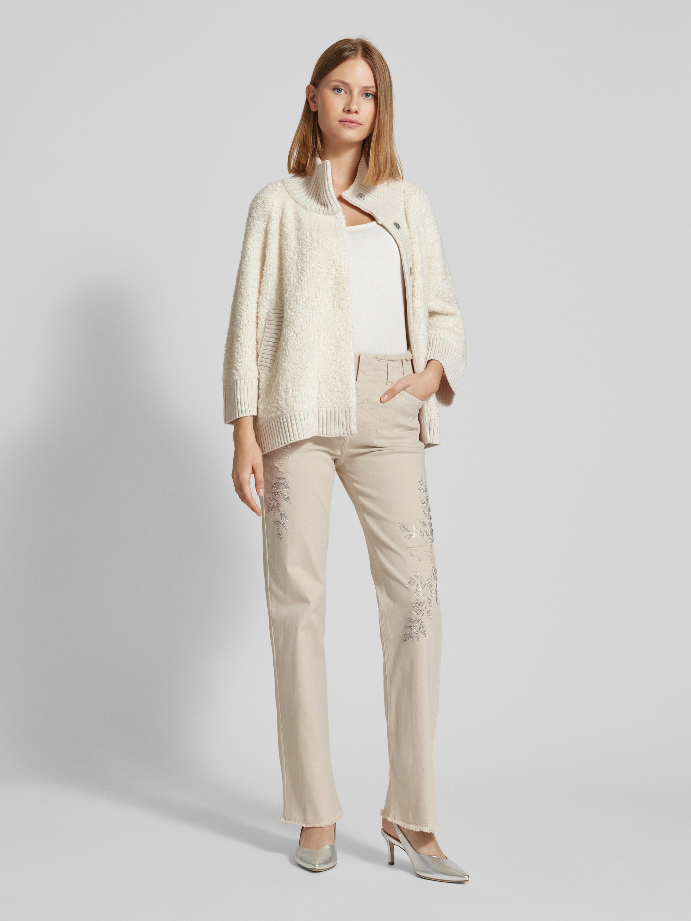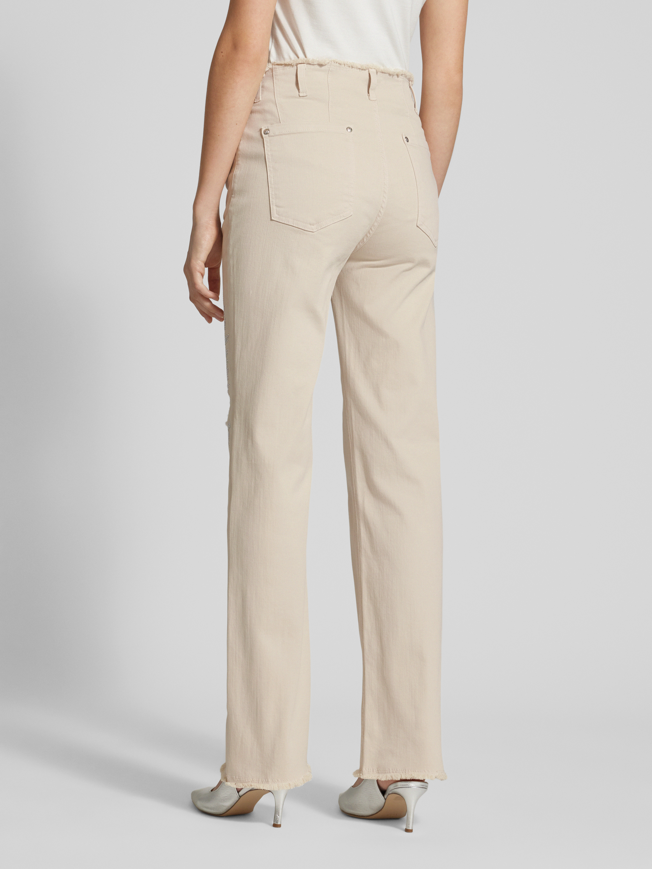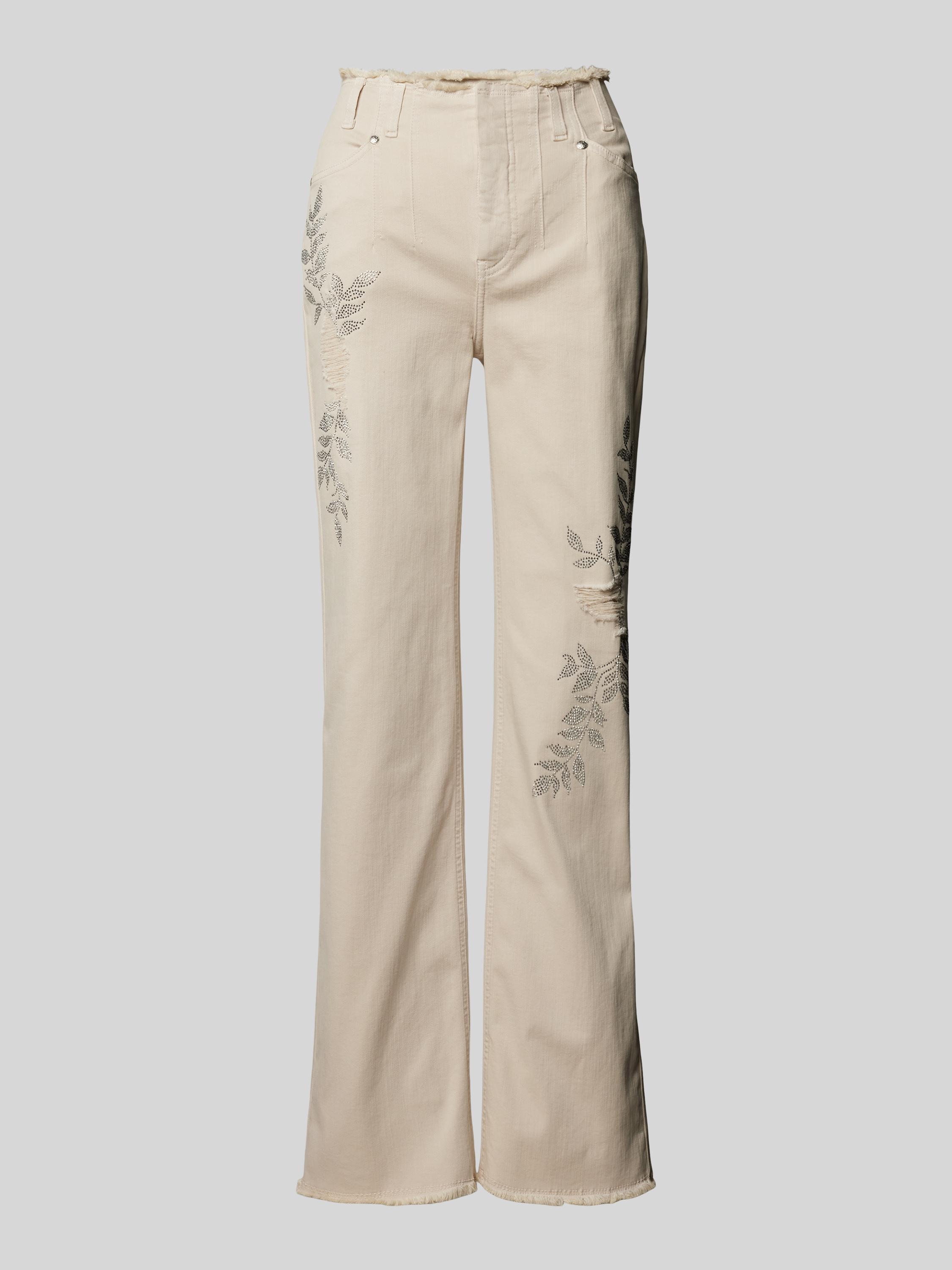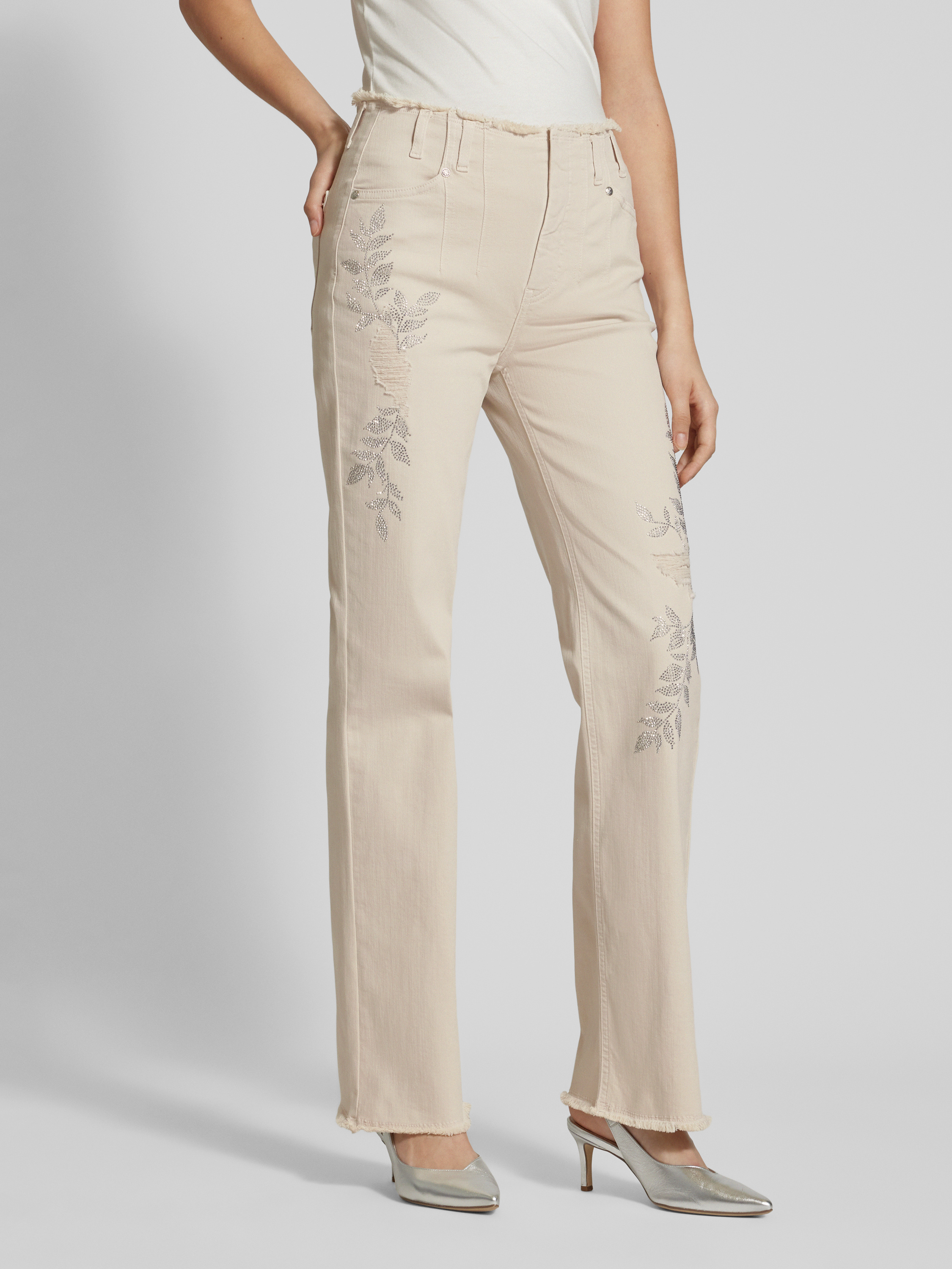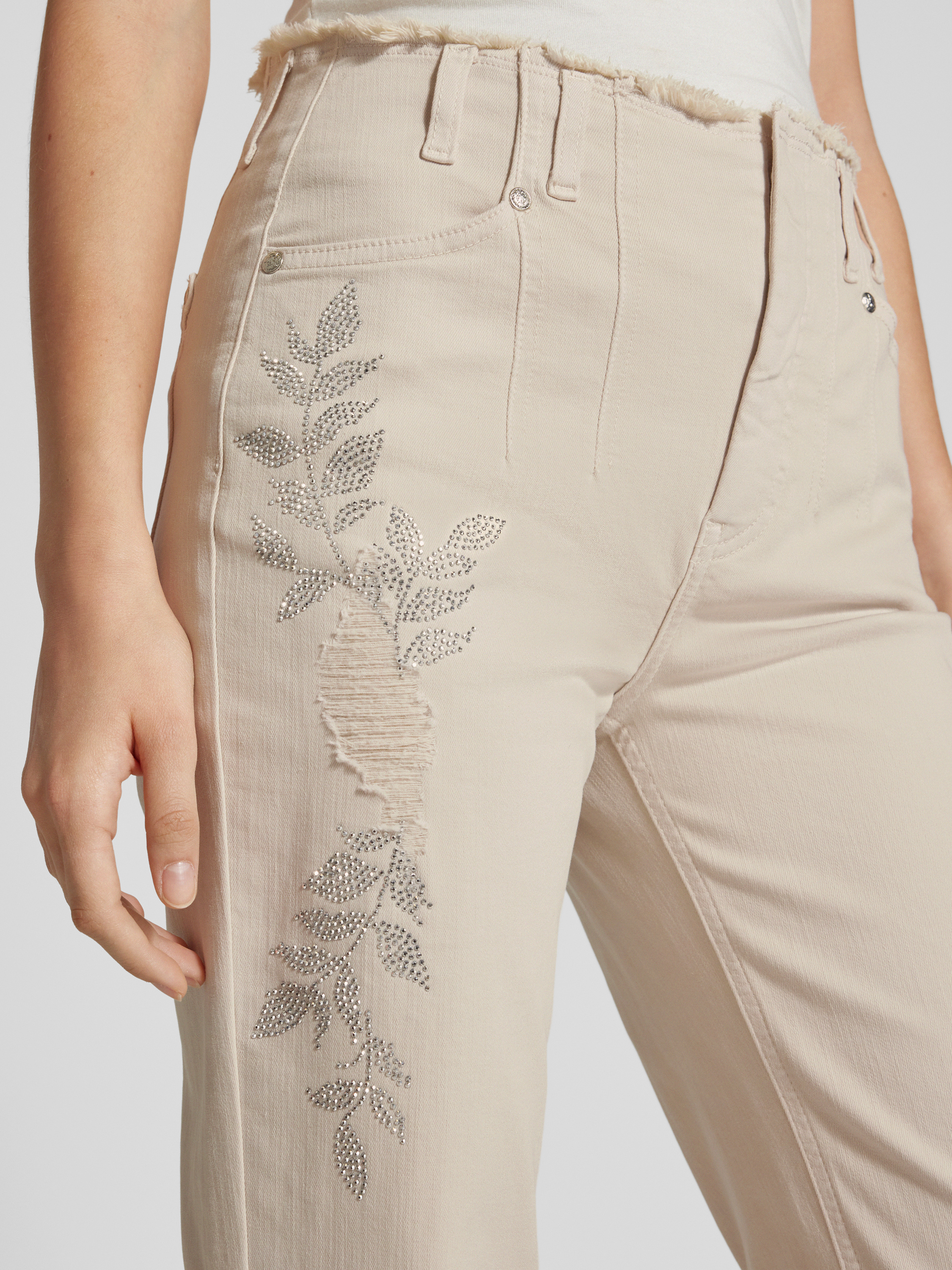 Jeansy o kroju regulat fit z cekinowym obszyciem - piaskowy