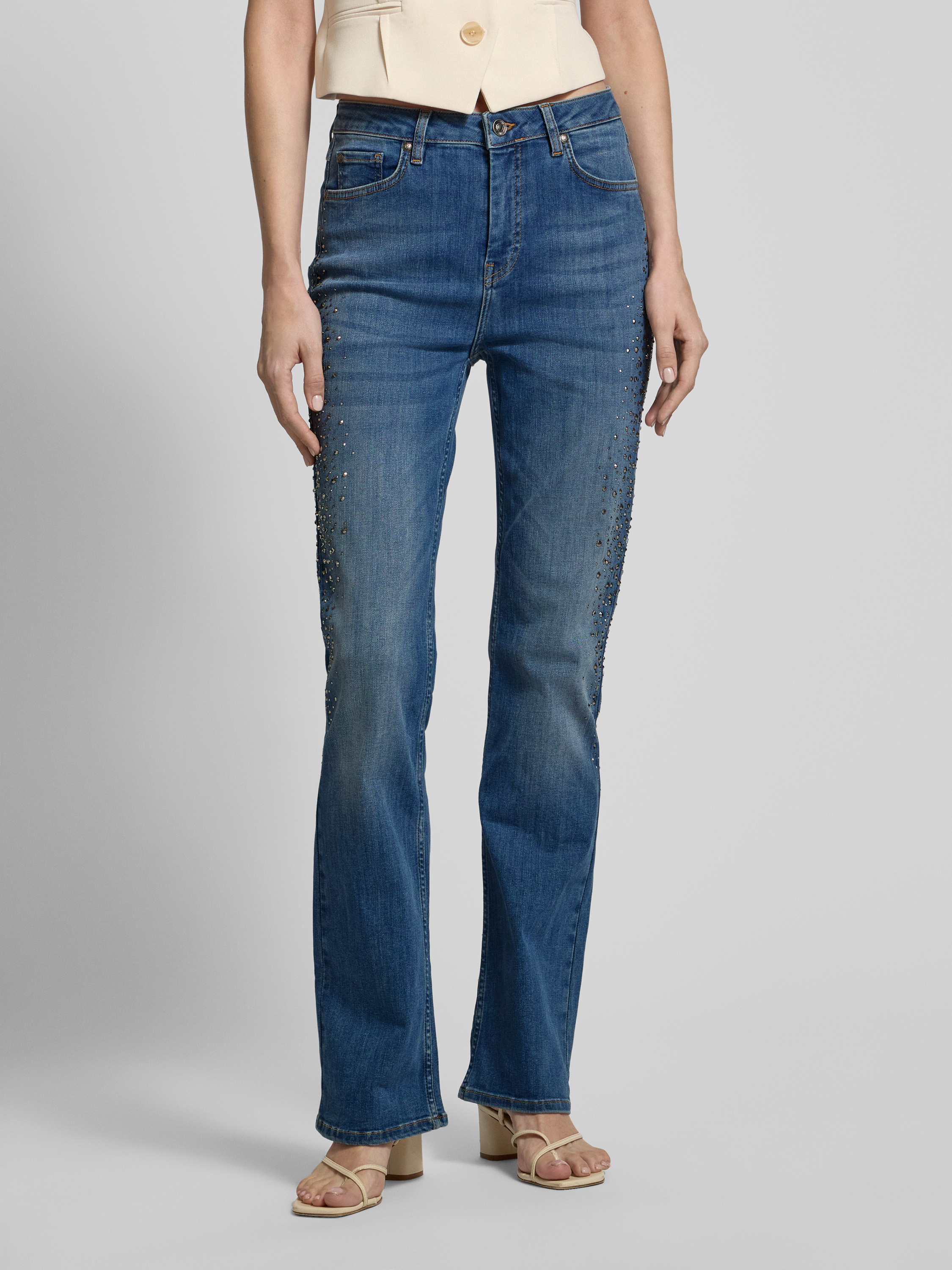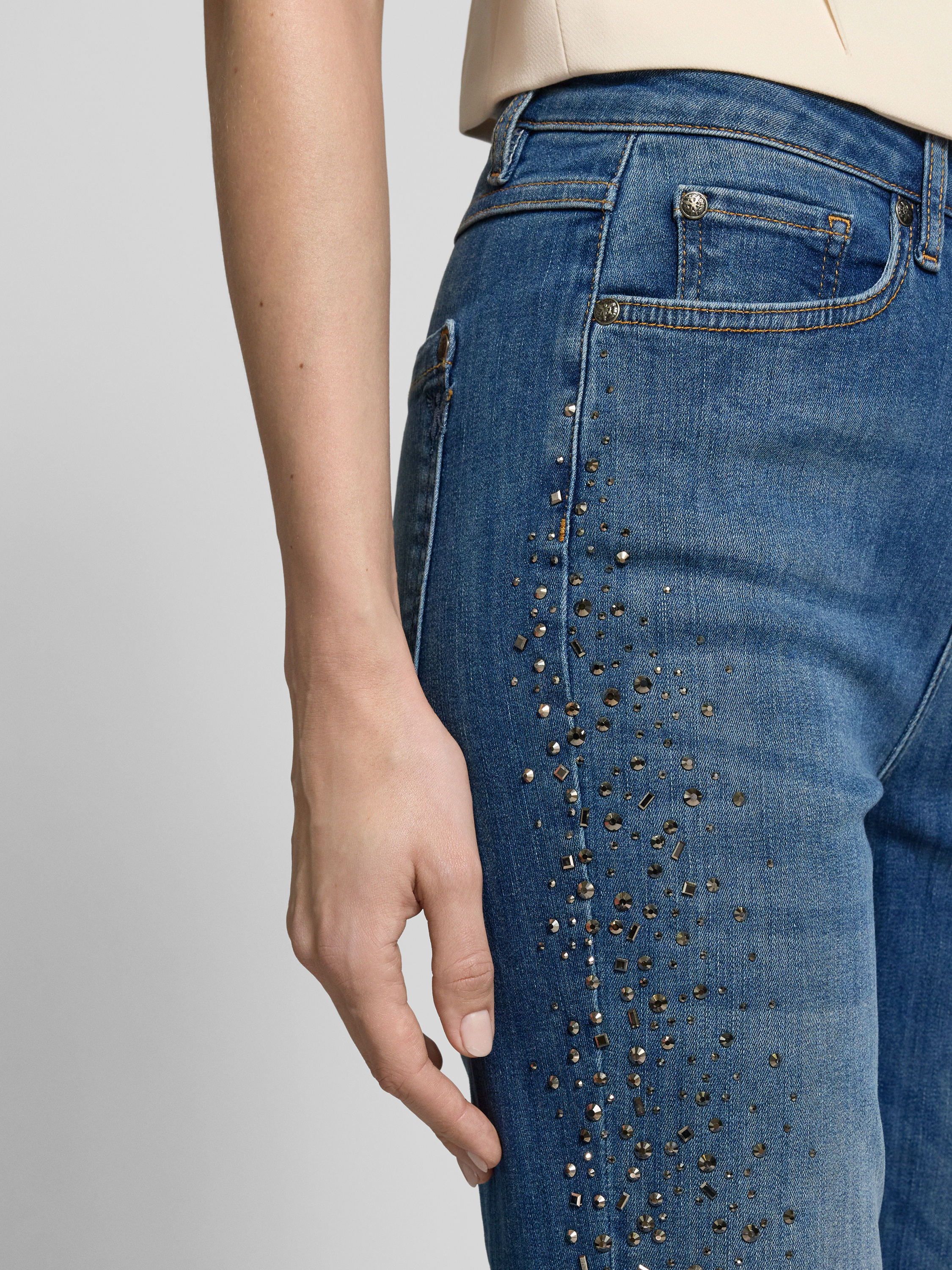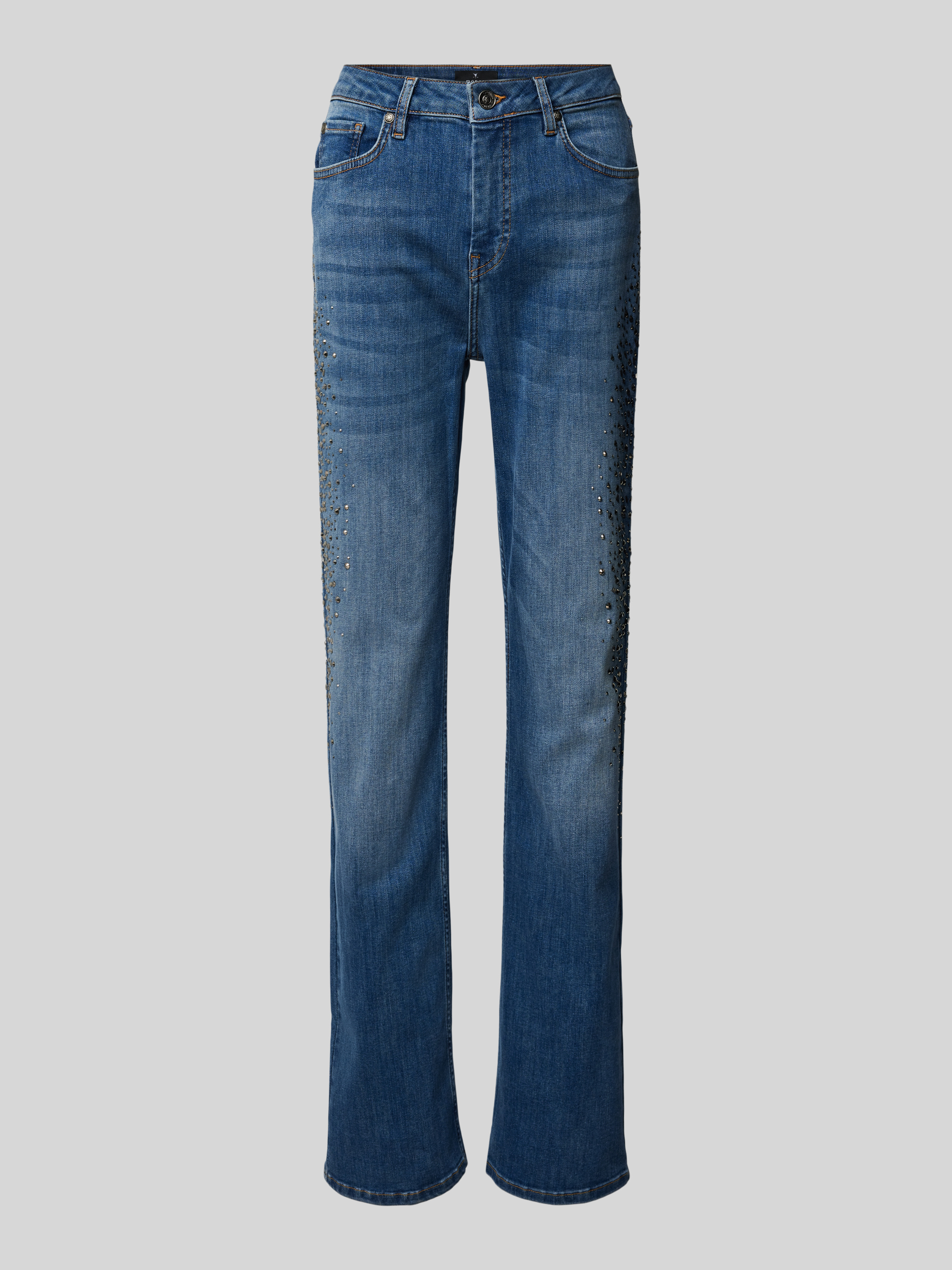 Jeansy z prostą nogawką i obszyciem z nitami - jeansowy niebieski