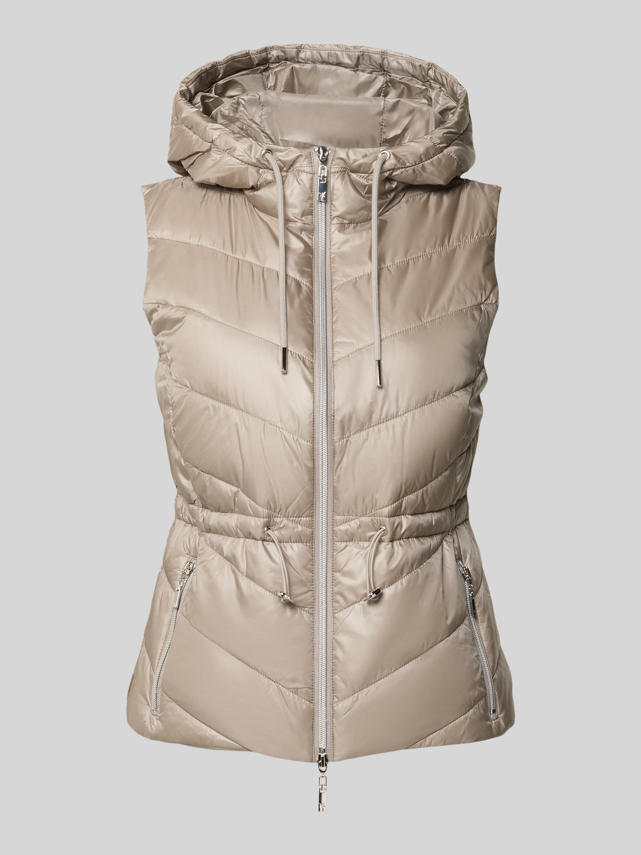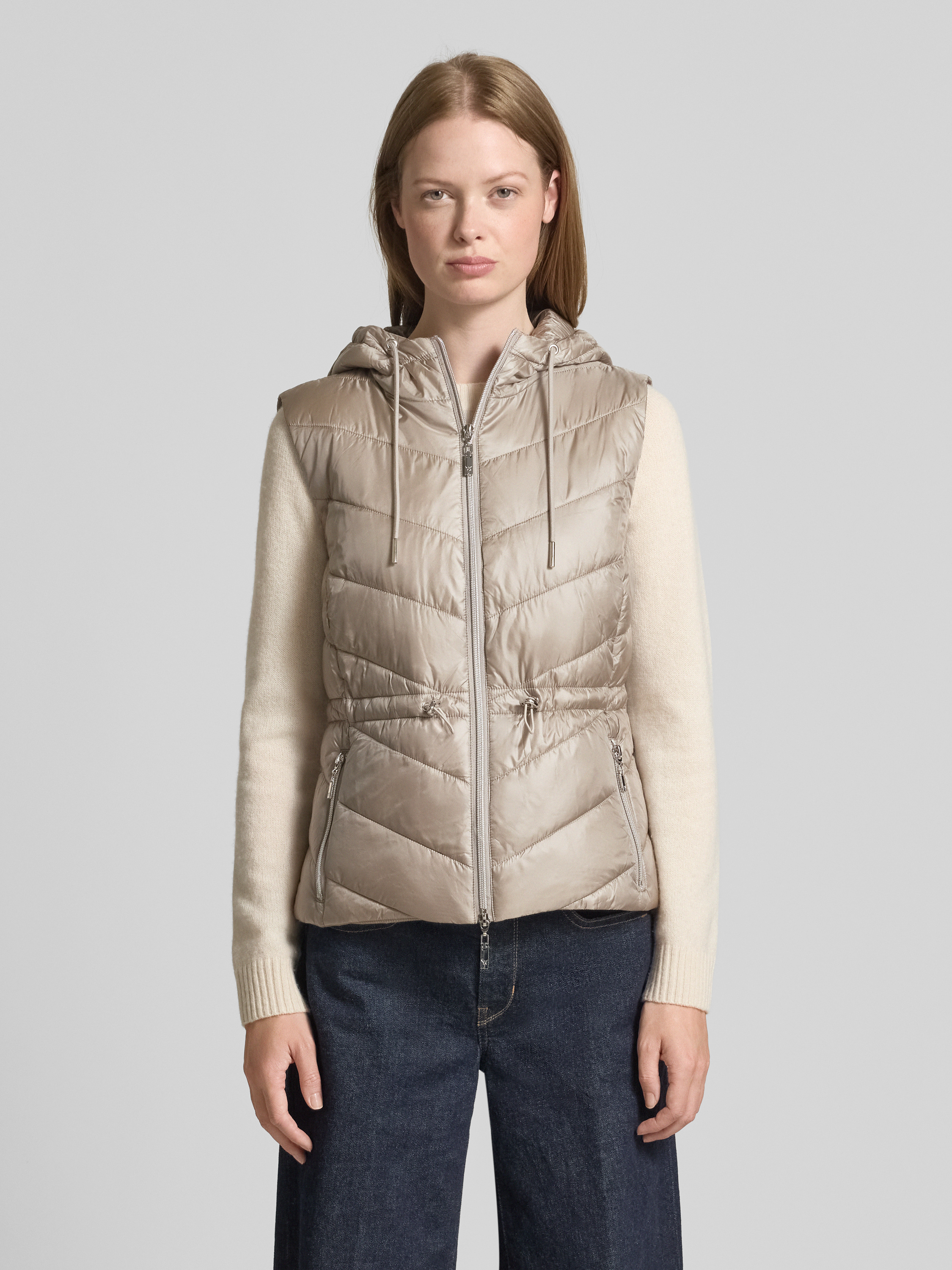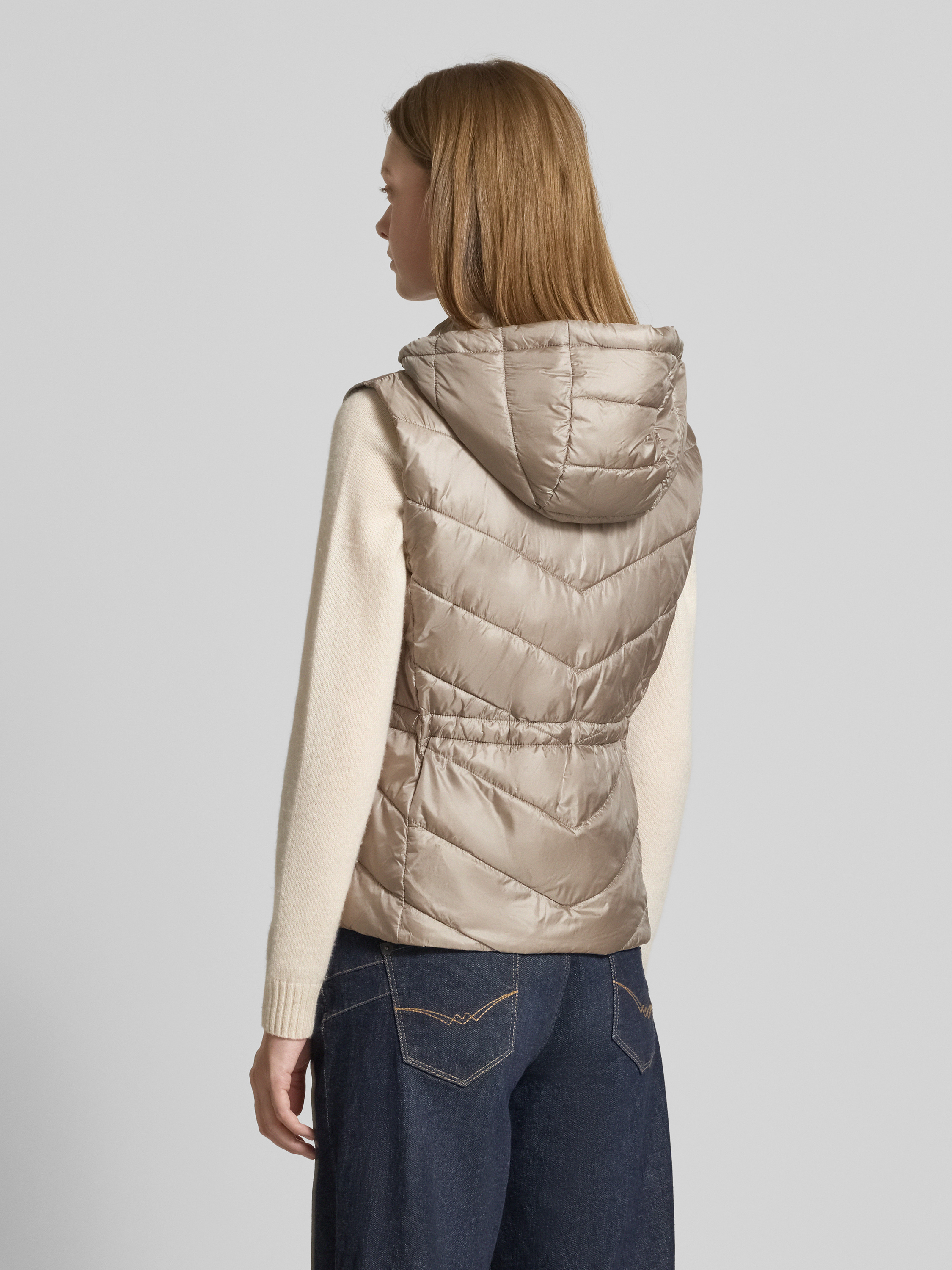 Kamizelka pikowana z kapturem i kieszeniami zapinanymi na zamek błyskawiczny - szarobrązowy