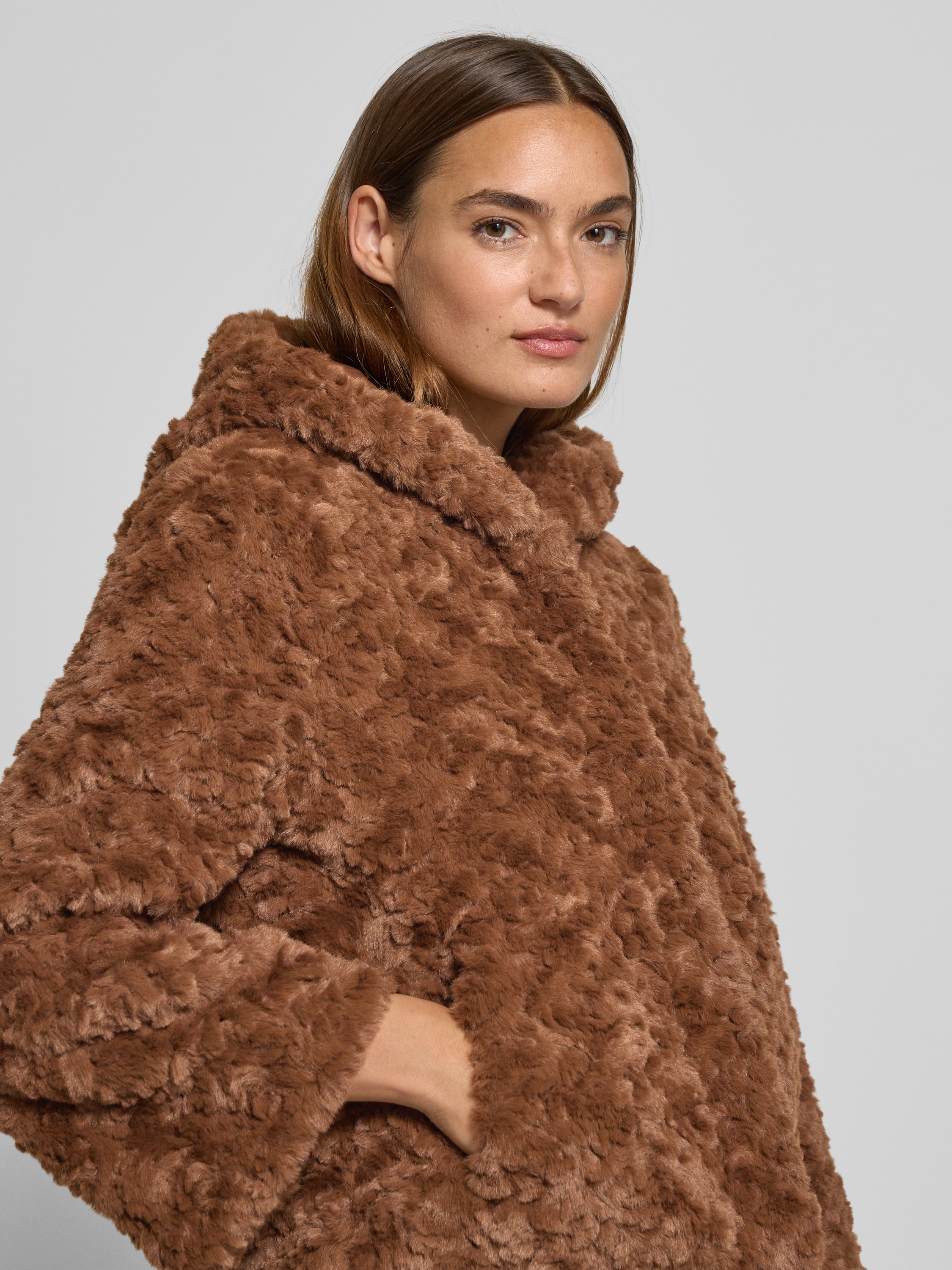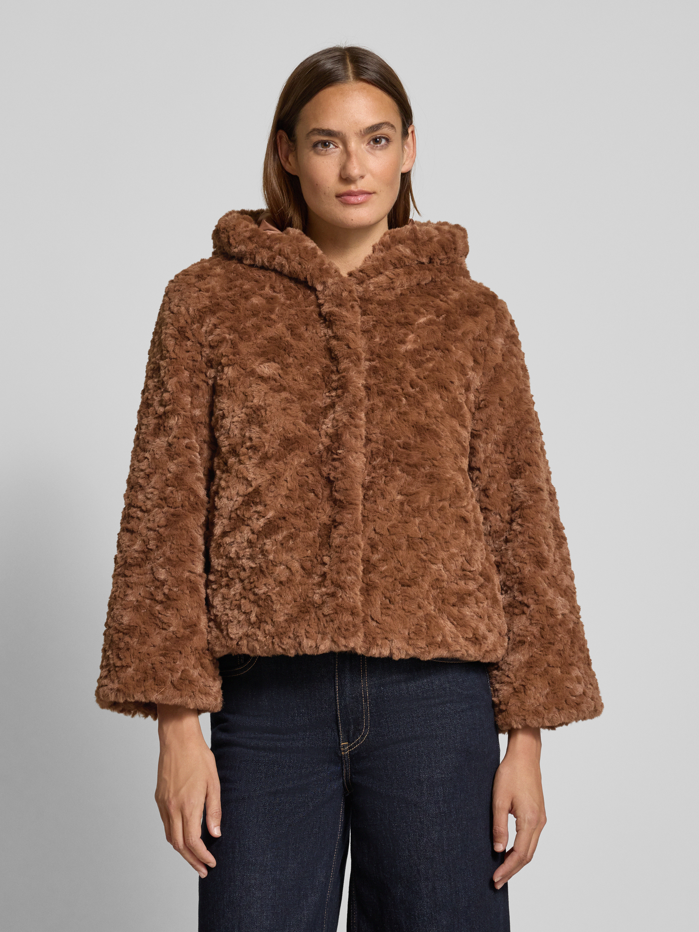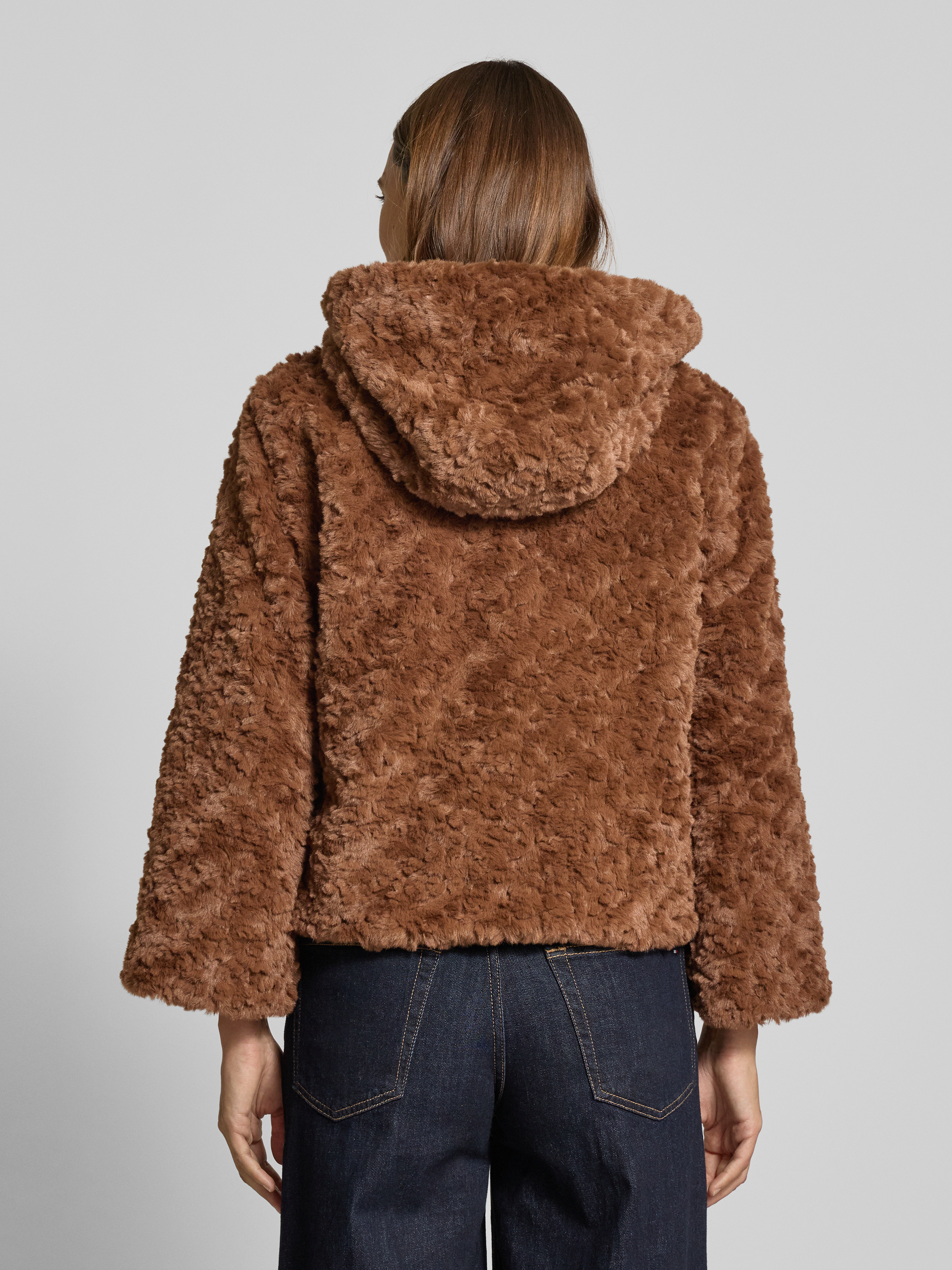 Kurtka ze sztucznego futra z kapturem - koniakowy
