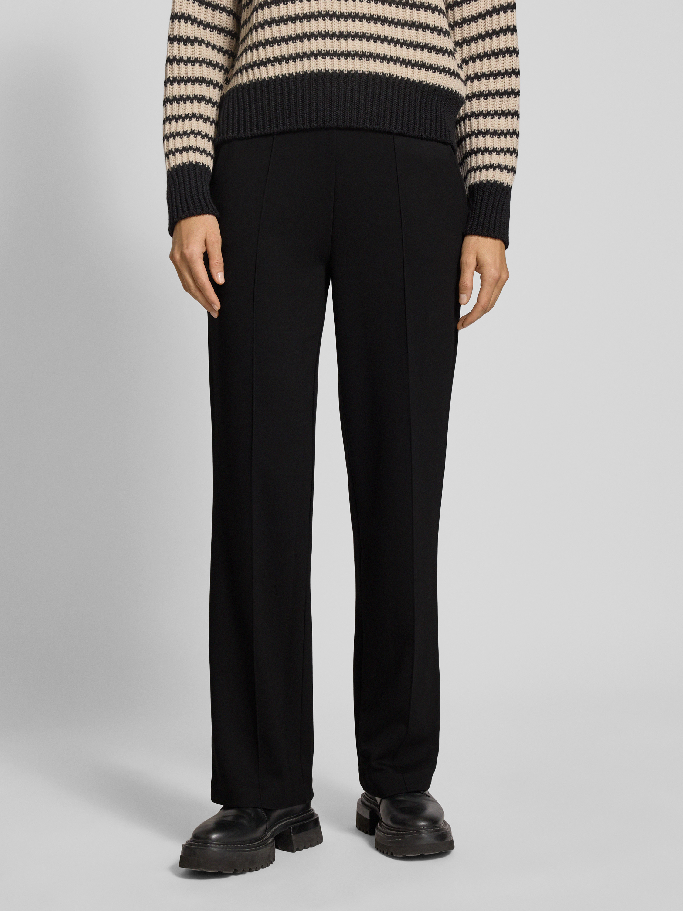 Spodnie materiałowe z elastycznym paskiem z logo - czarny