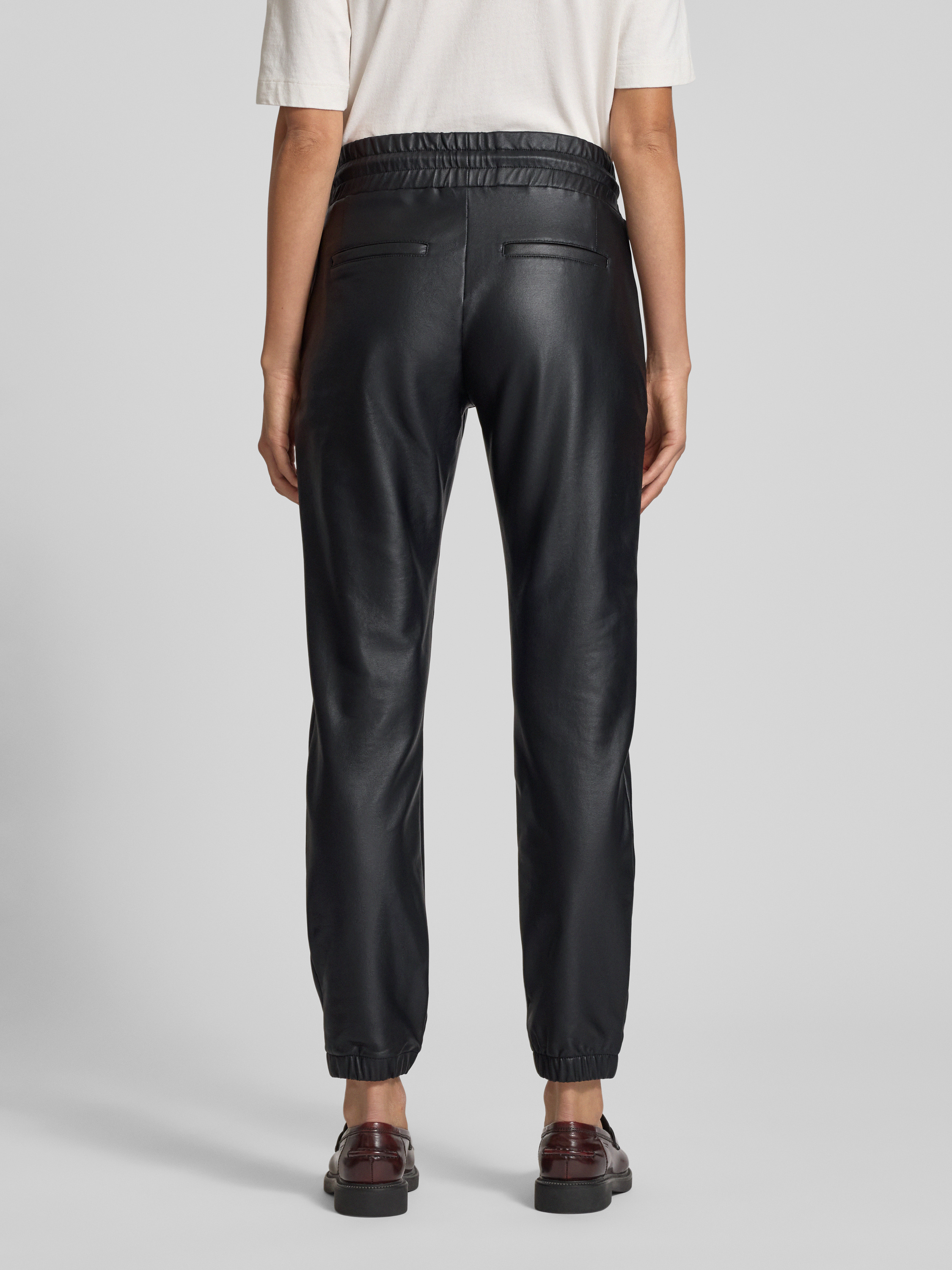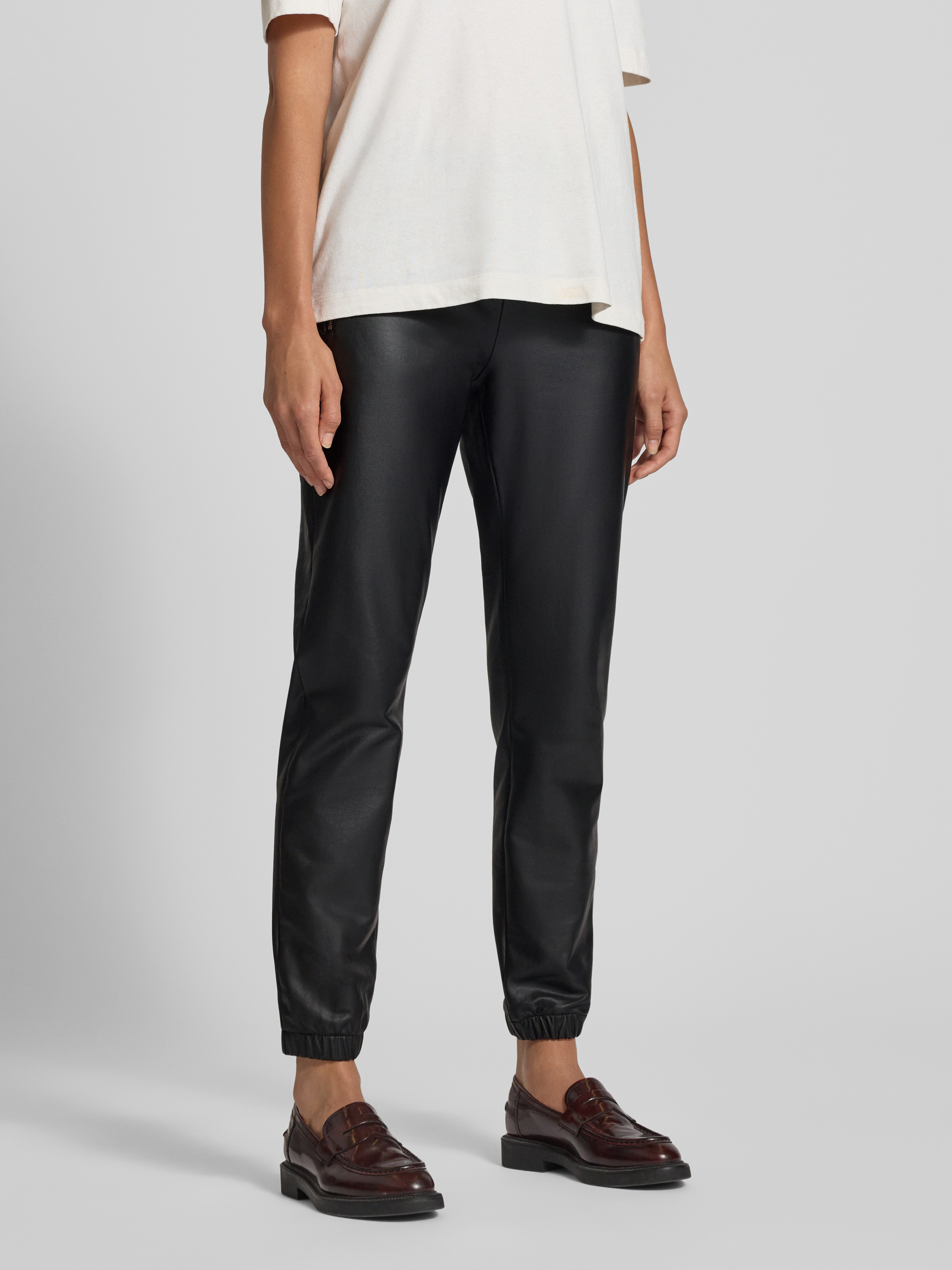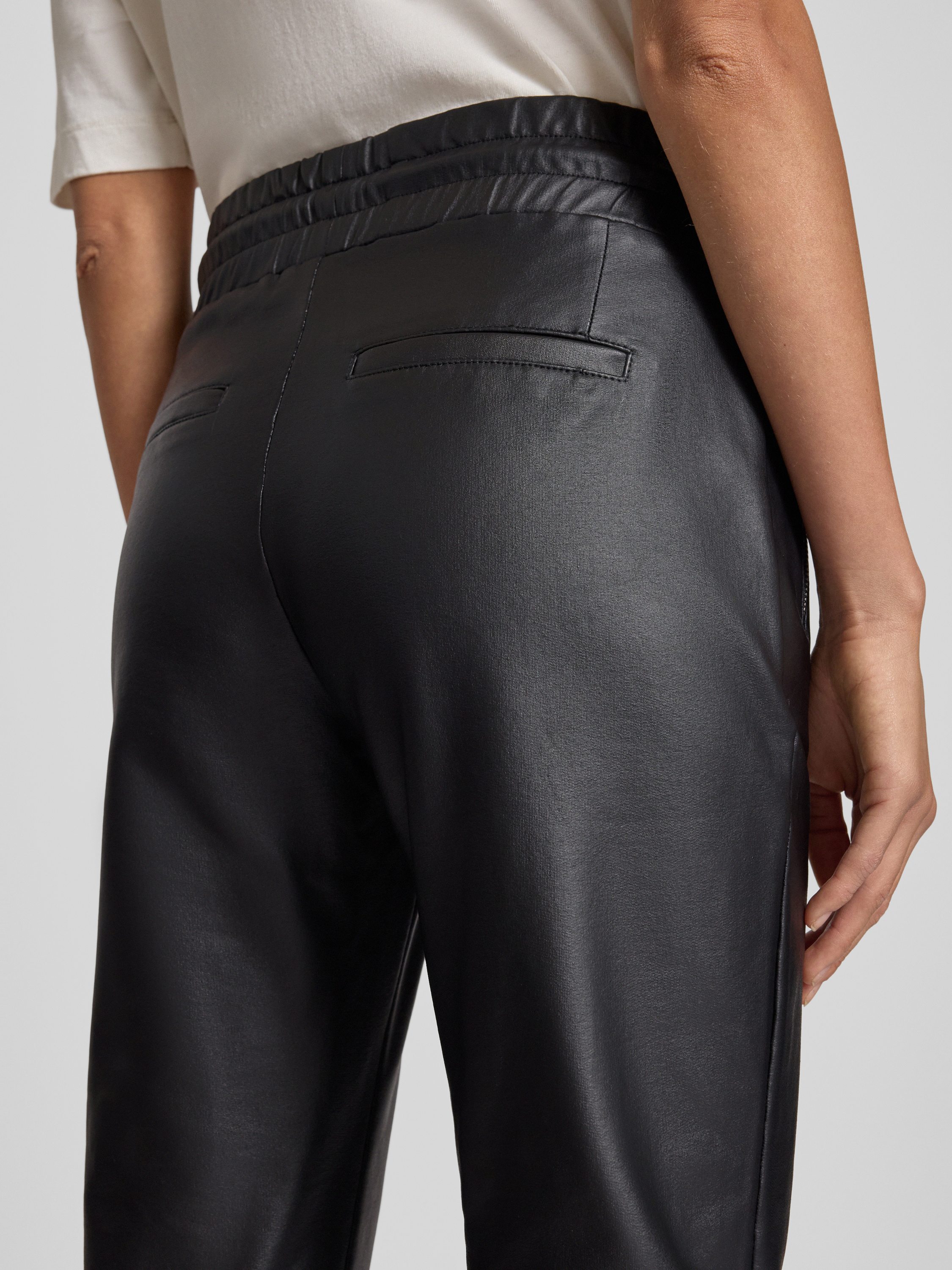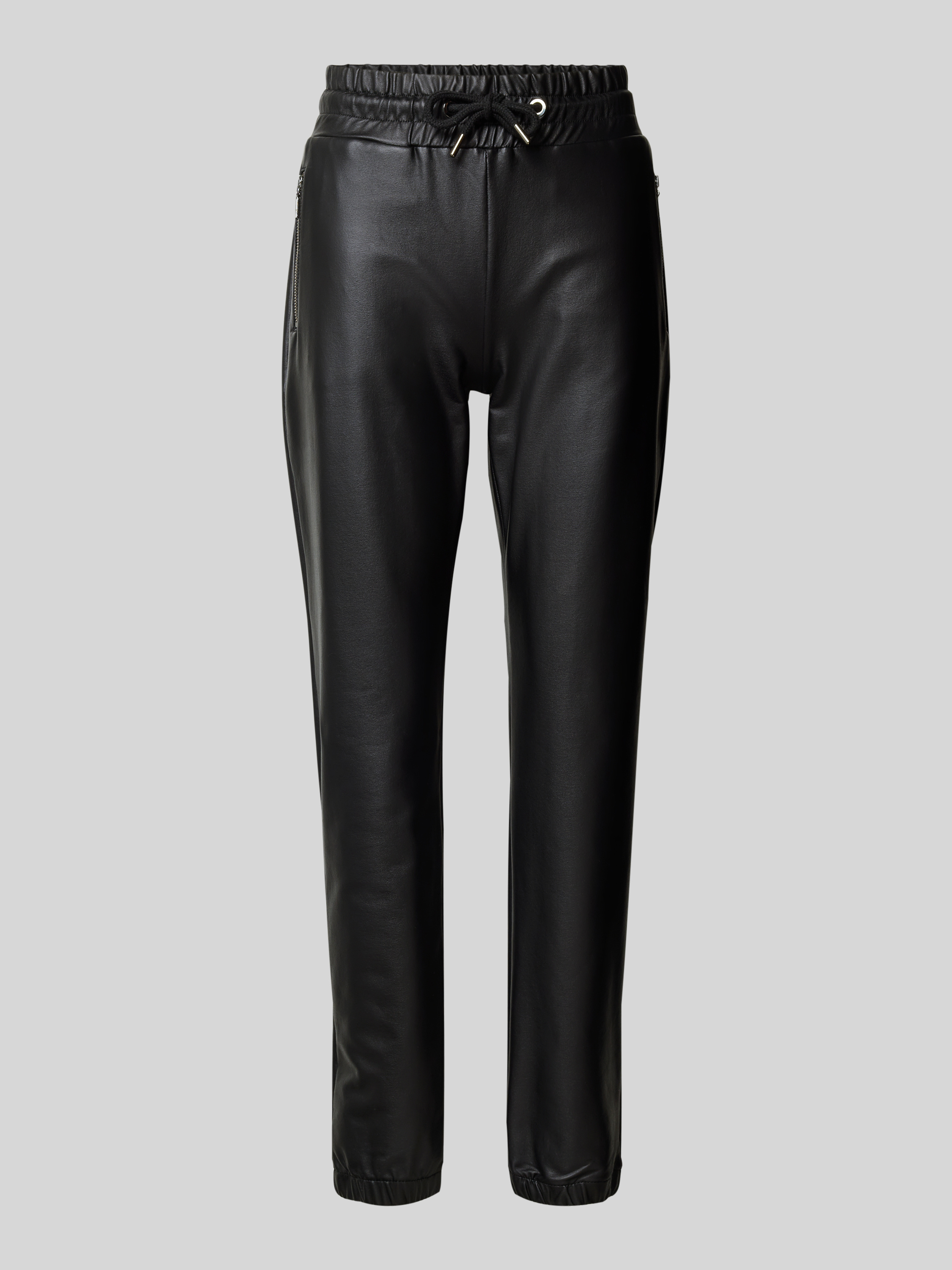 Spodnie z imitacji skóry z bocznymi kieszeniami zapinanymi na zamek błyskawiczny - czarny