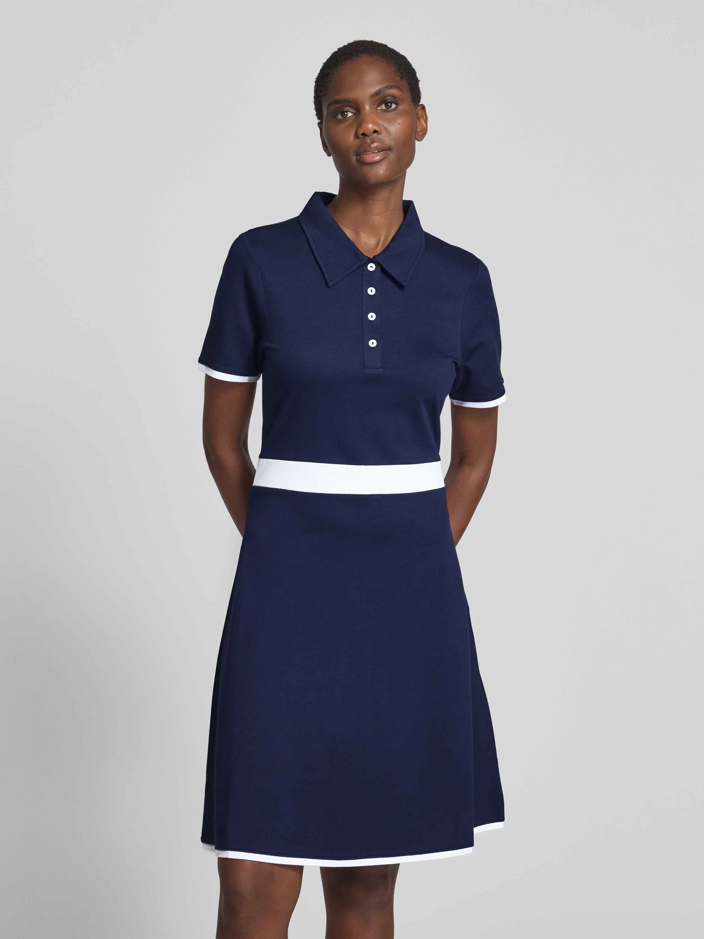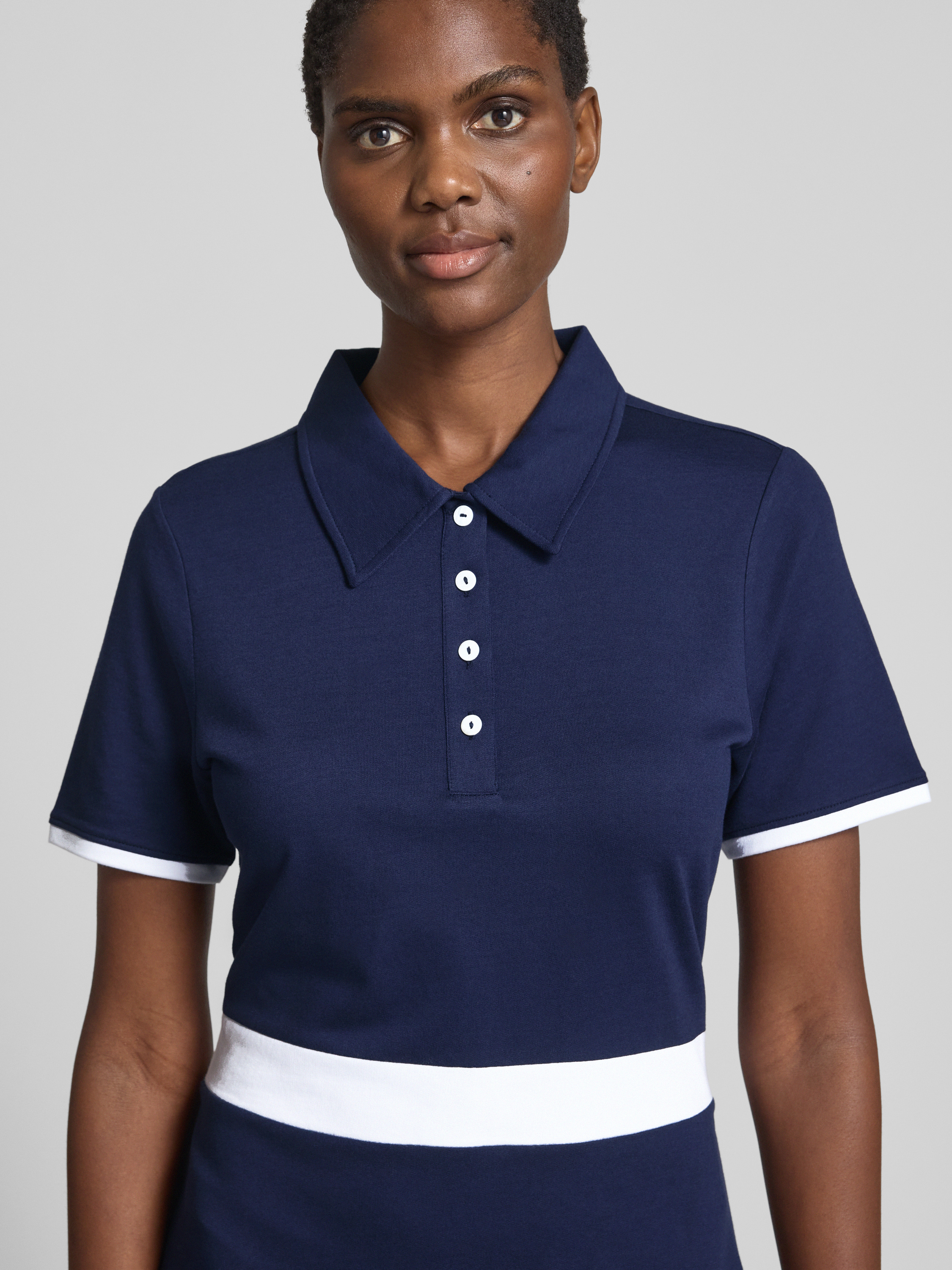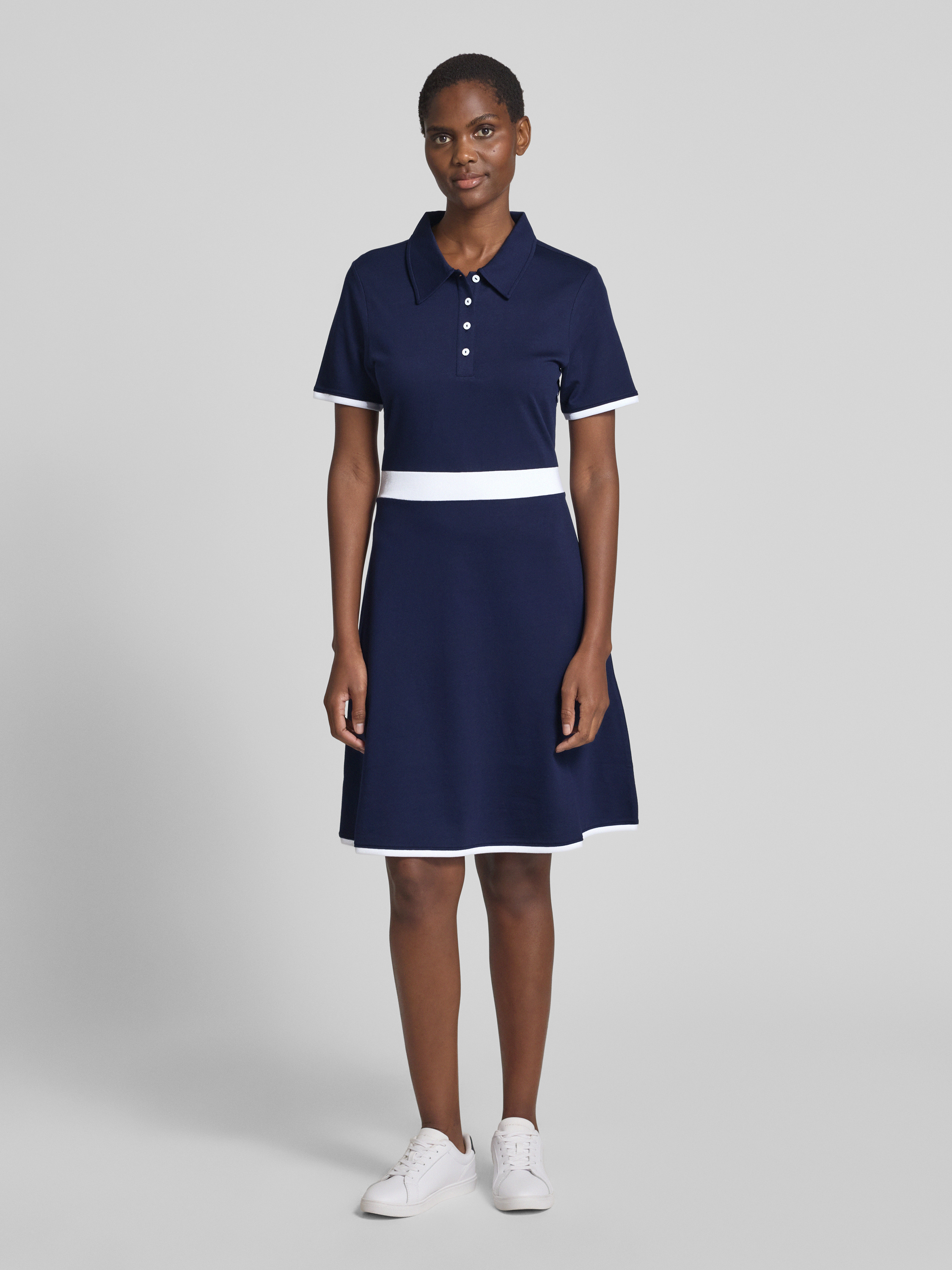 Sukienka polo o długości do kolan z krótką listwą guzikową - granatowy