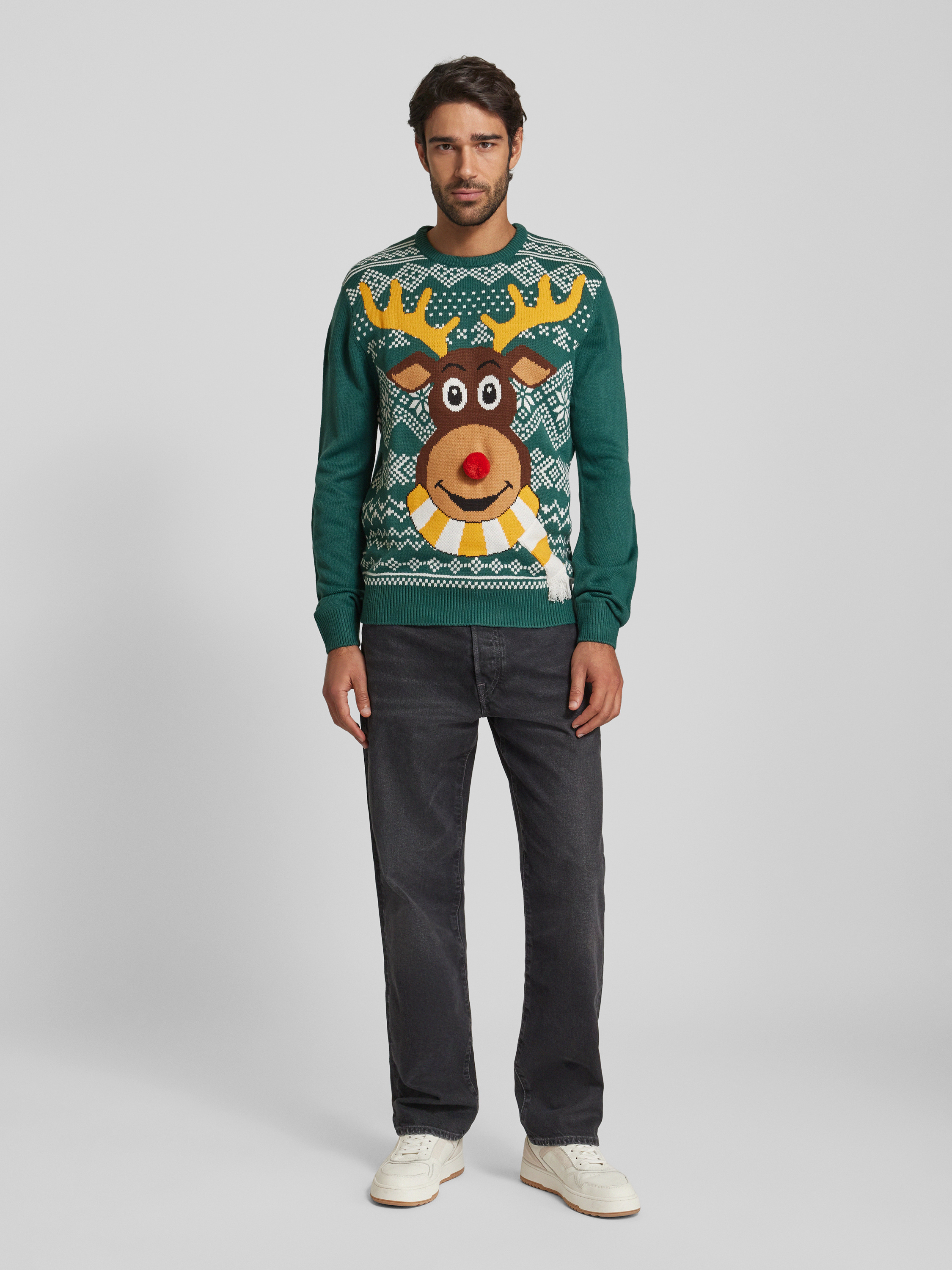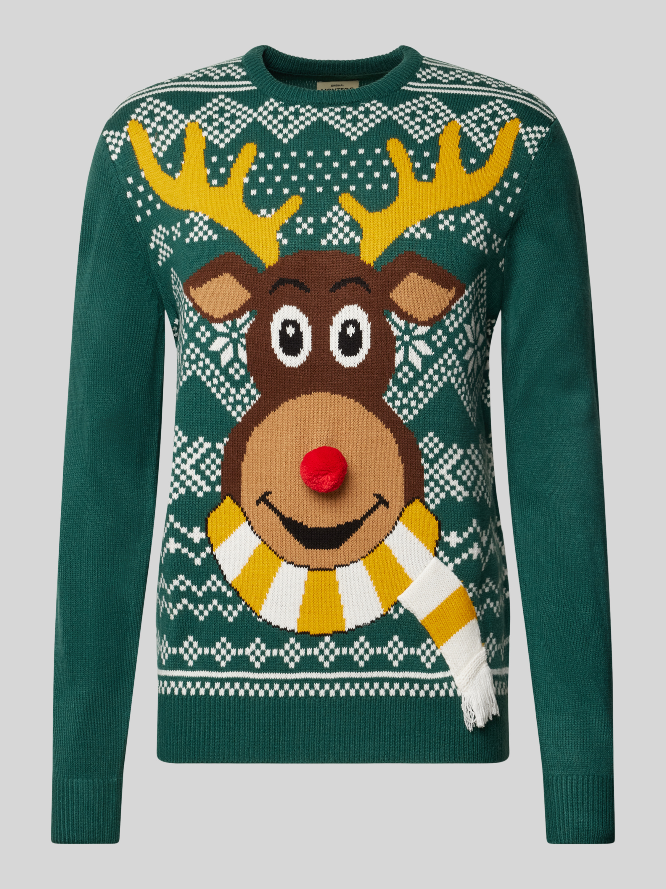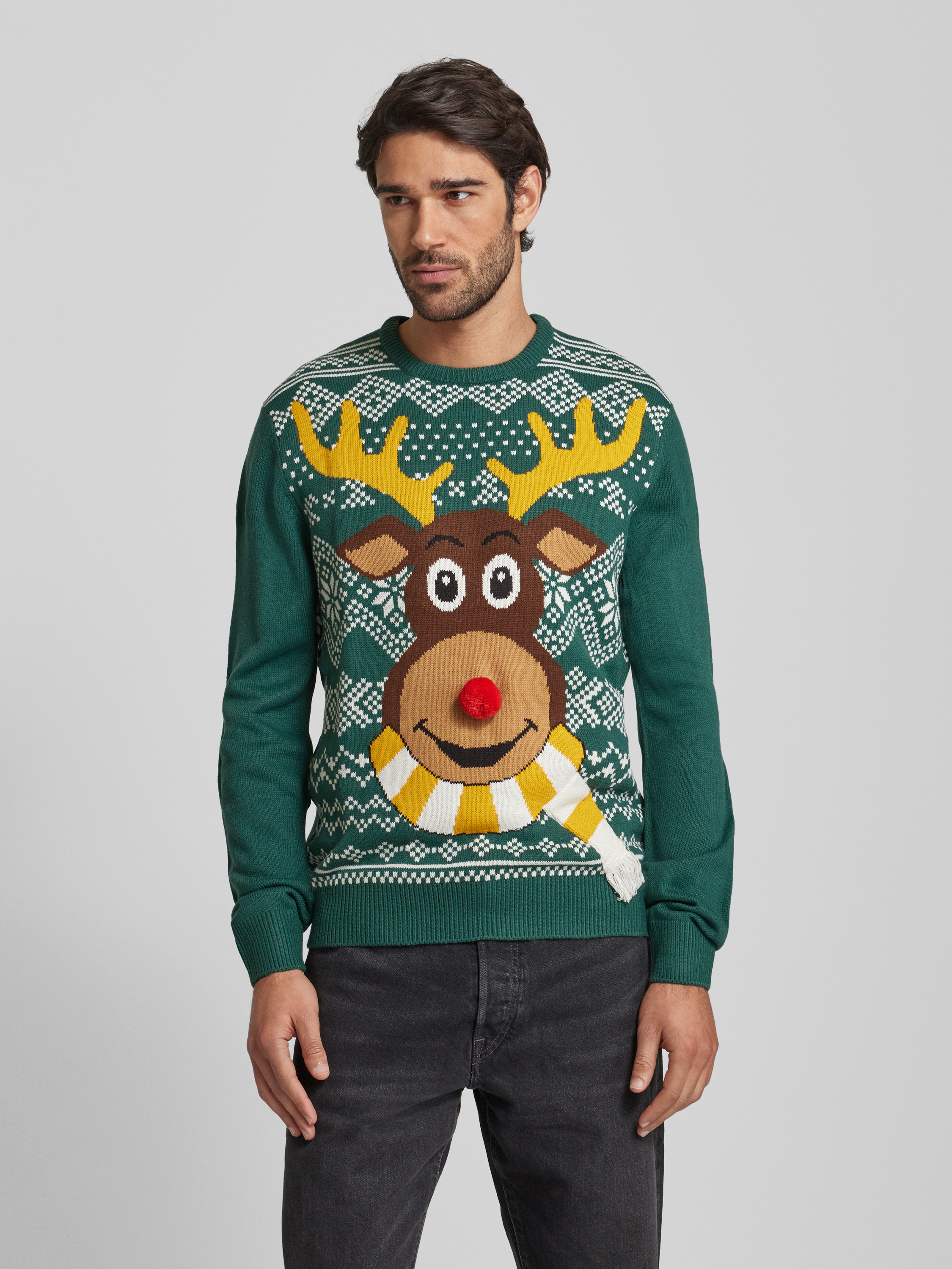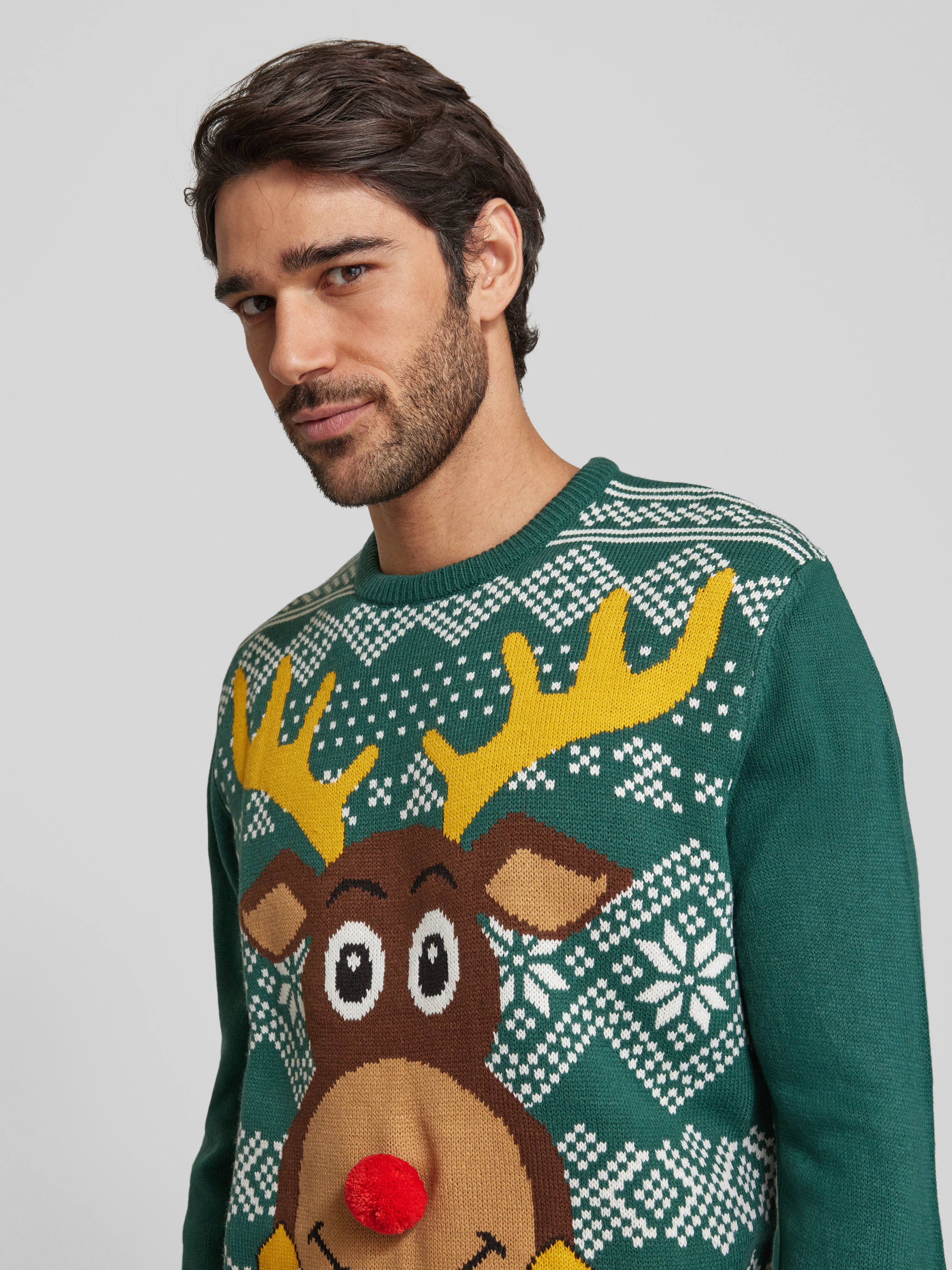 Sweter świąteczny z wyhaftowanym motywem - butelkowy zielony