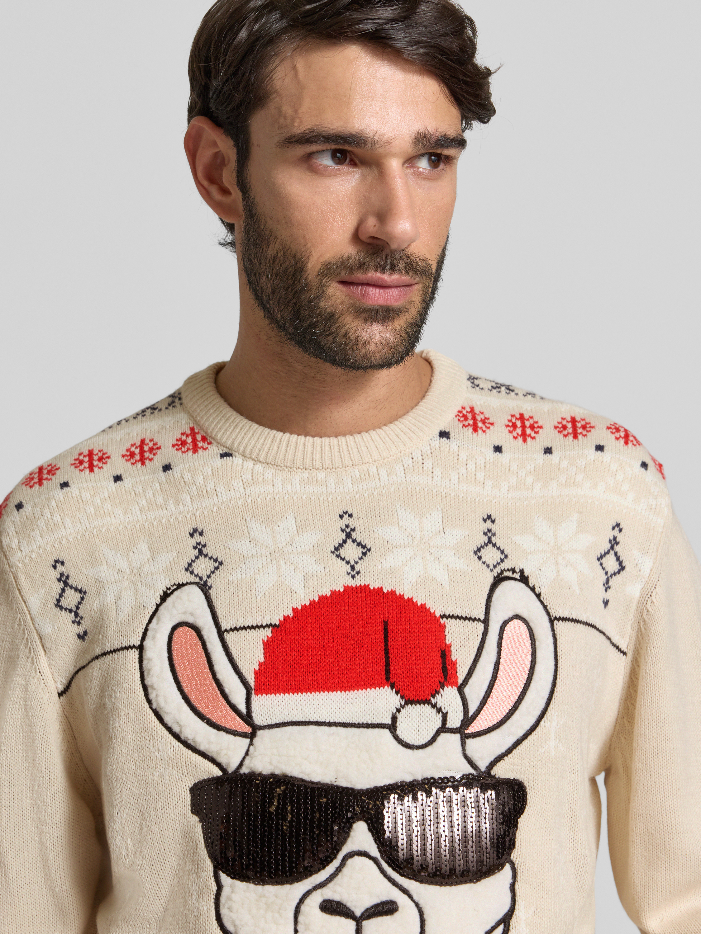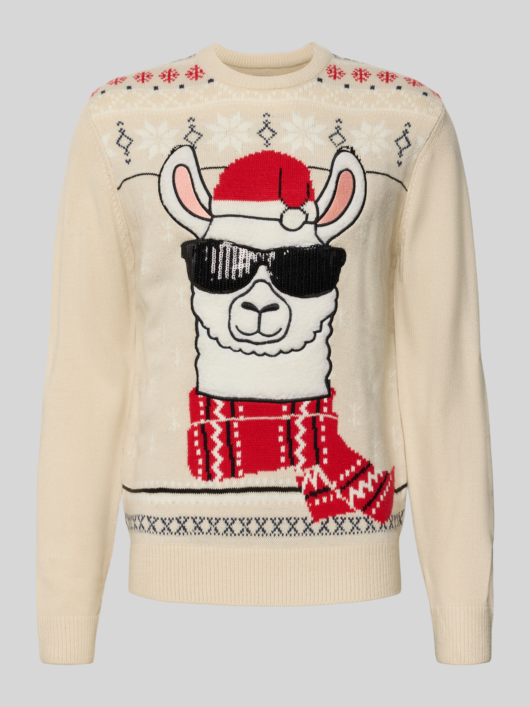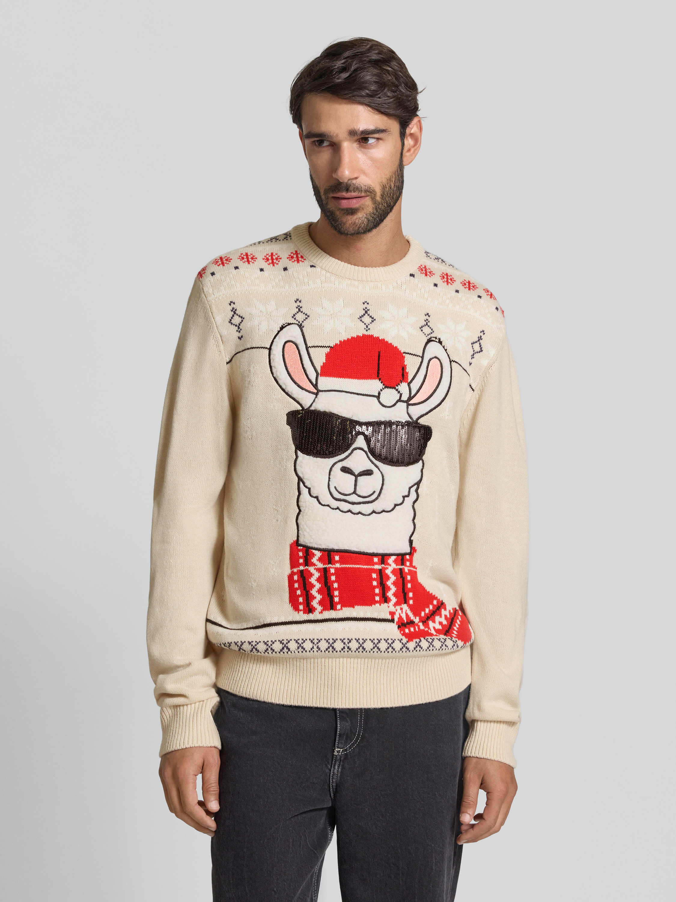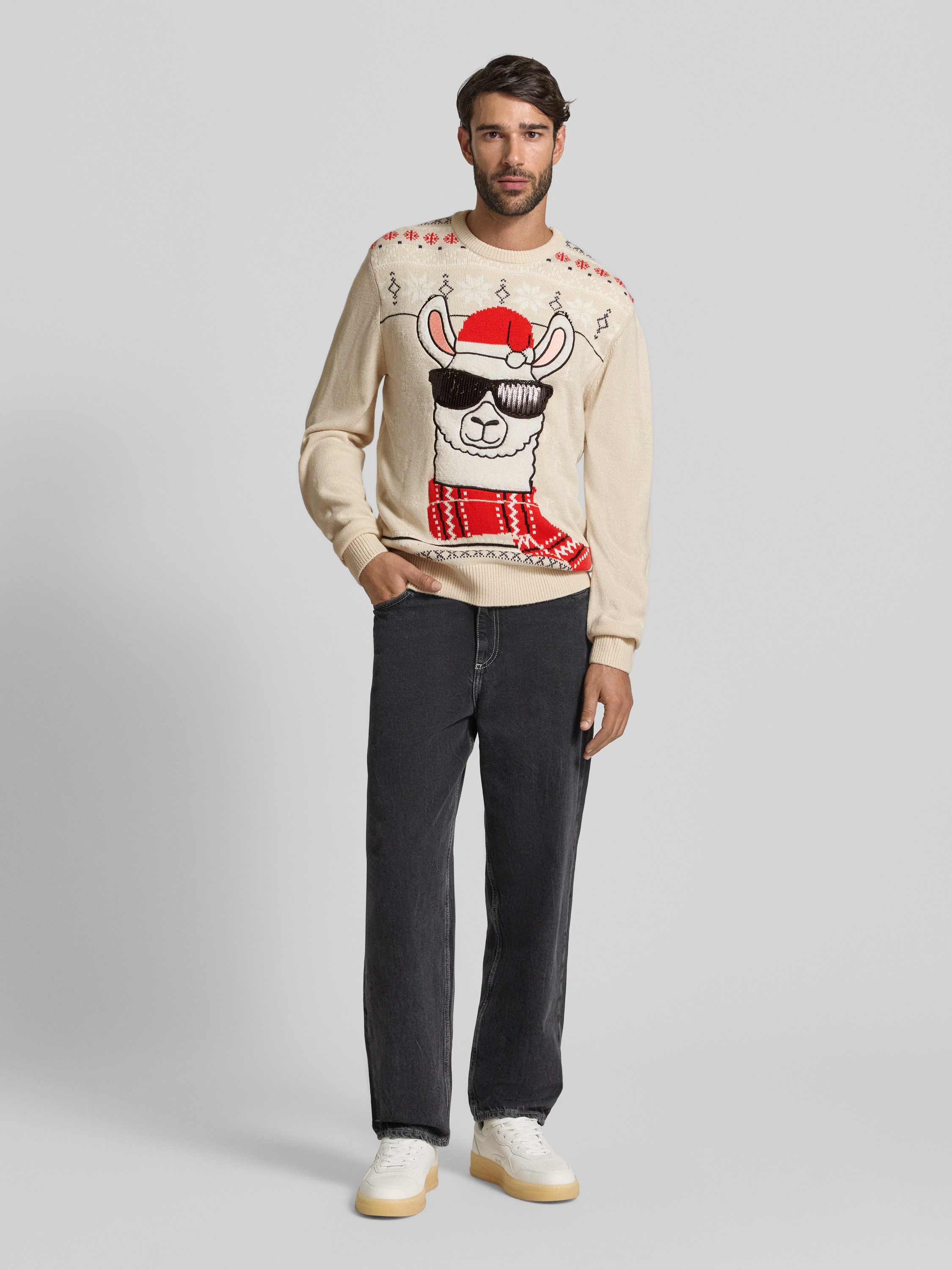 Sweter z dzianiny z prążkowanymi wykończeniami - piaskowy