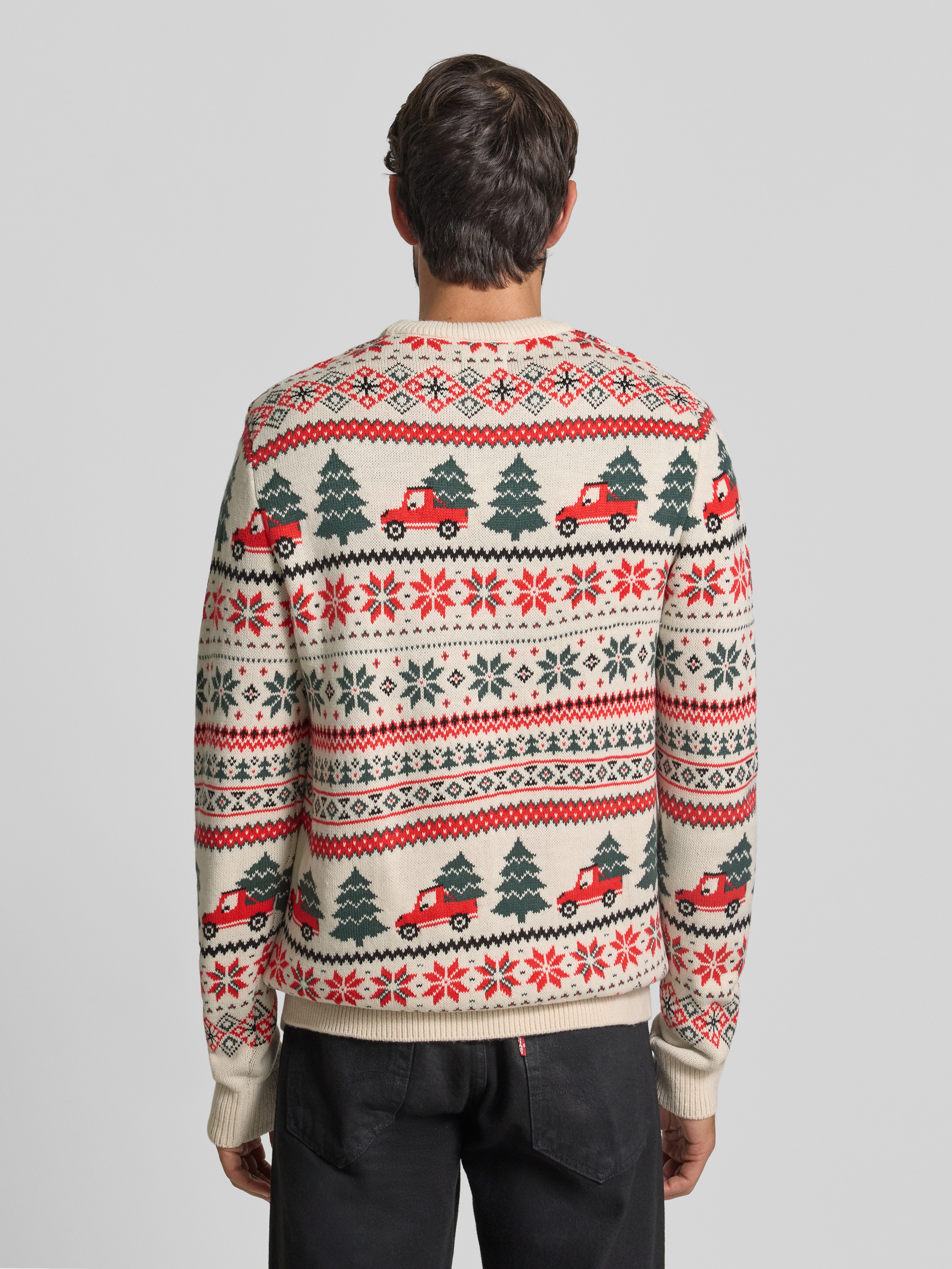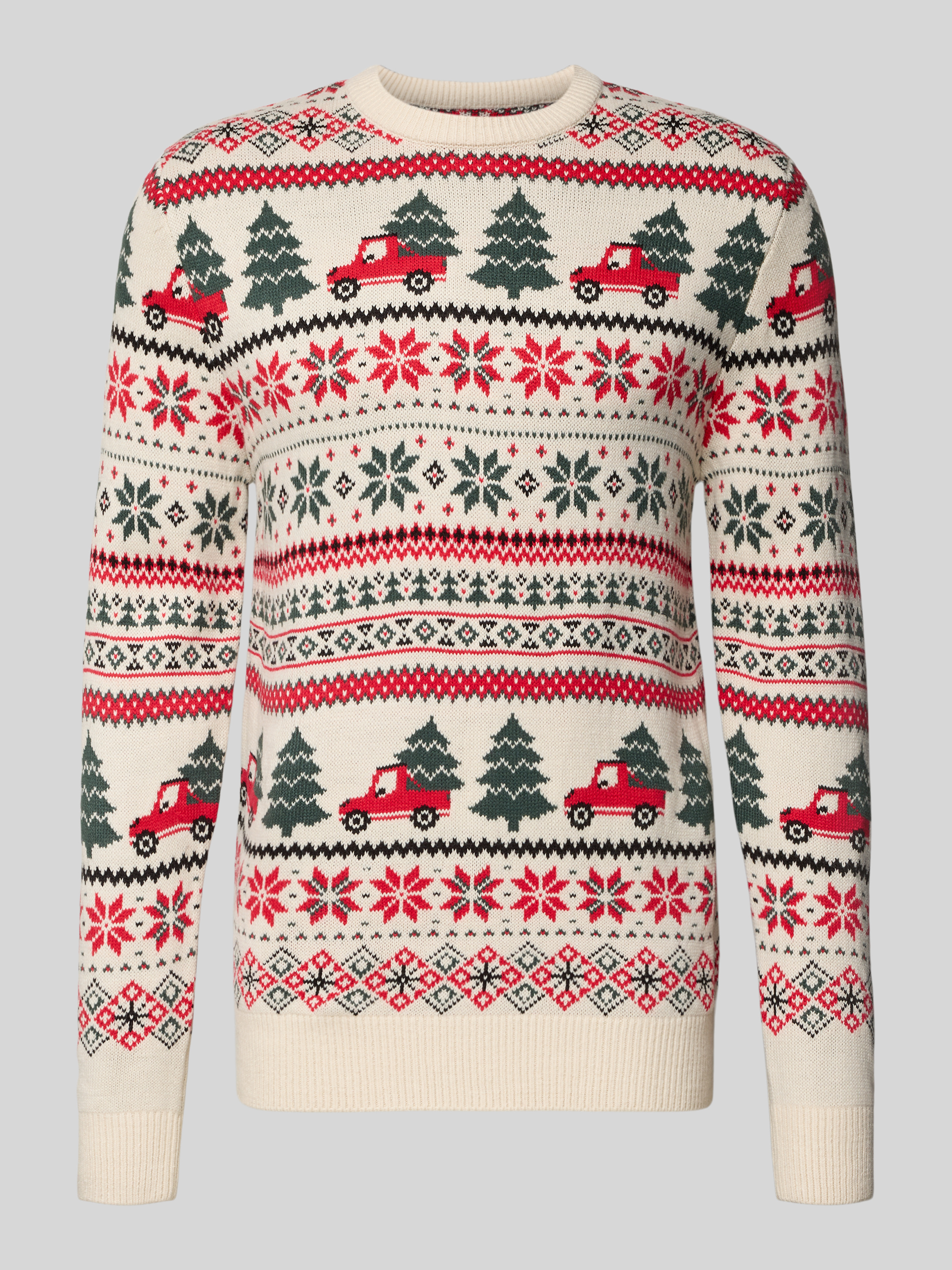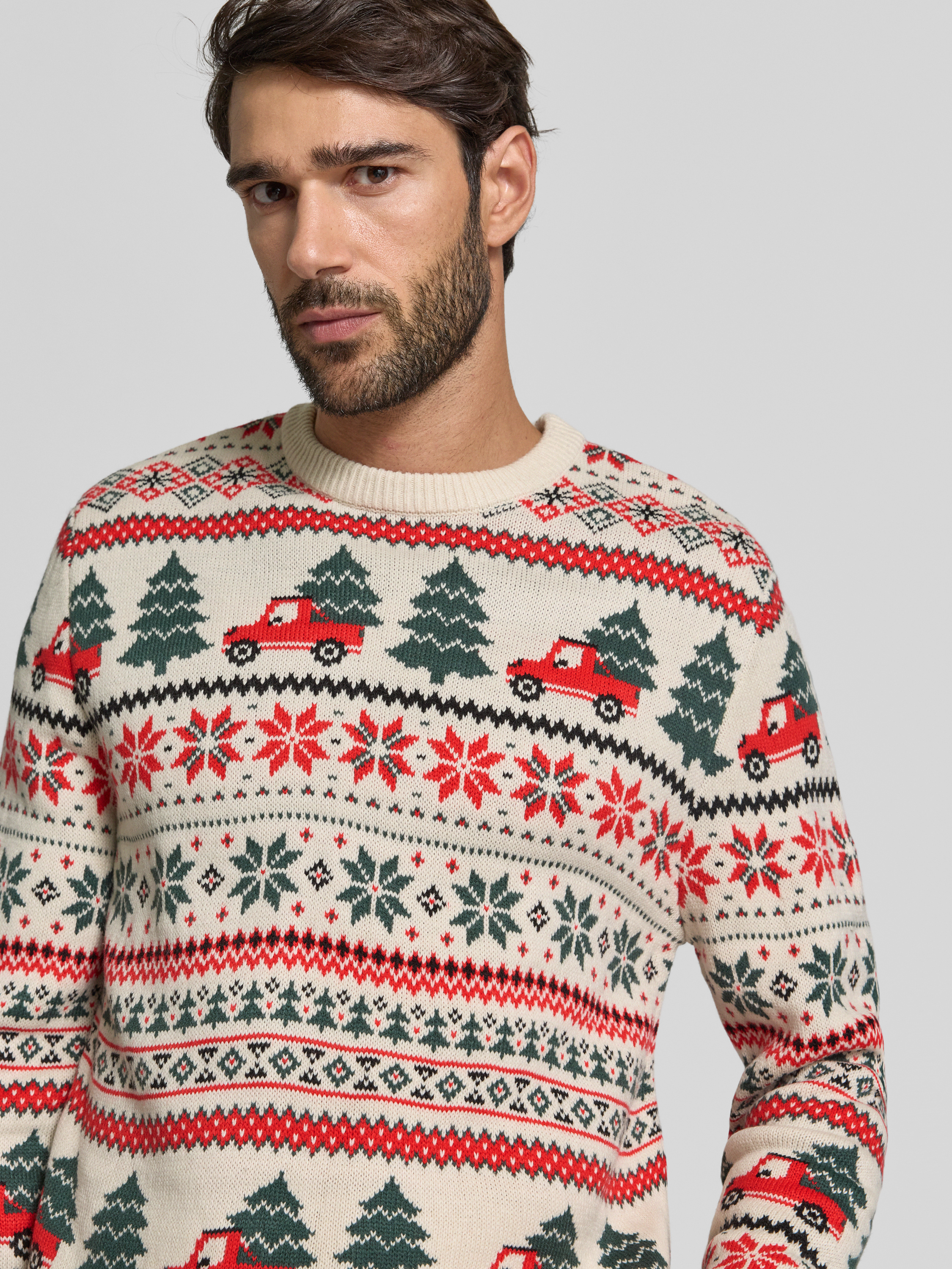 Sweter z dzianiny z prążkowanymi wykończeniami - piaskowy