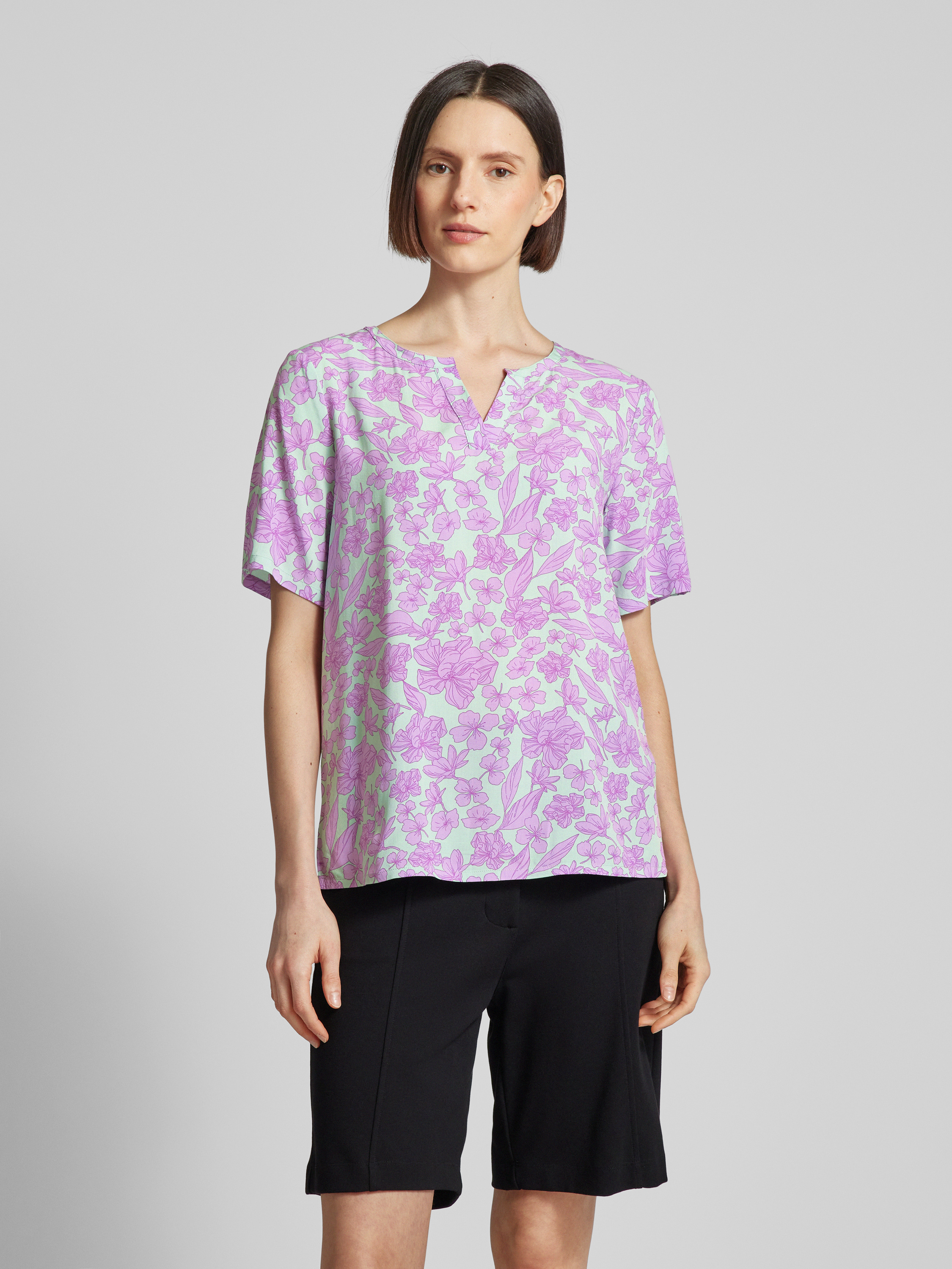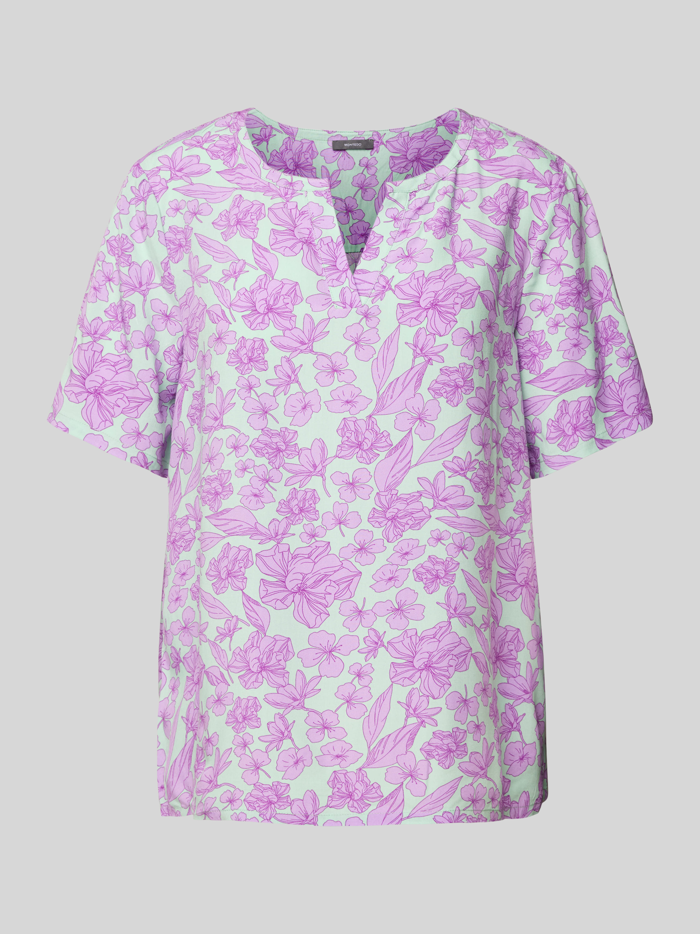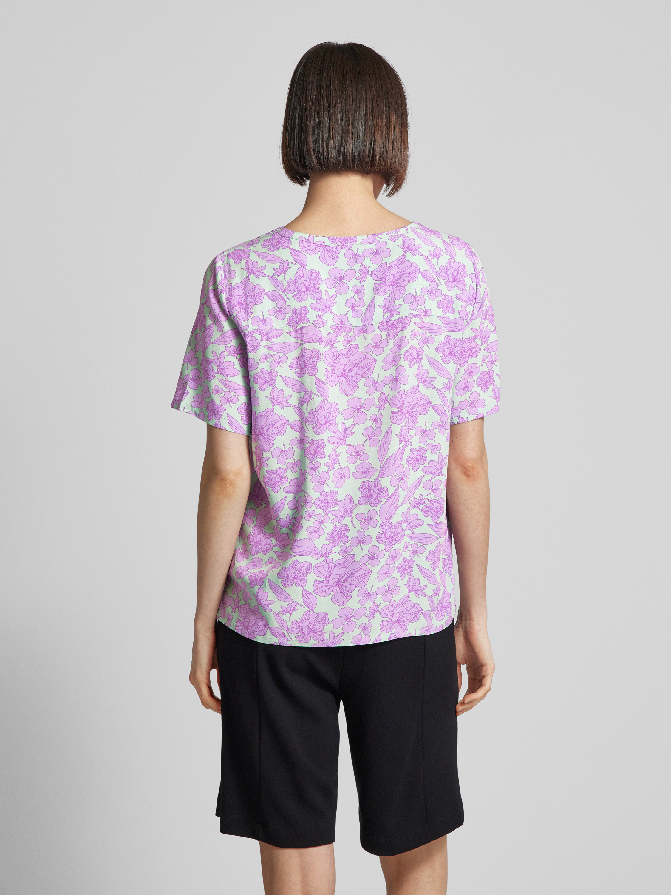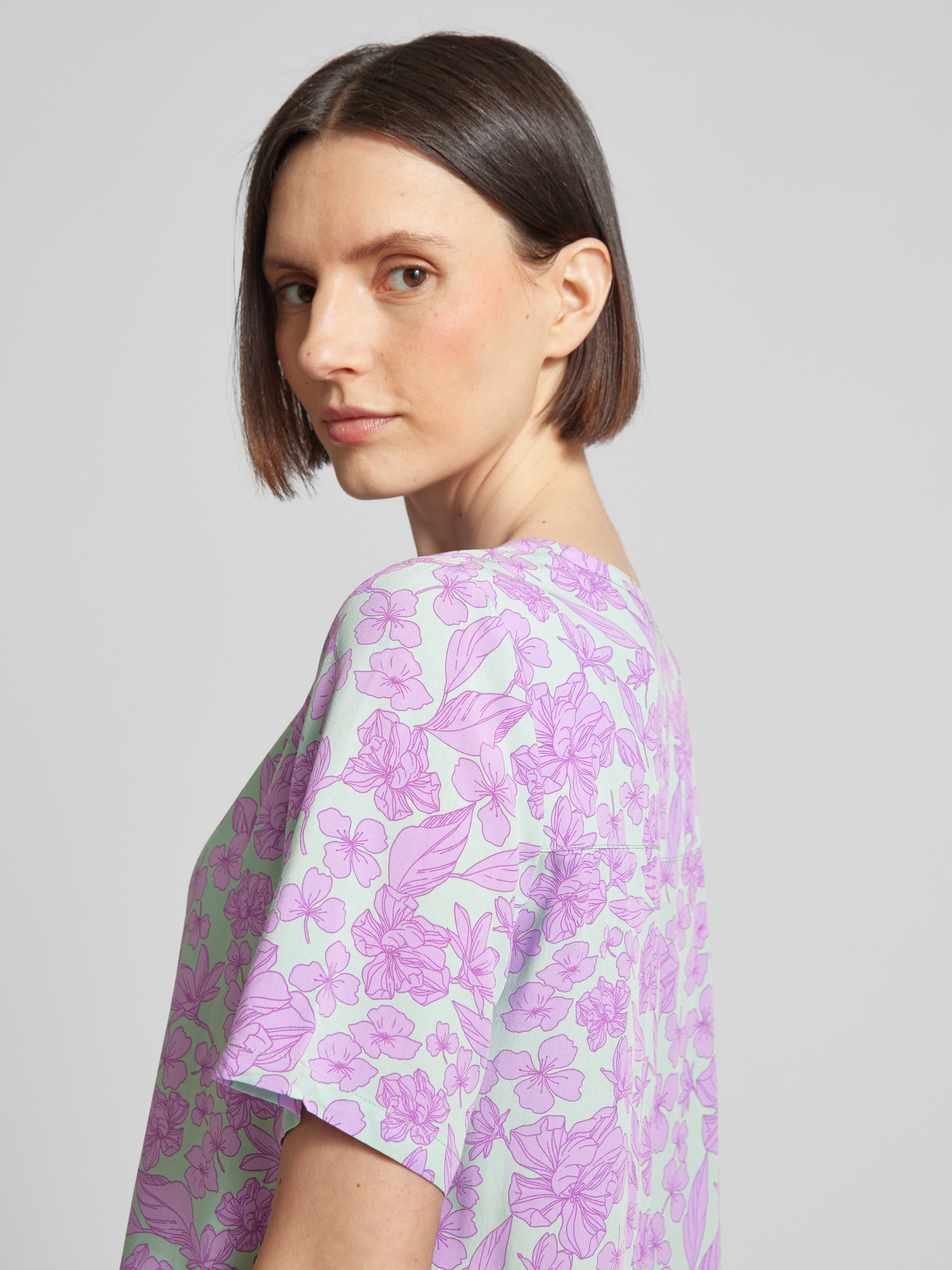 Bluzka z kwiatowym wzorem i dekoltem w serek - miętowy