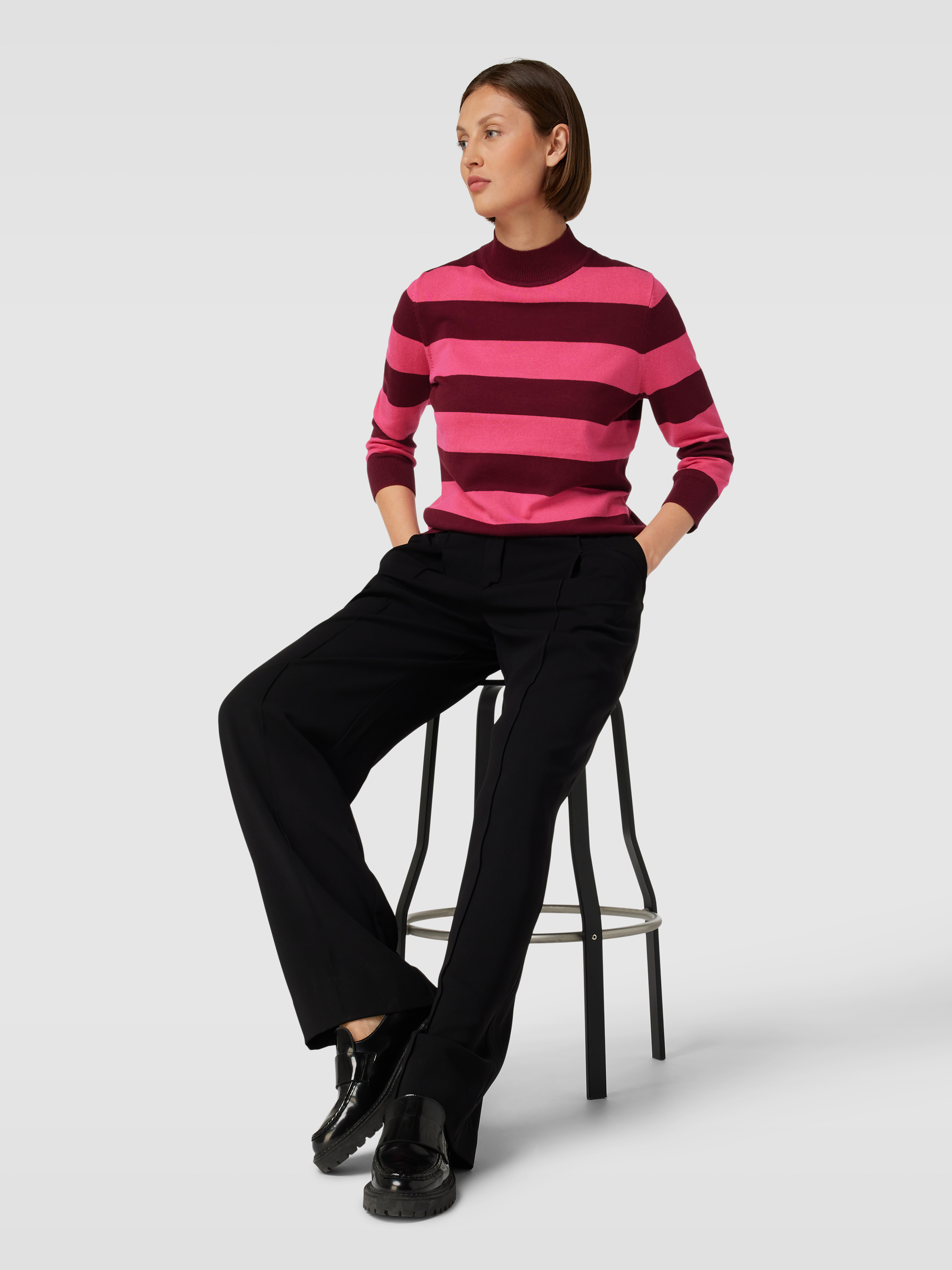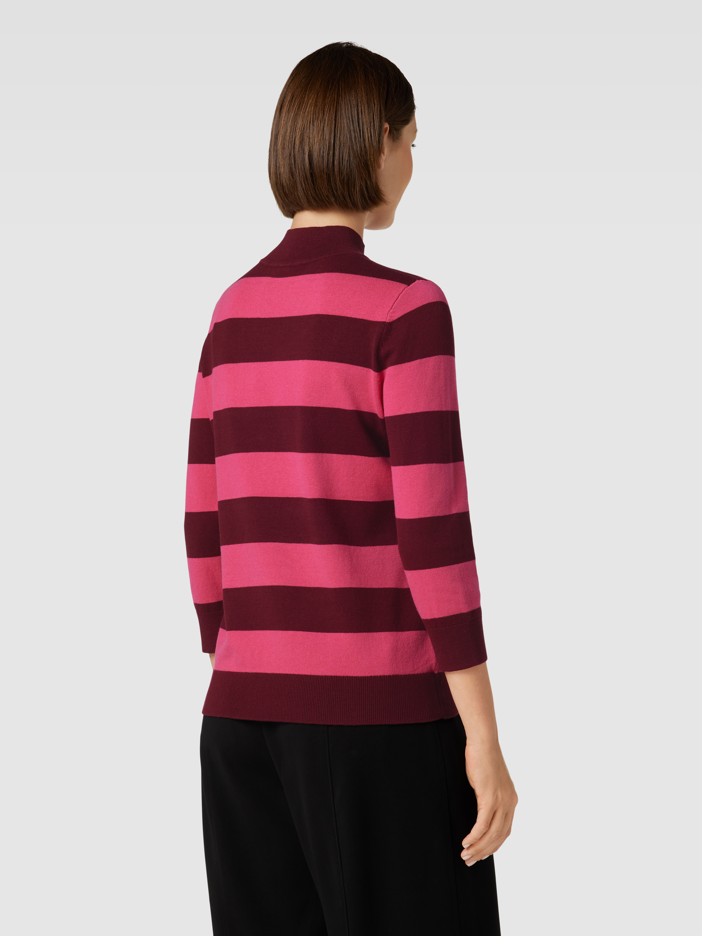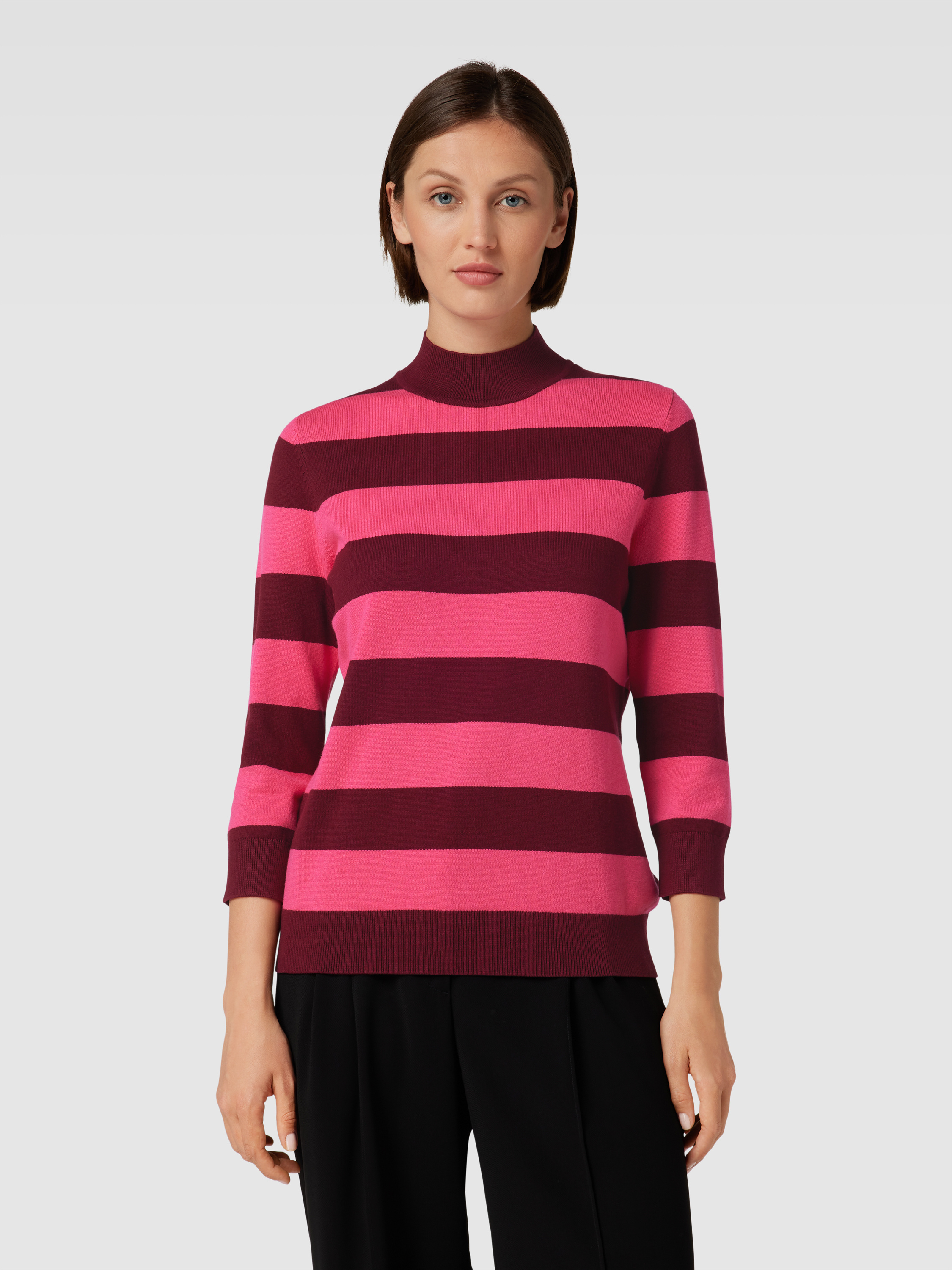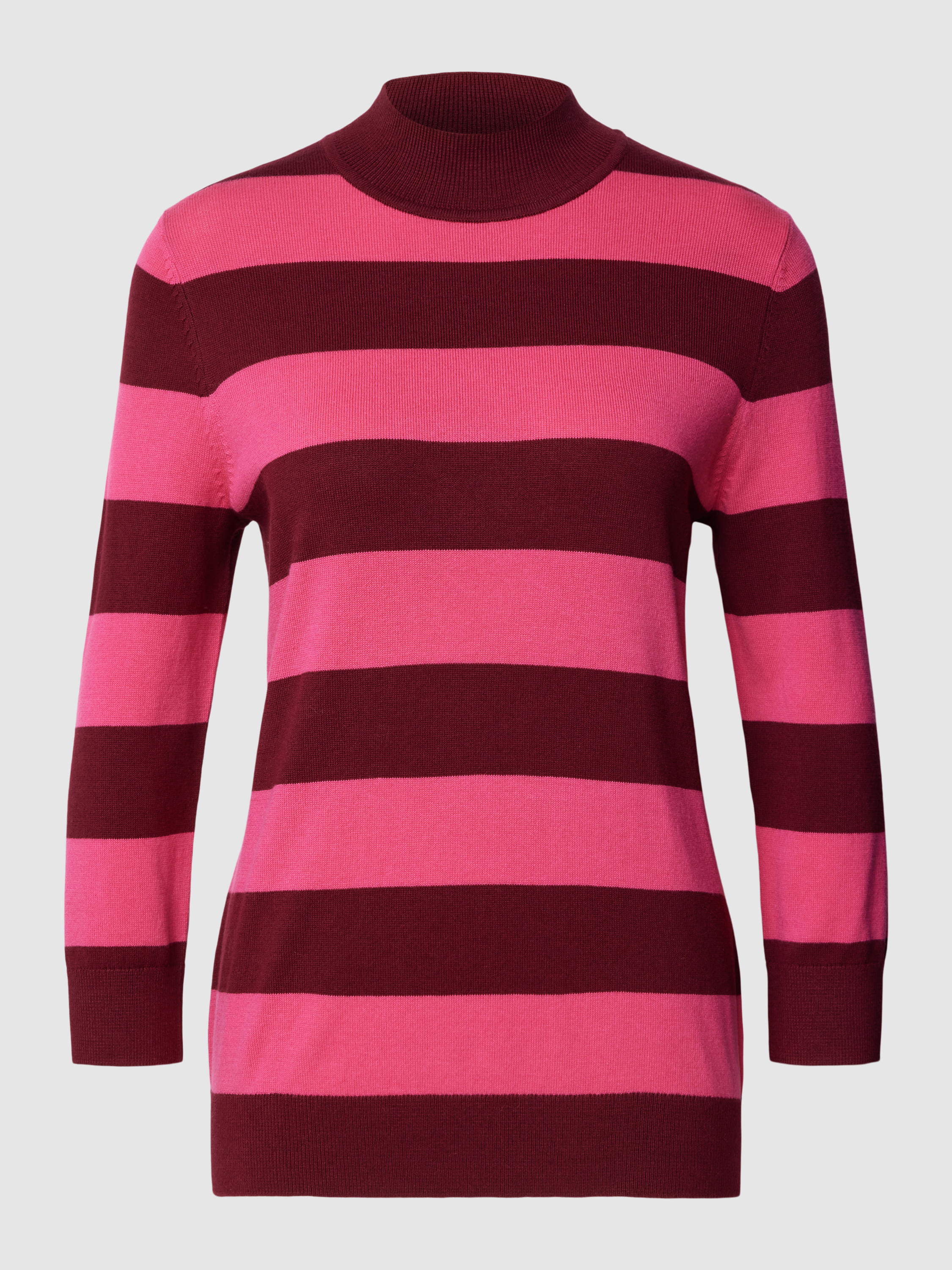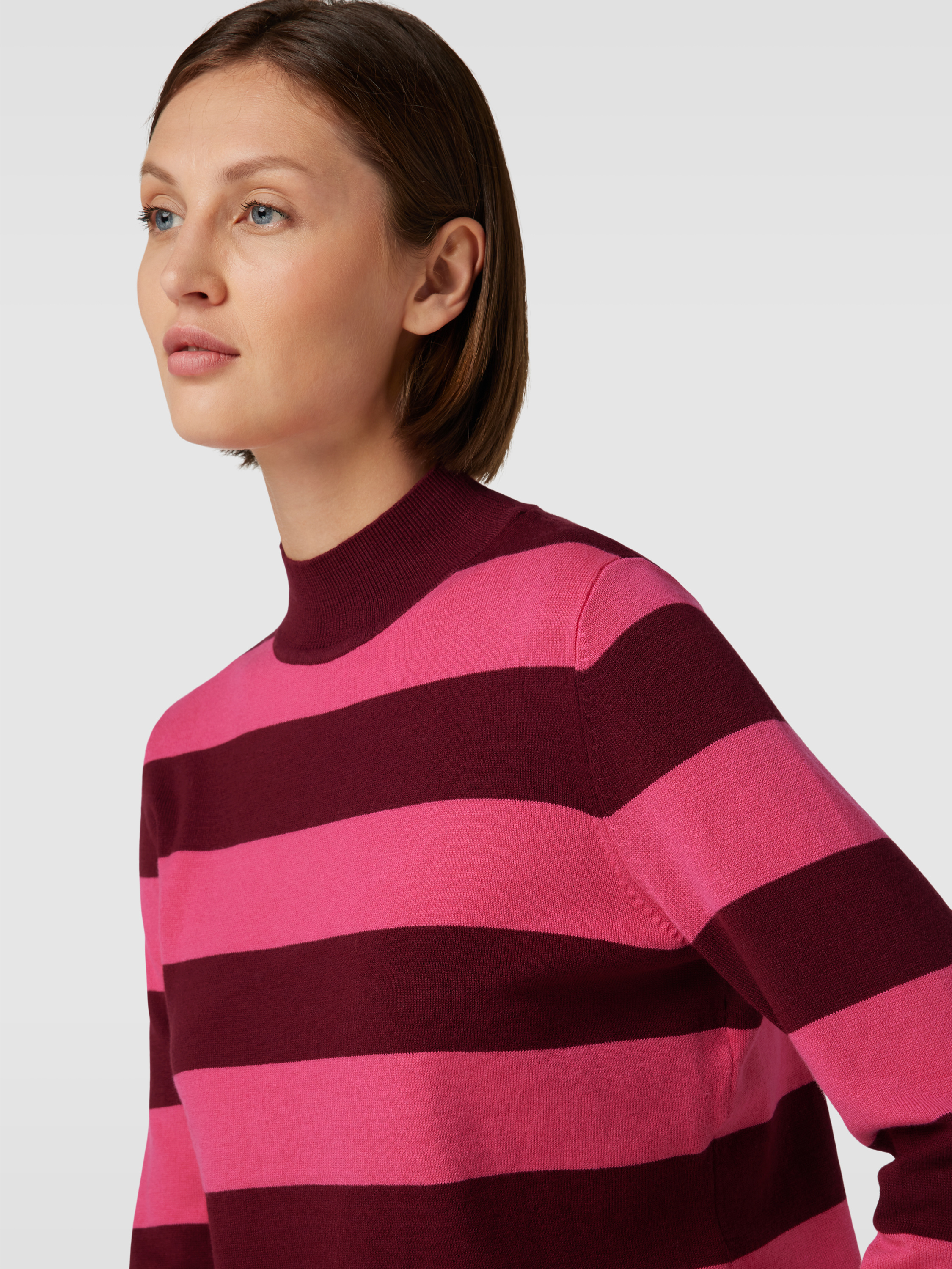 Sweter z dzianiny ze wzorem w paski - fuksjowy