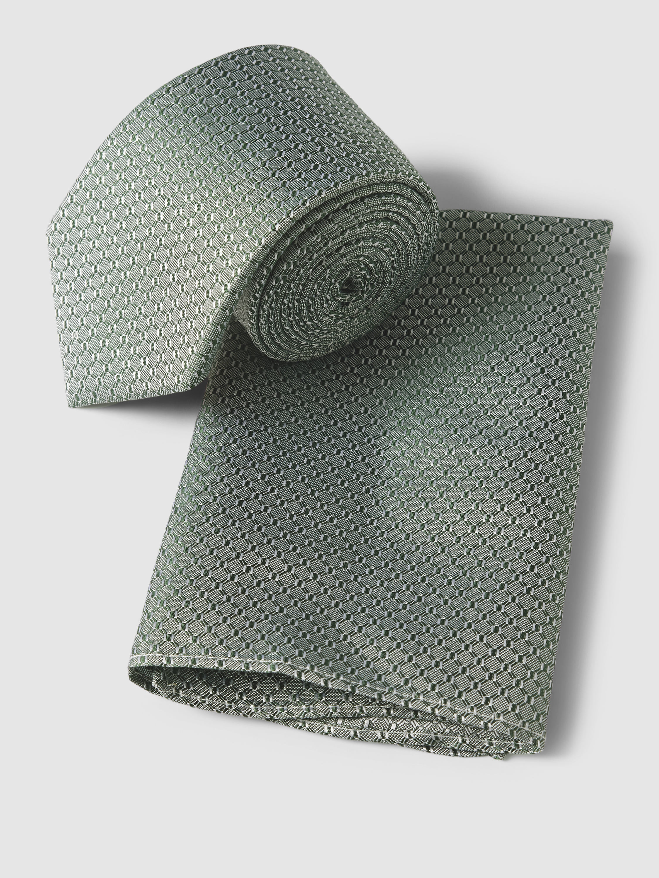 Krawat i poszetka z jedwabiu w zestawie - zielony