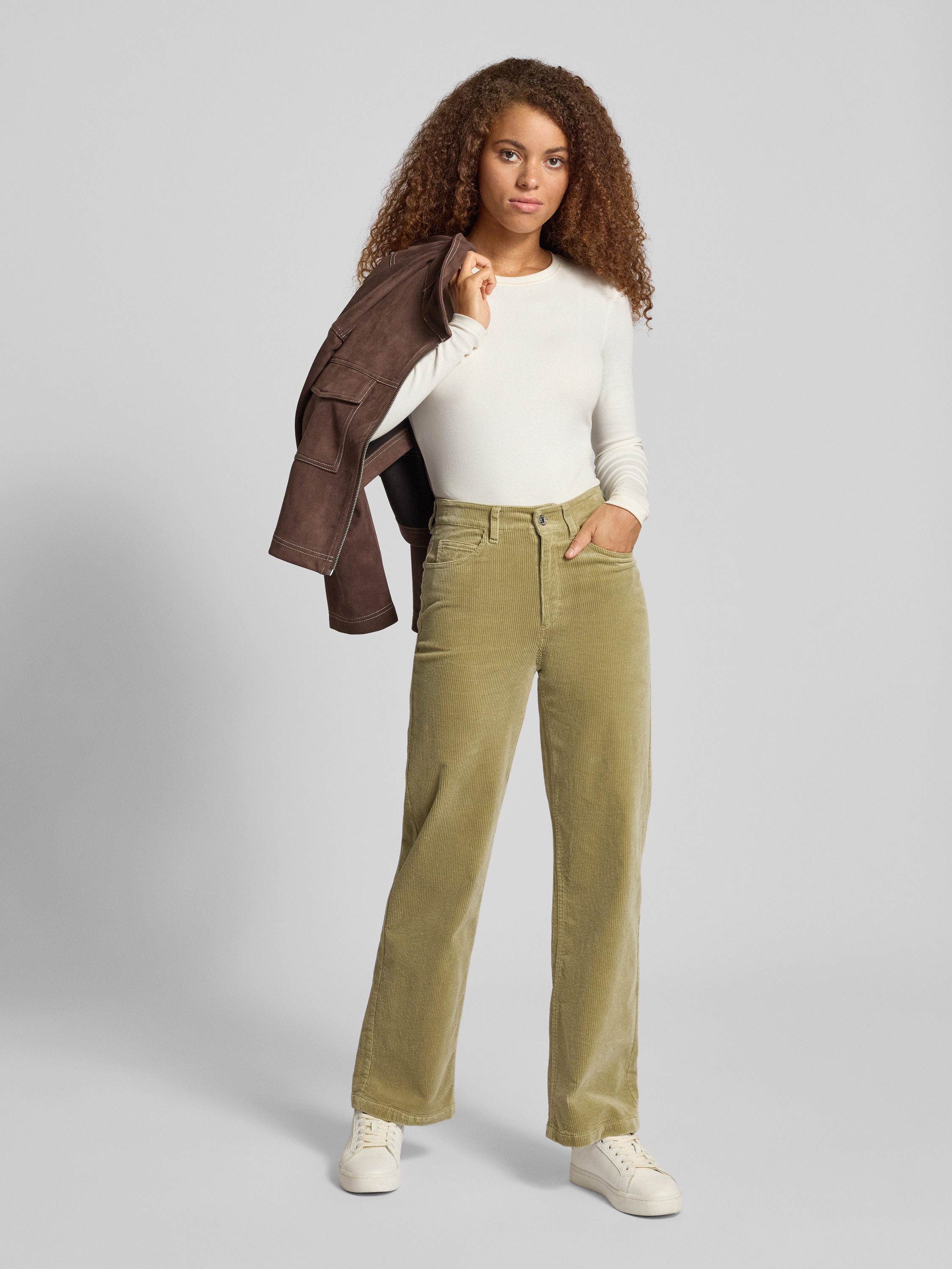 Marc O'Polo DenimSpodnie sztruksowe z szerokimi nogawkami z mieszanki bawełny - trzcinowy