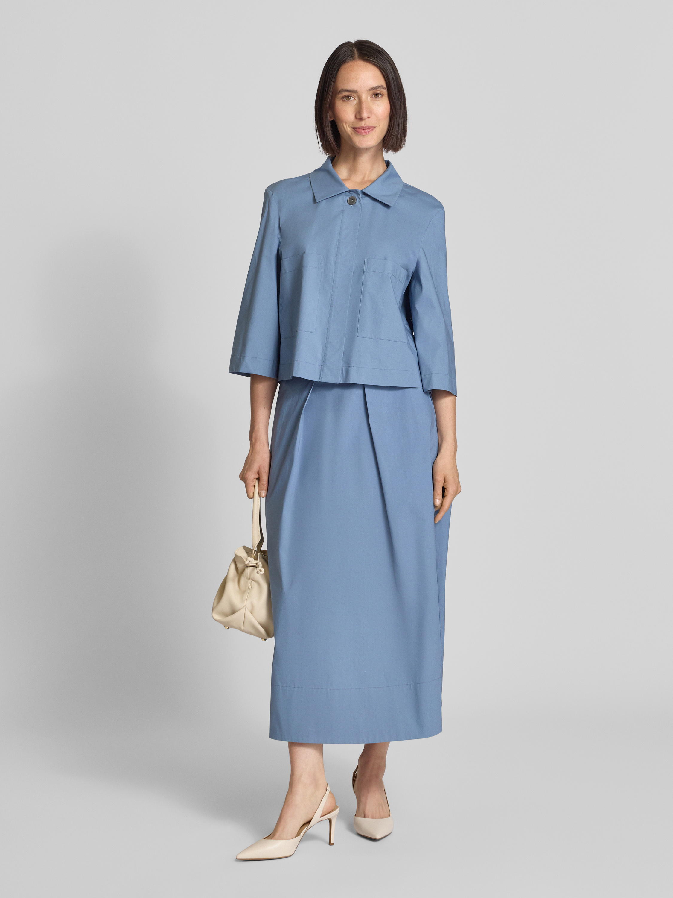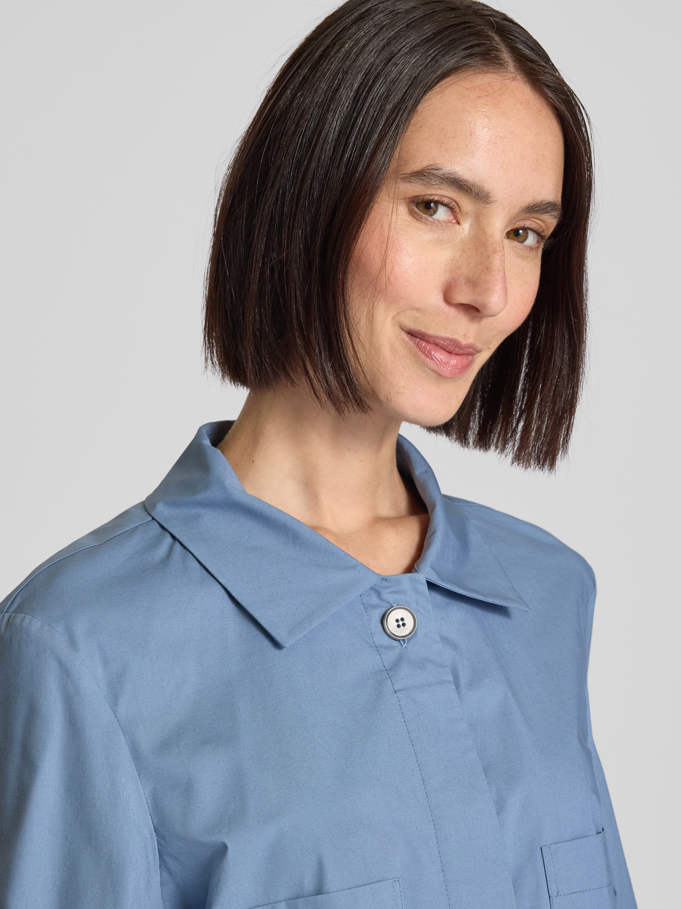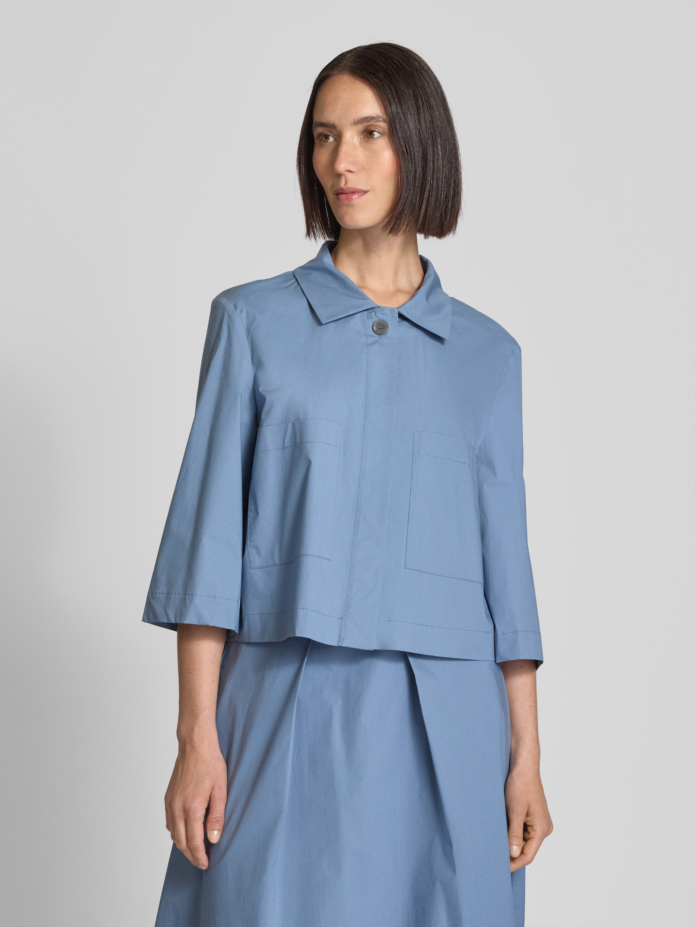 Bluzka krótka z wpuszczanymi kieszeniami - jeansowy niebieski
