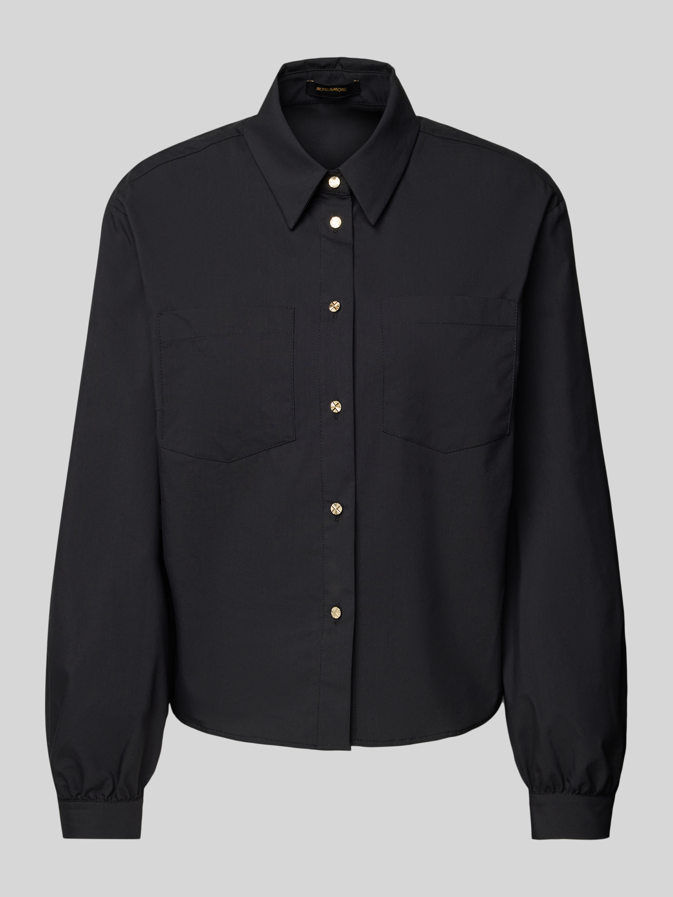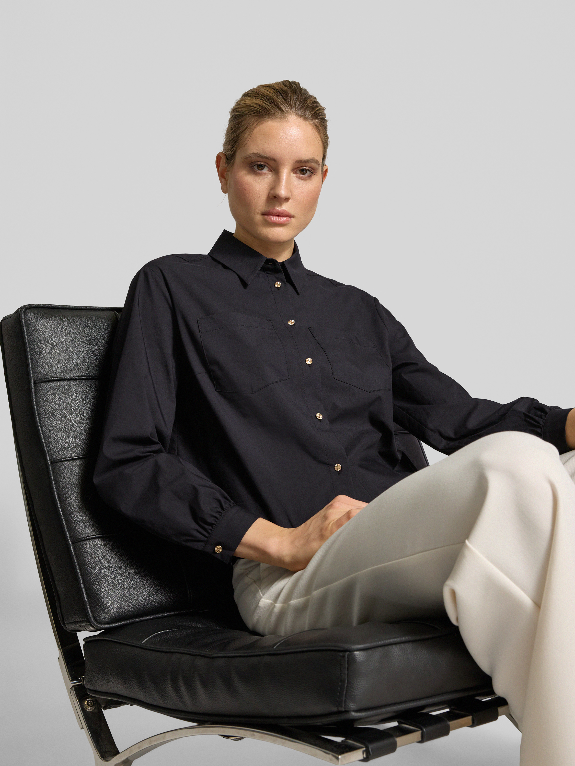 Bluzka koszulowa o pudełkowym kroju z mieszanki bawełny - czarny