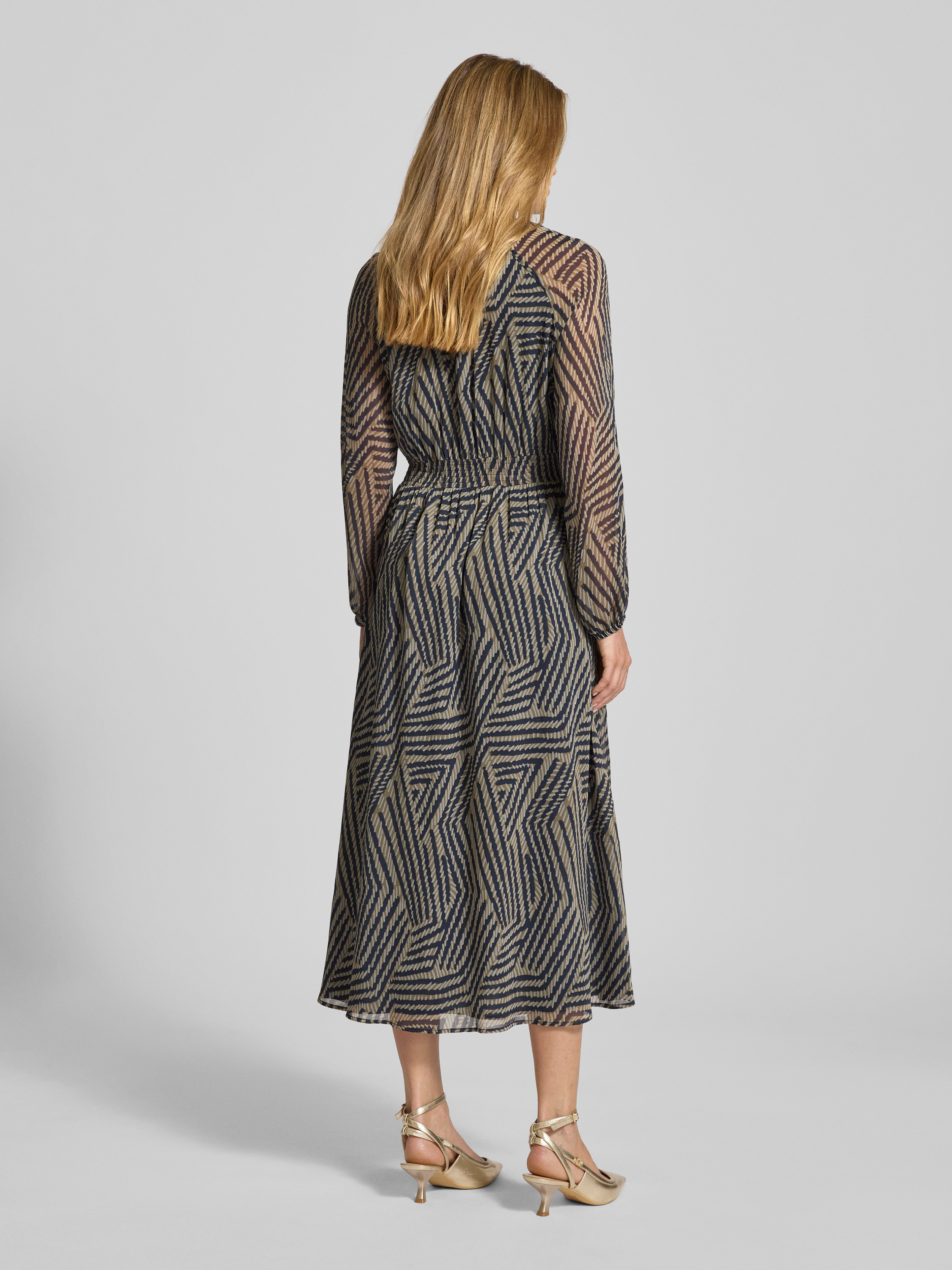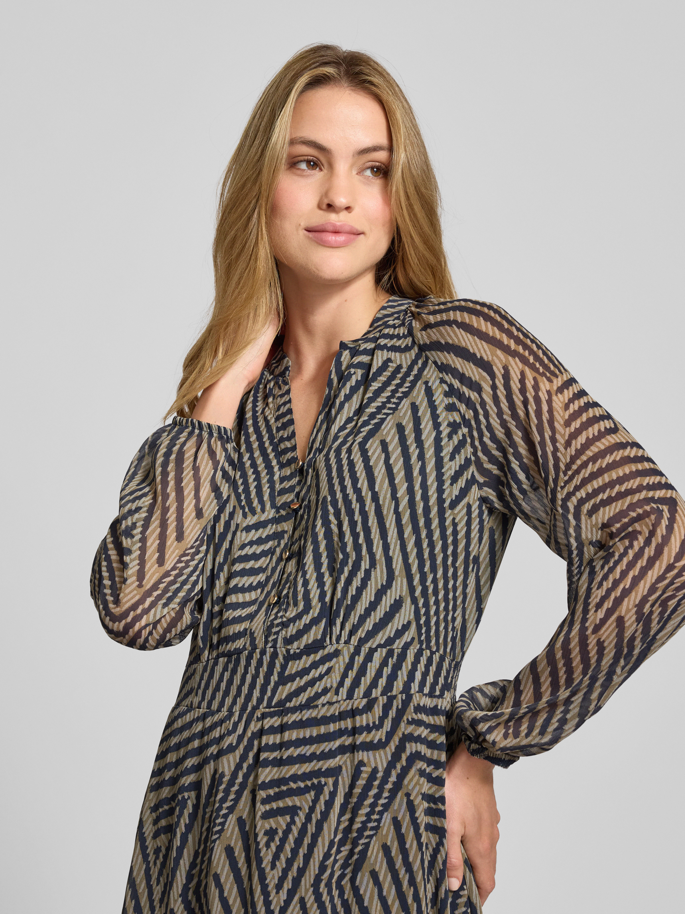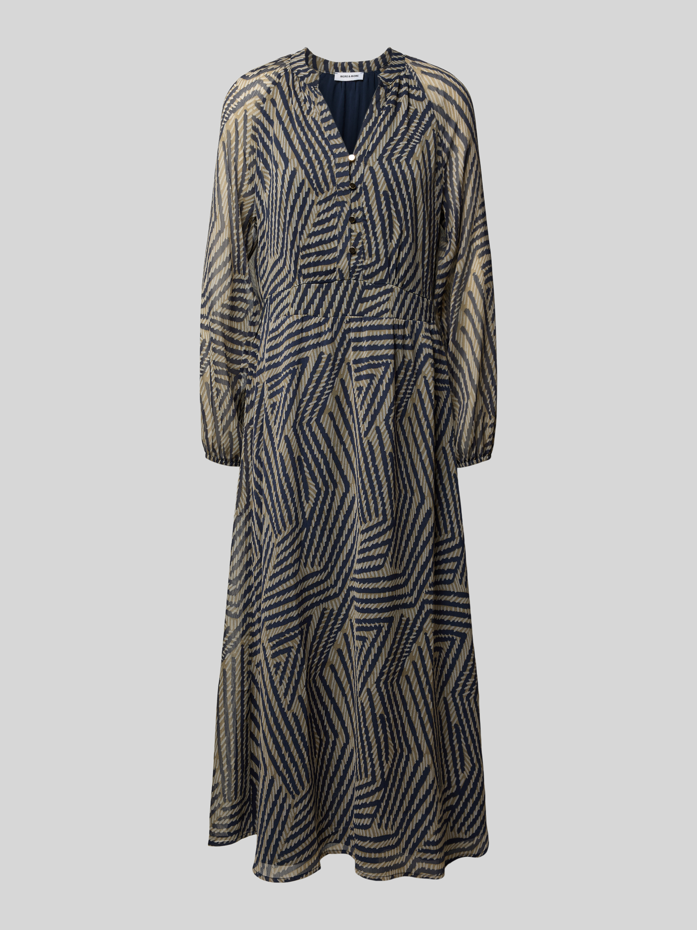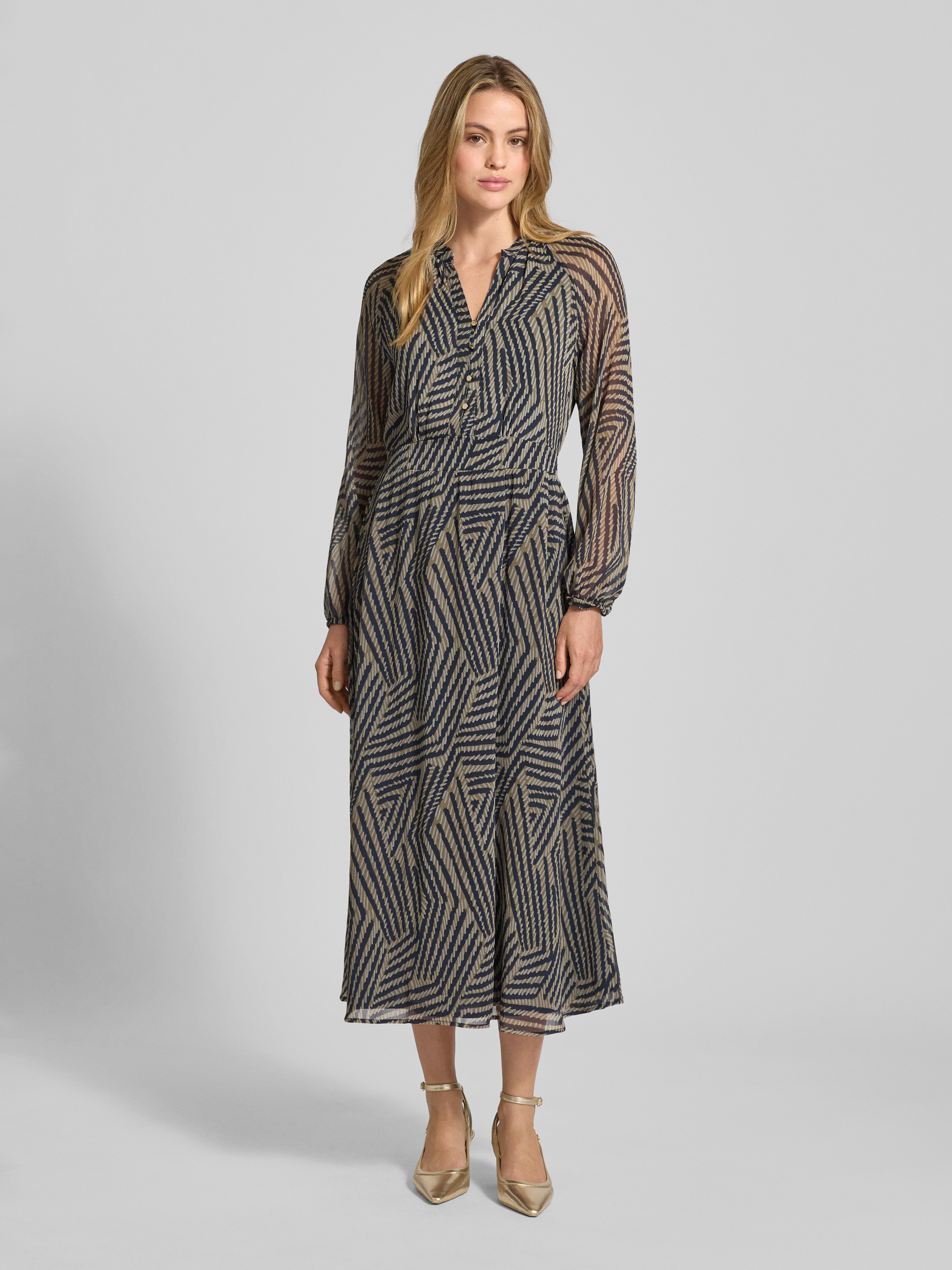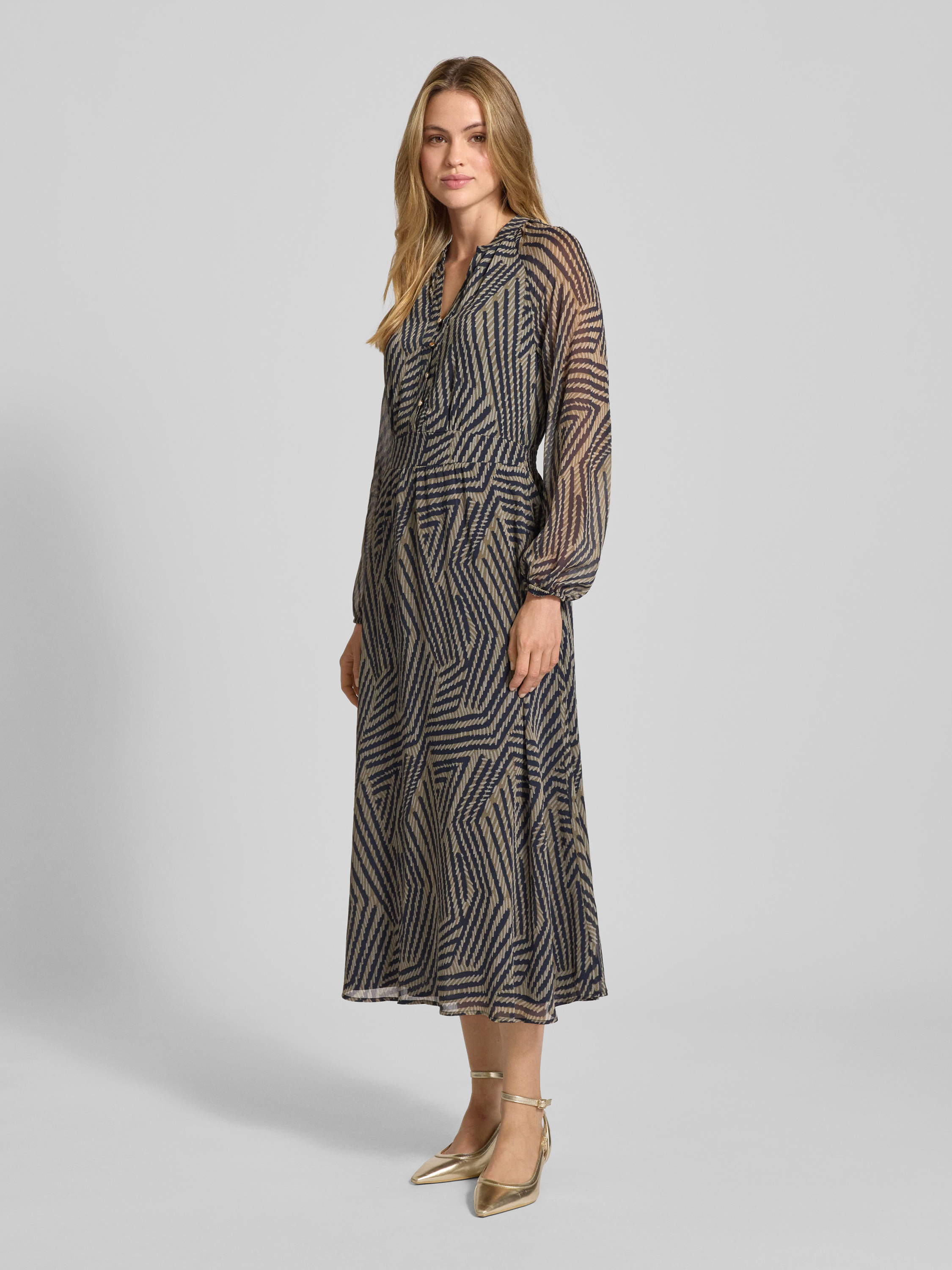 Długa sukienka z kołnierzem z lamówką - trzcinowy