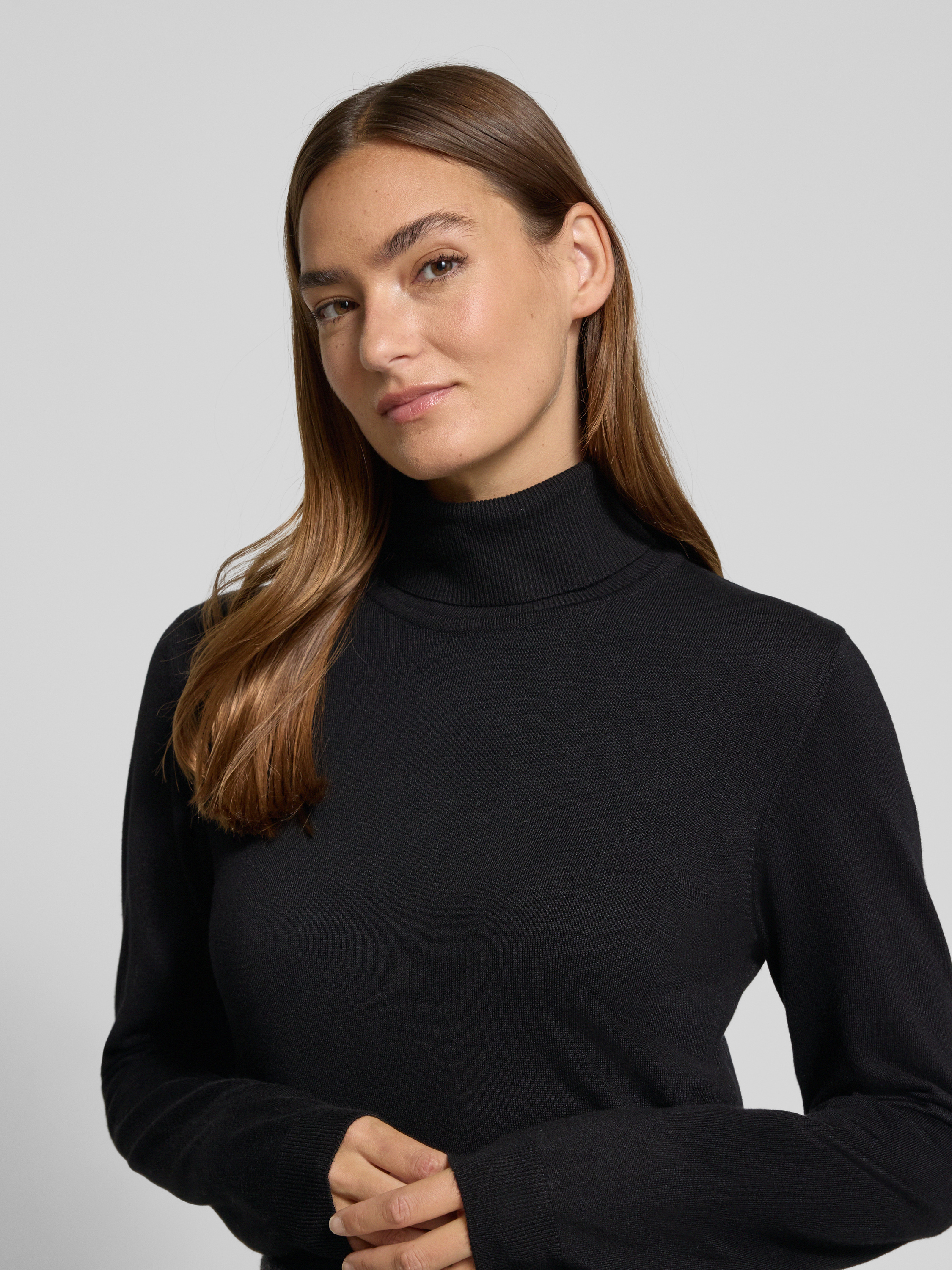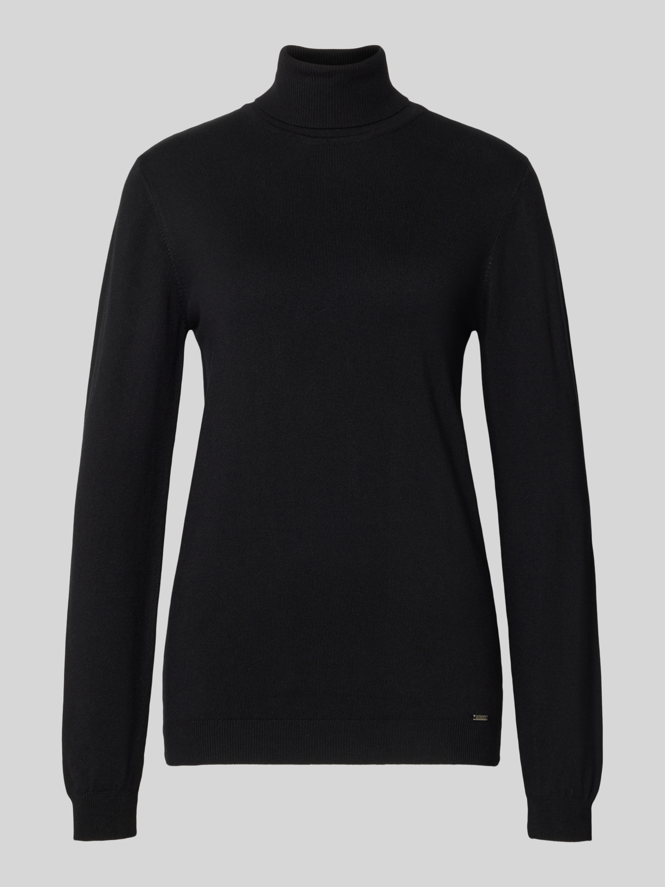Golf z mieszanki wiskozy z detalem z logo - czarny