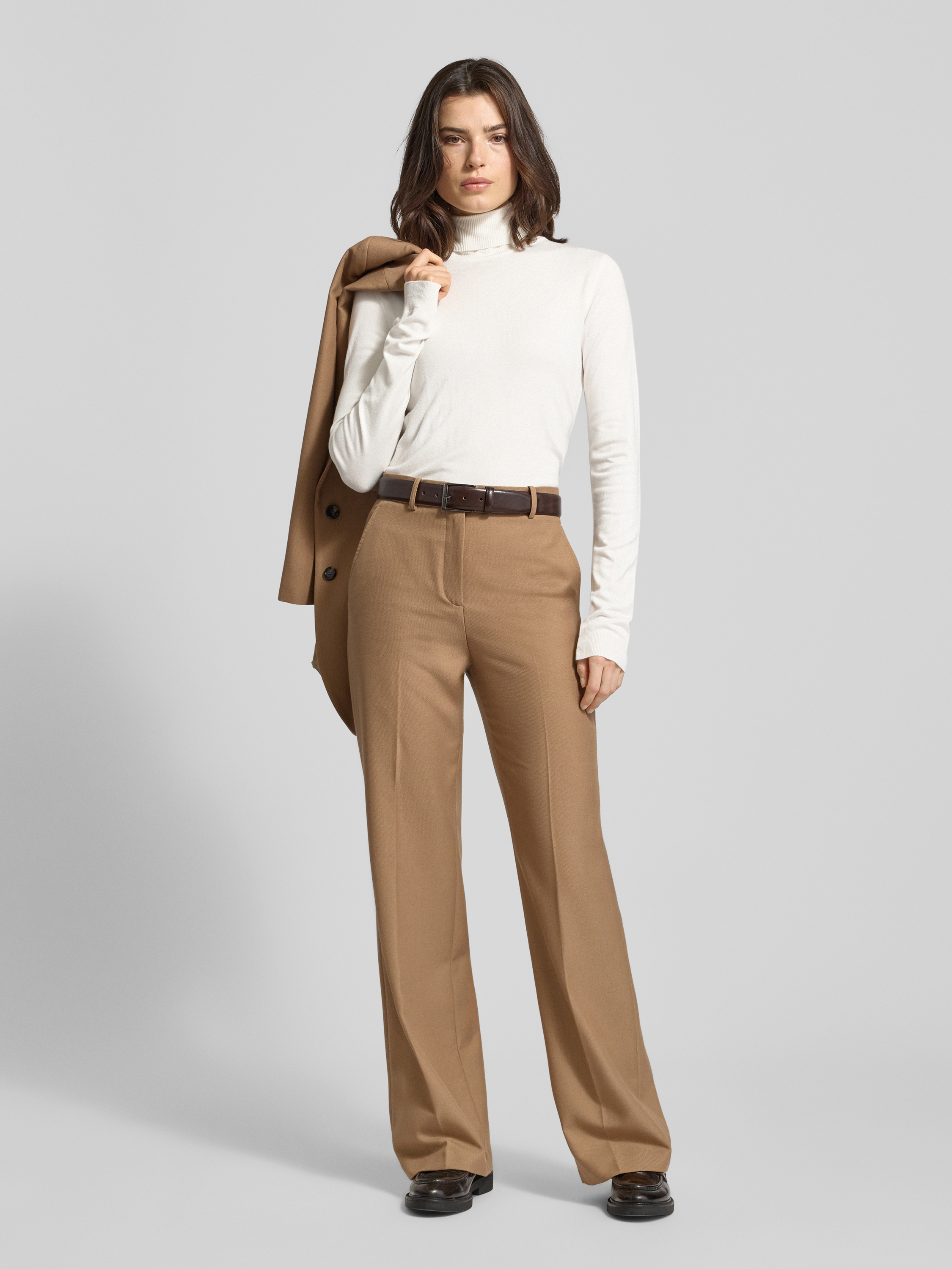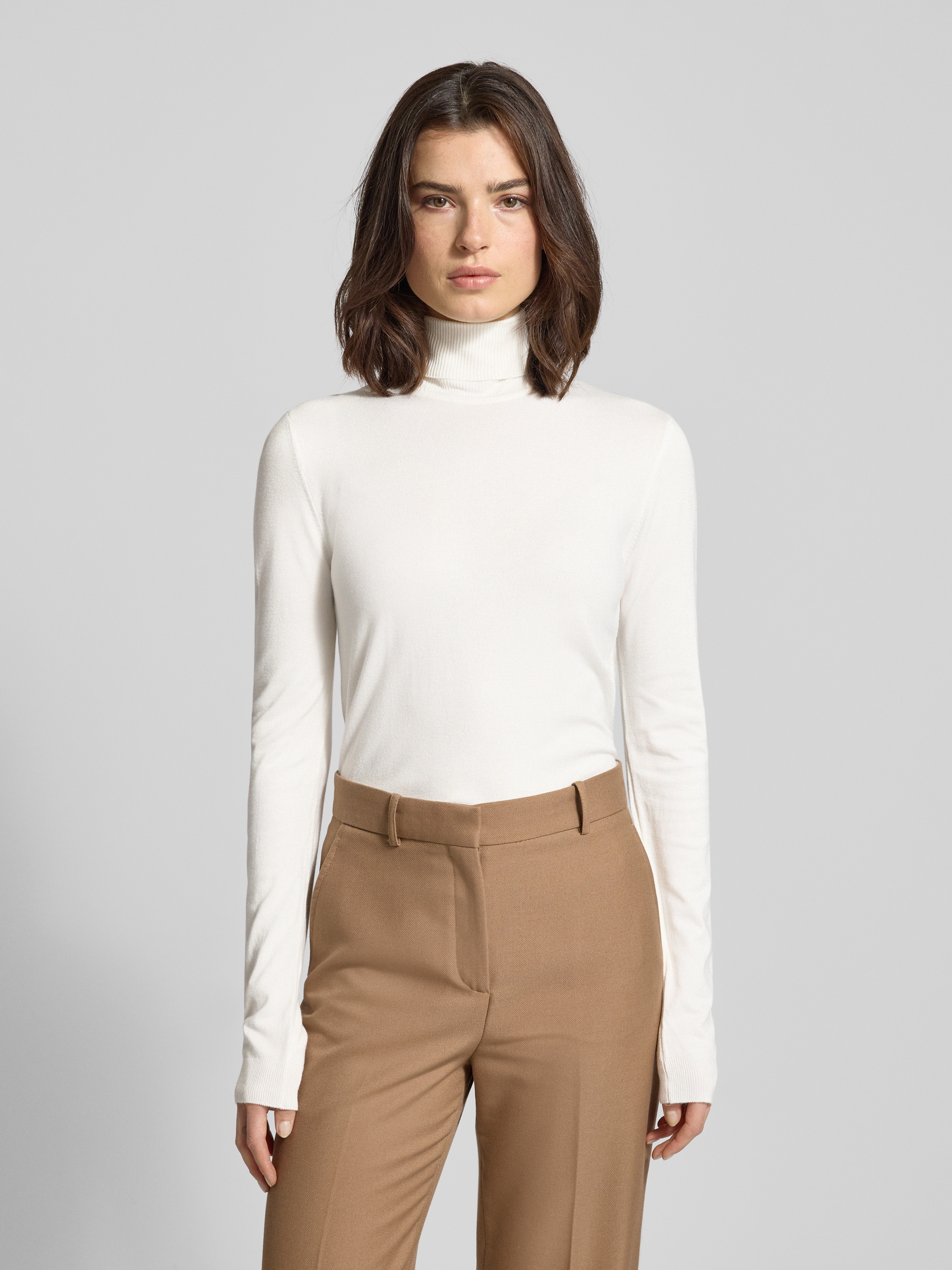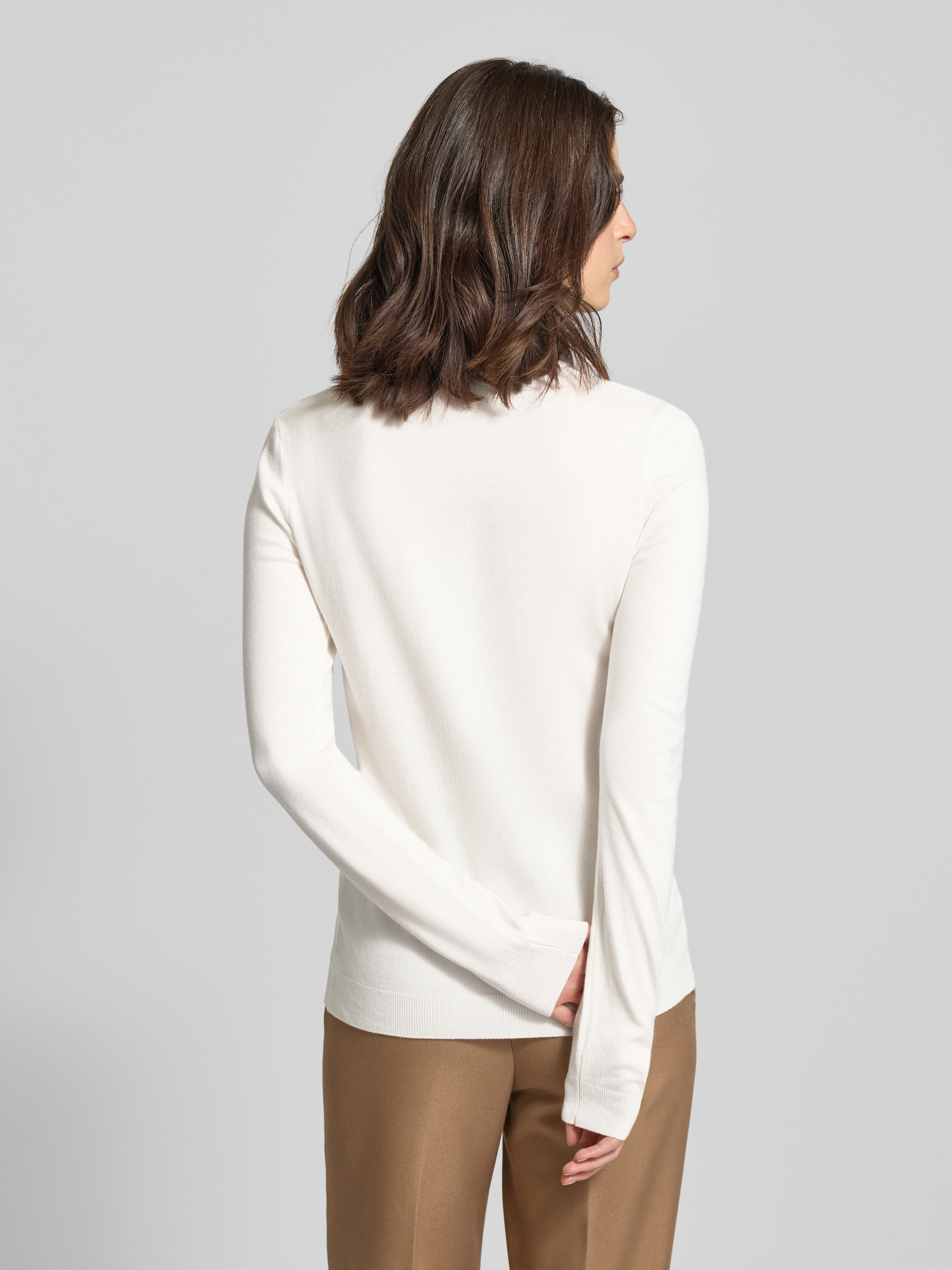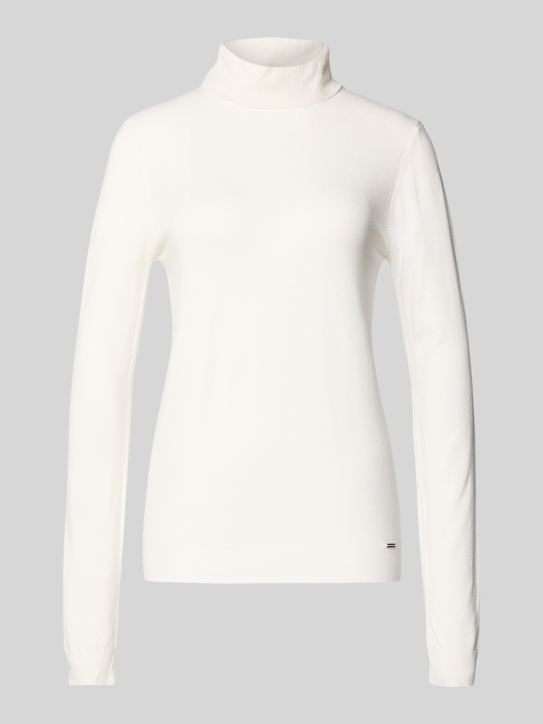 Golf z mieszanki wiskozy z detalem z logo - złamany biały