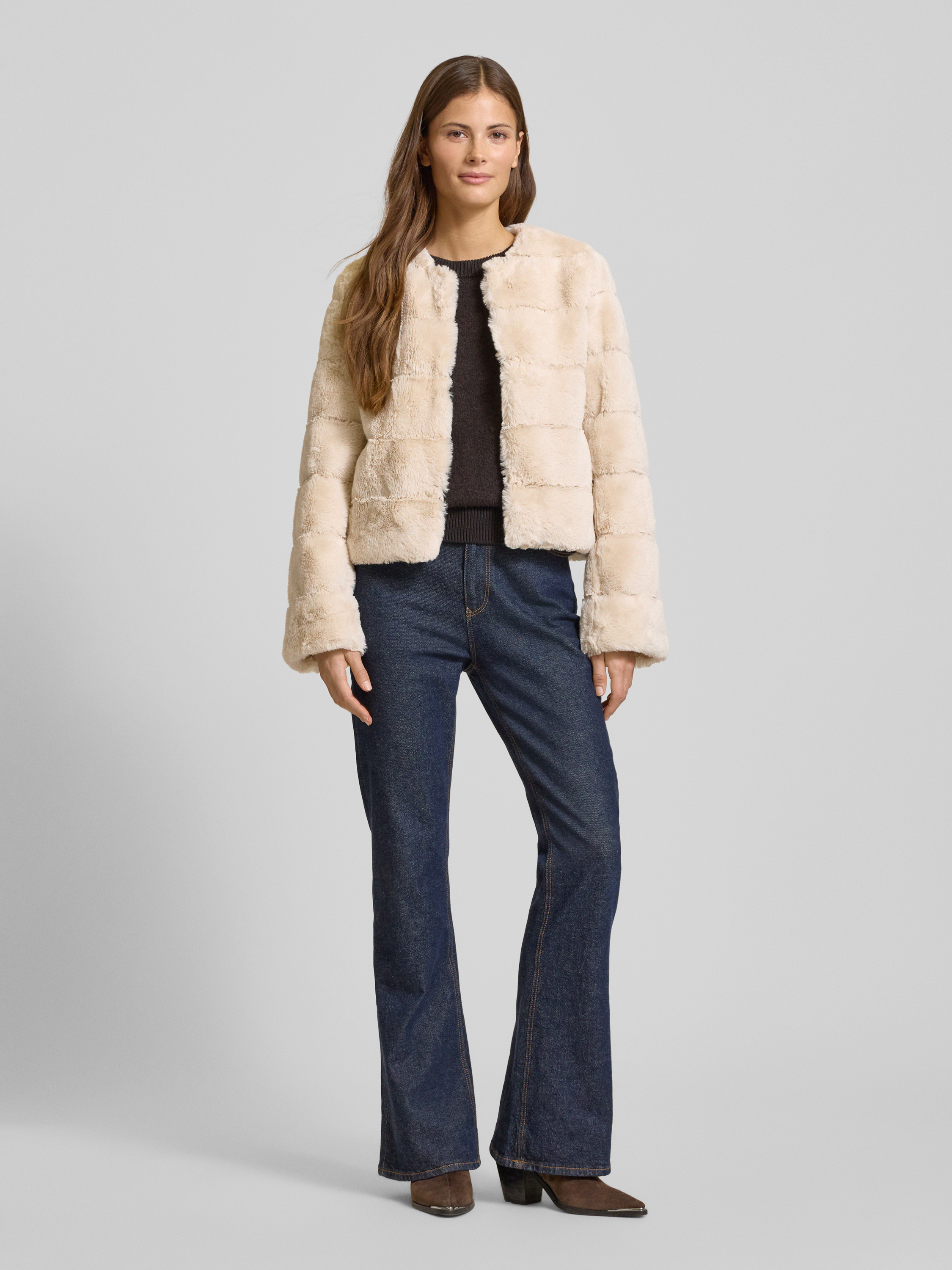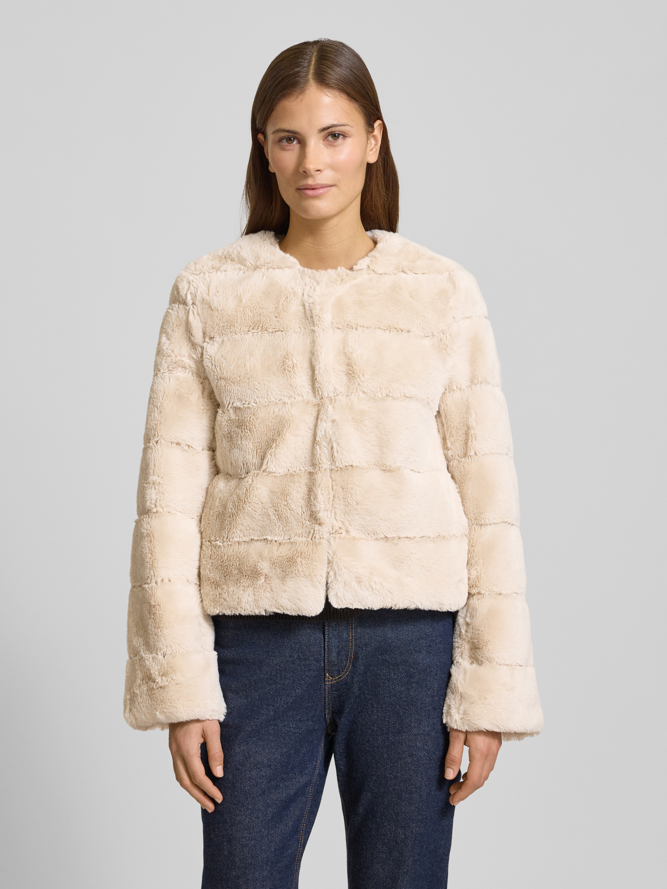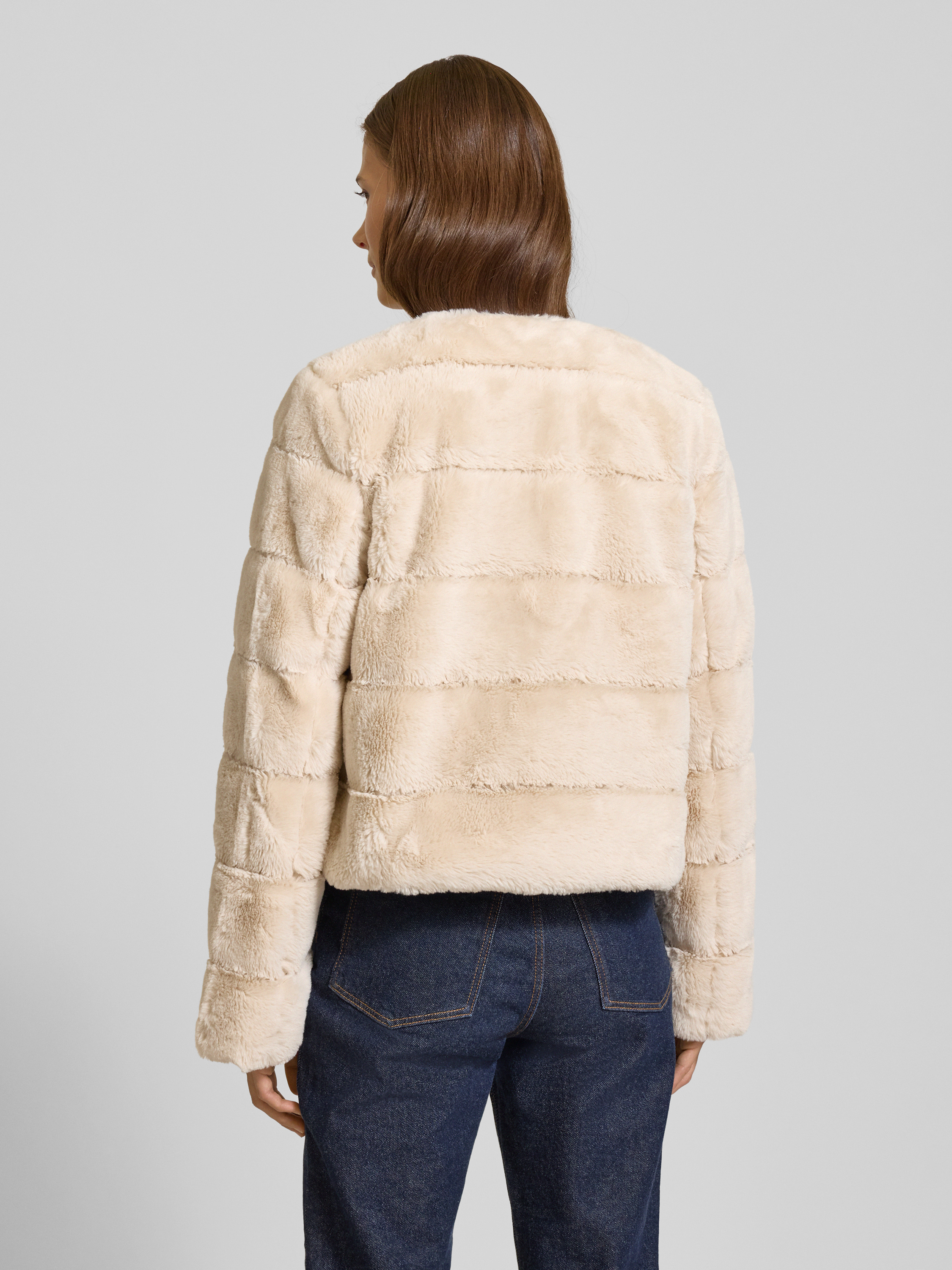 Kurtka ze sztucznego futra ze okrągłym dekoltem - złamany biały