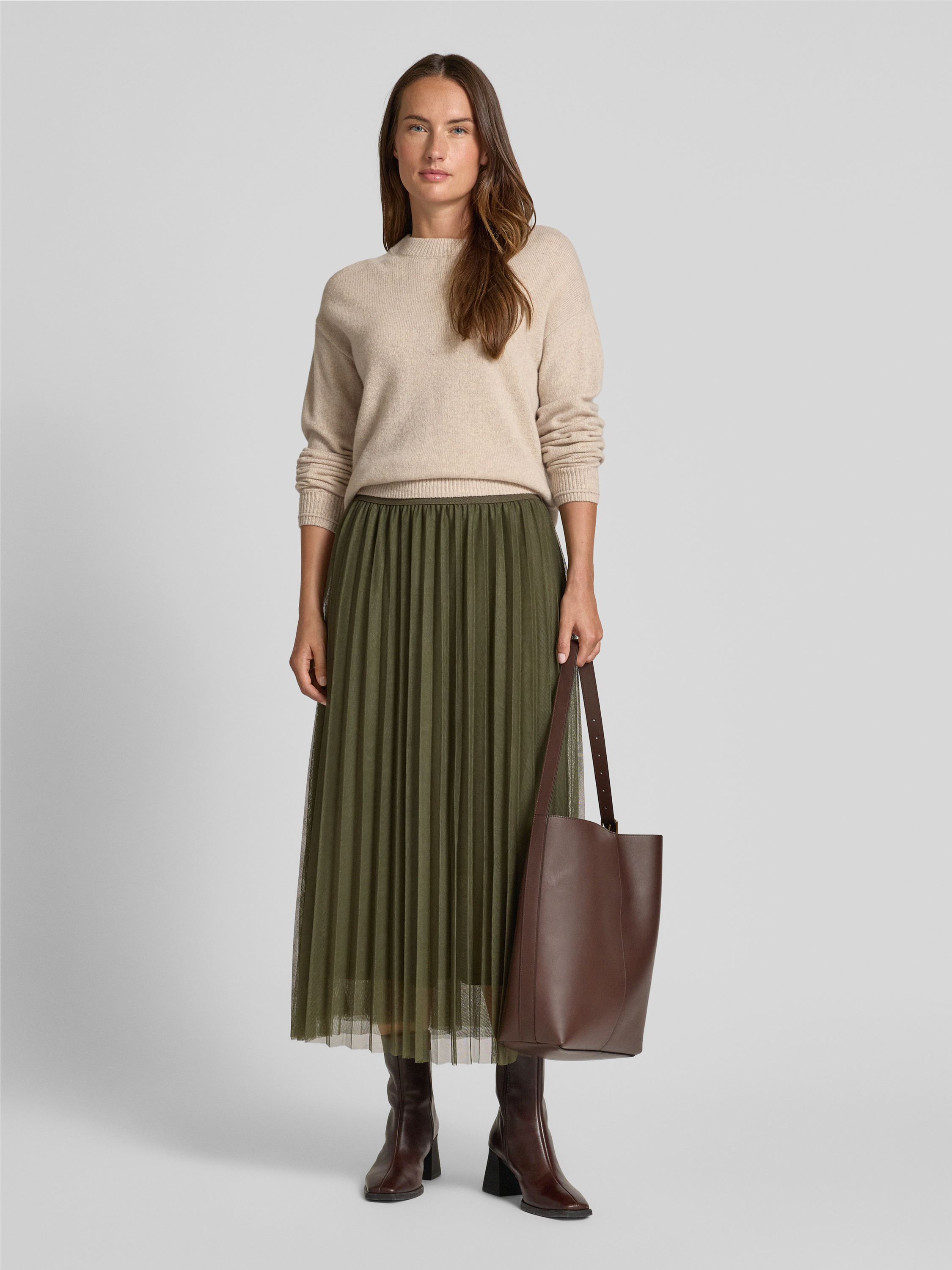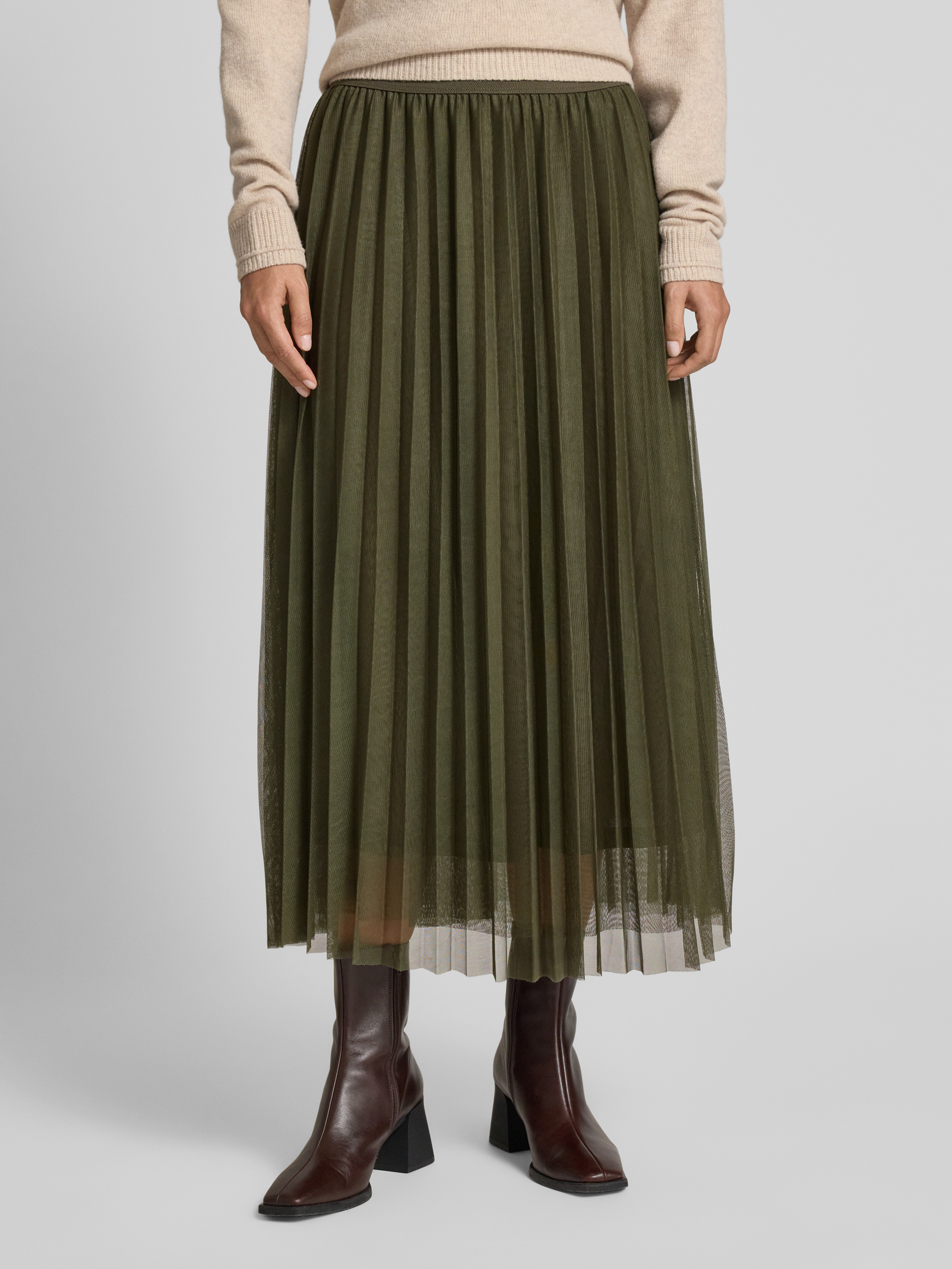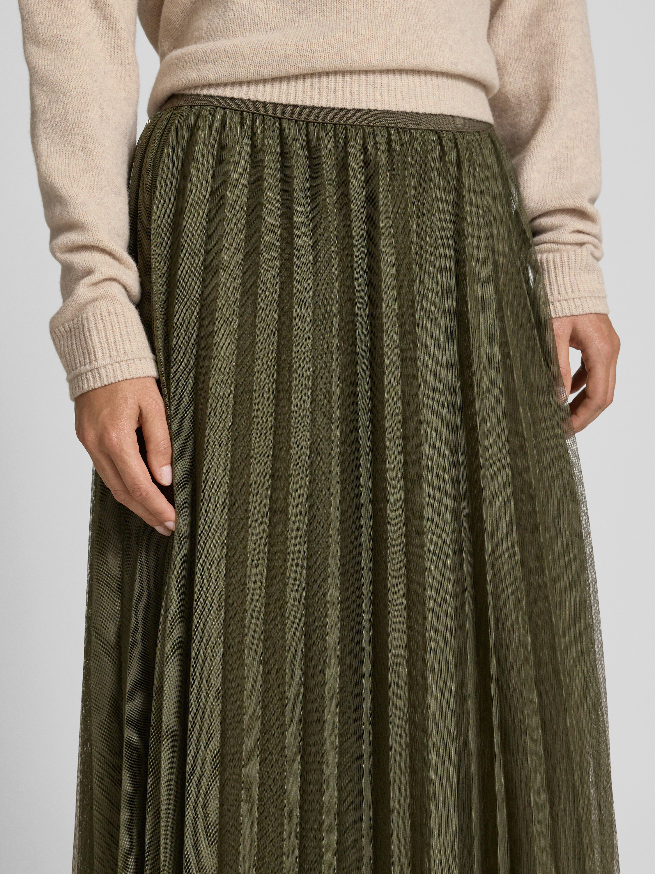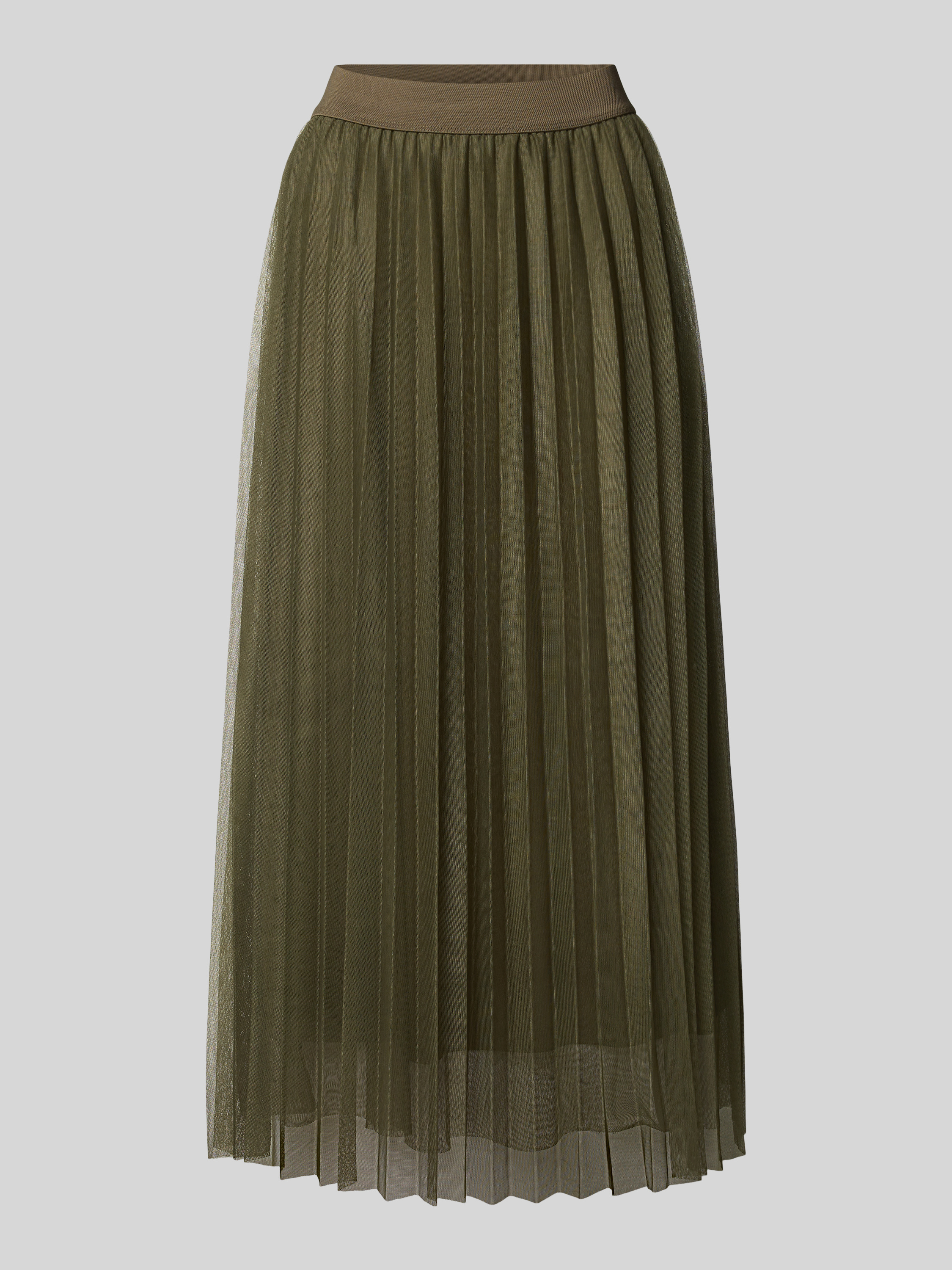 Spódnica midi o kroju regular fit z plisami - oliwkowy