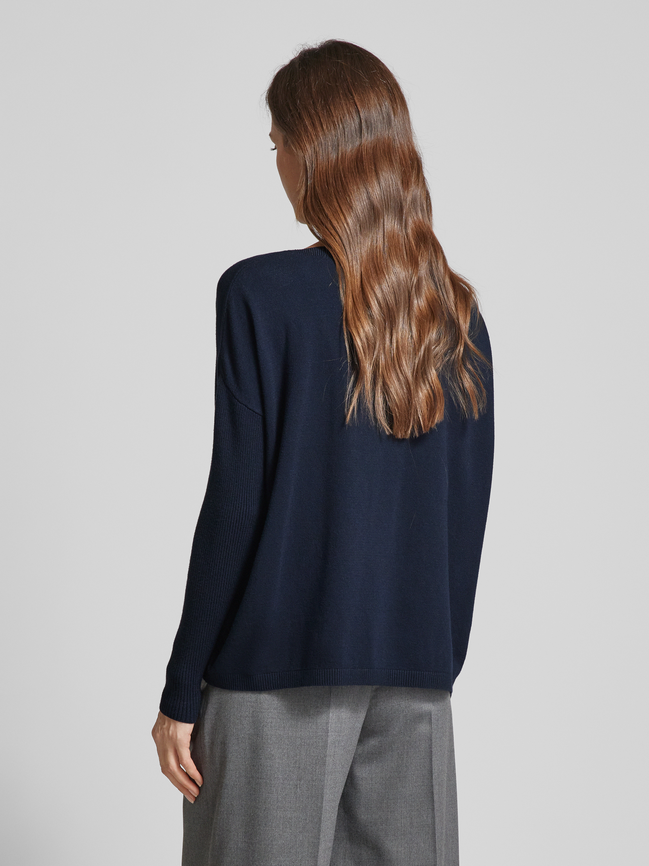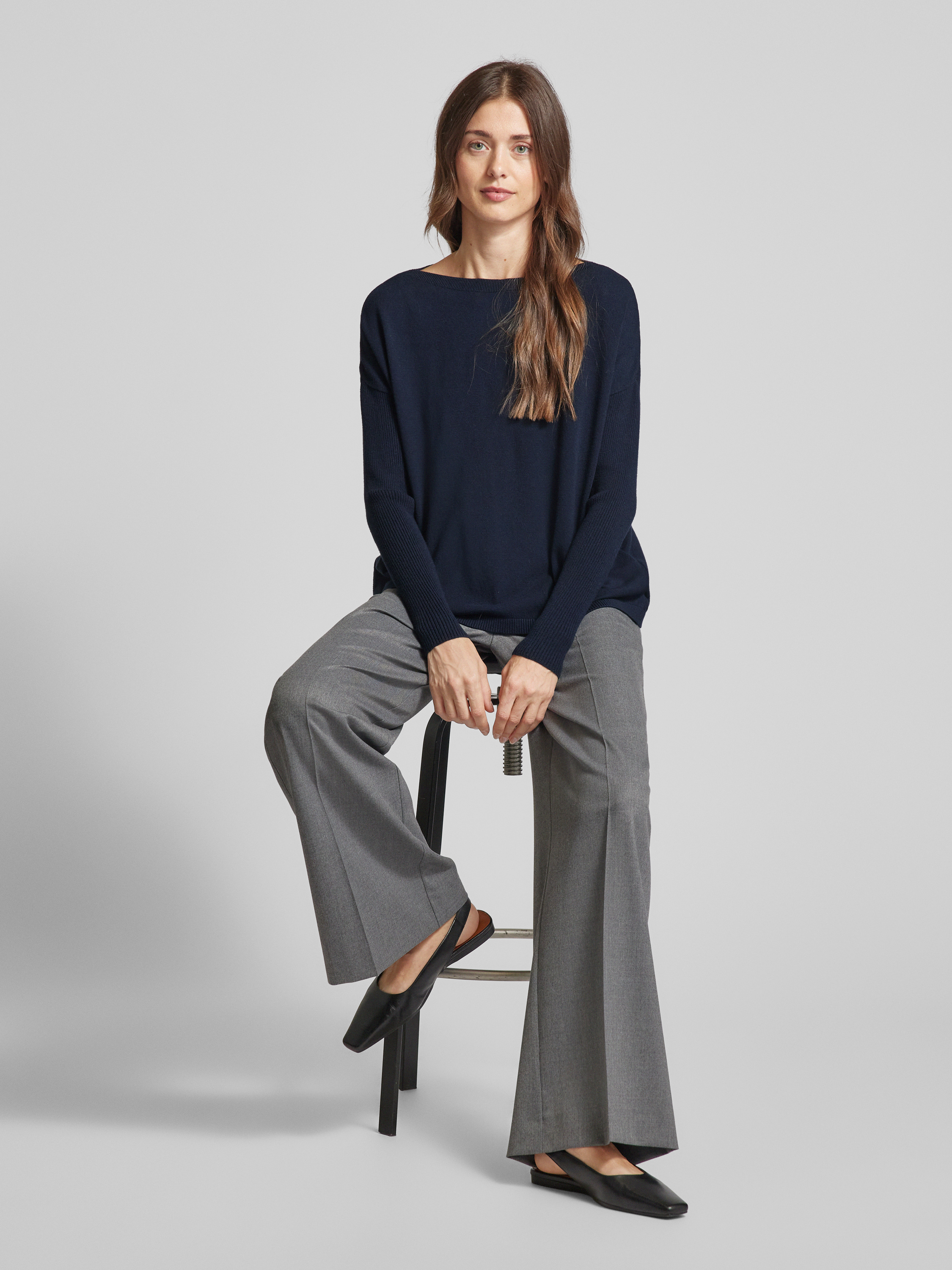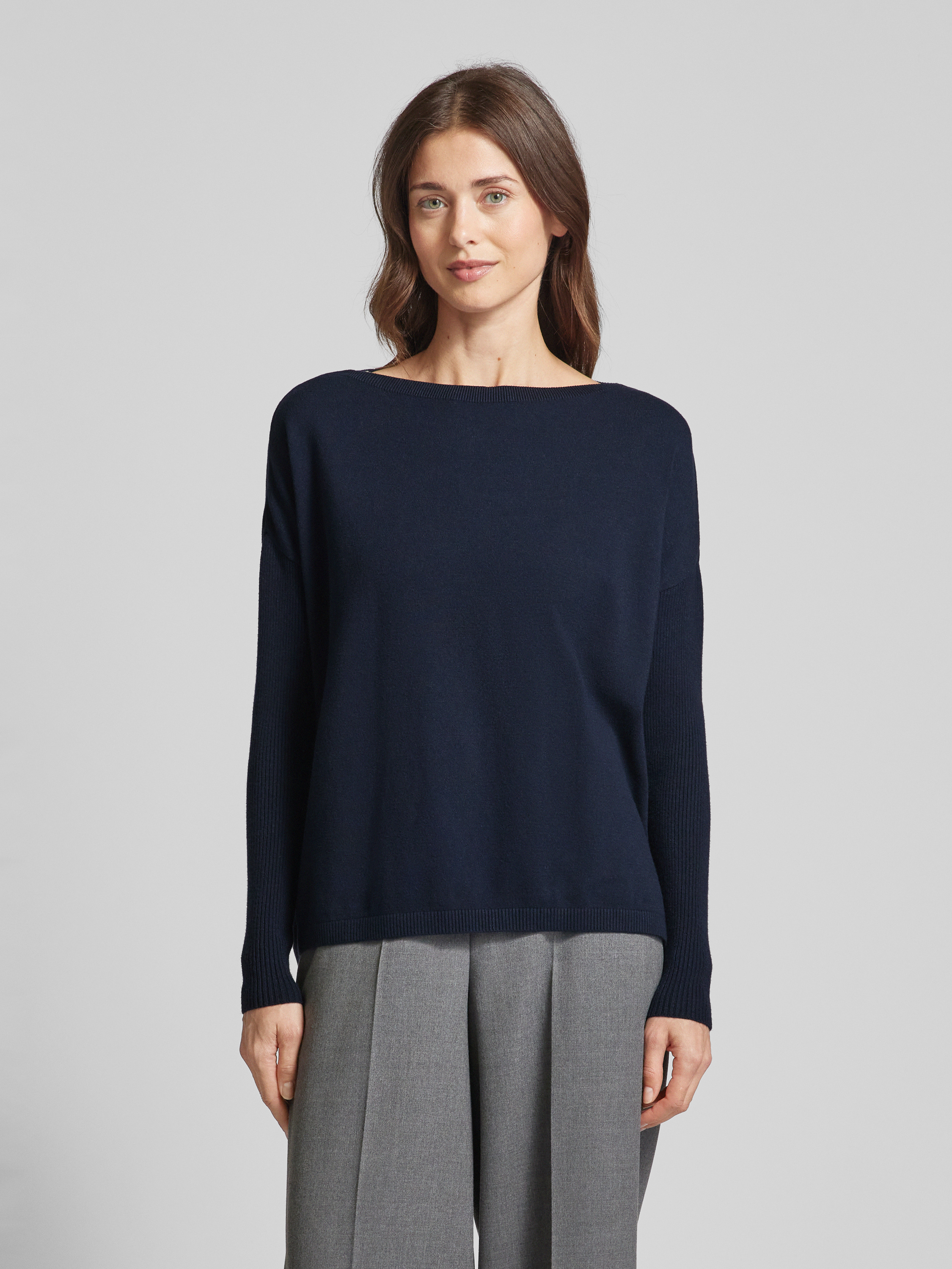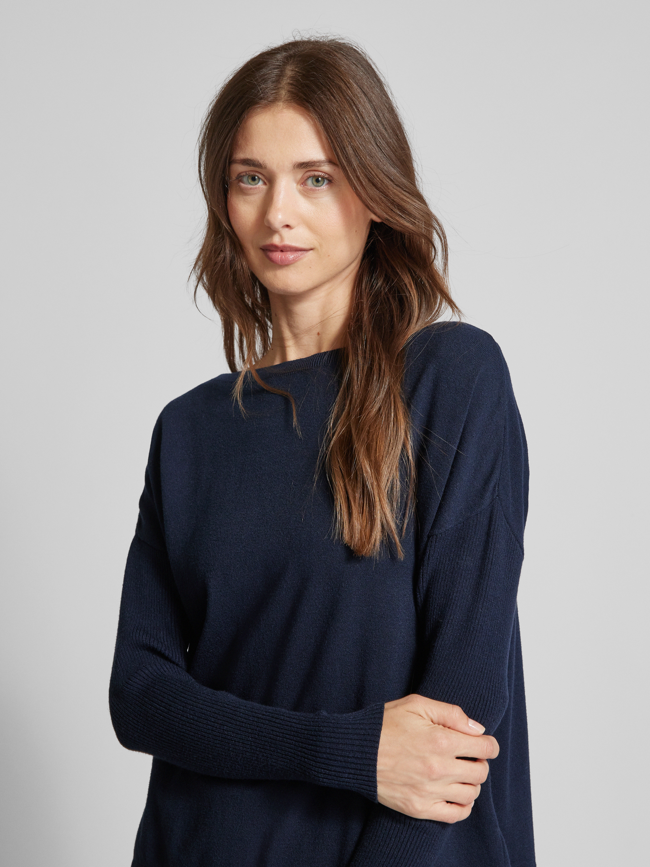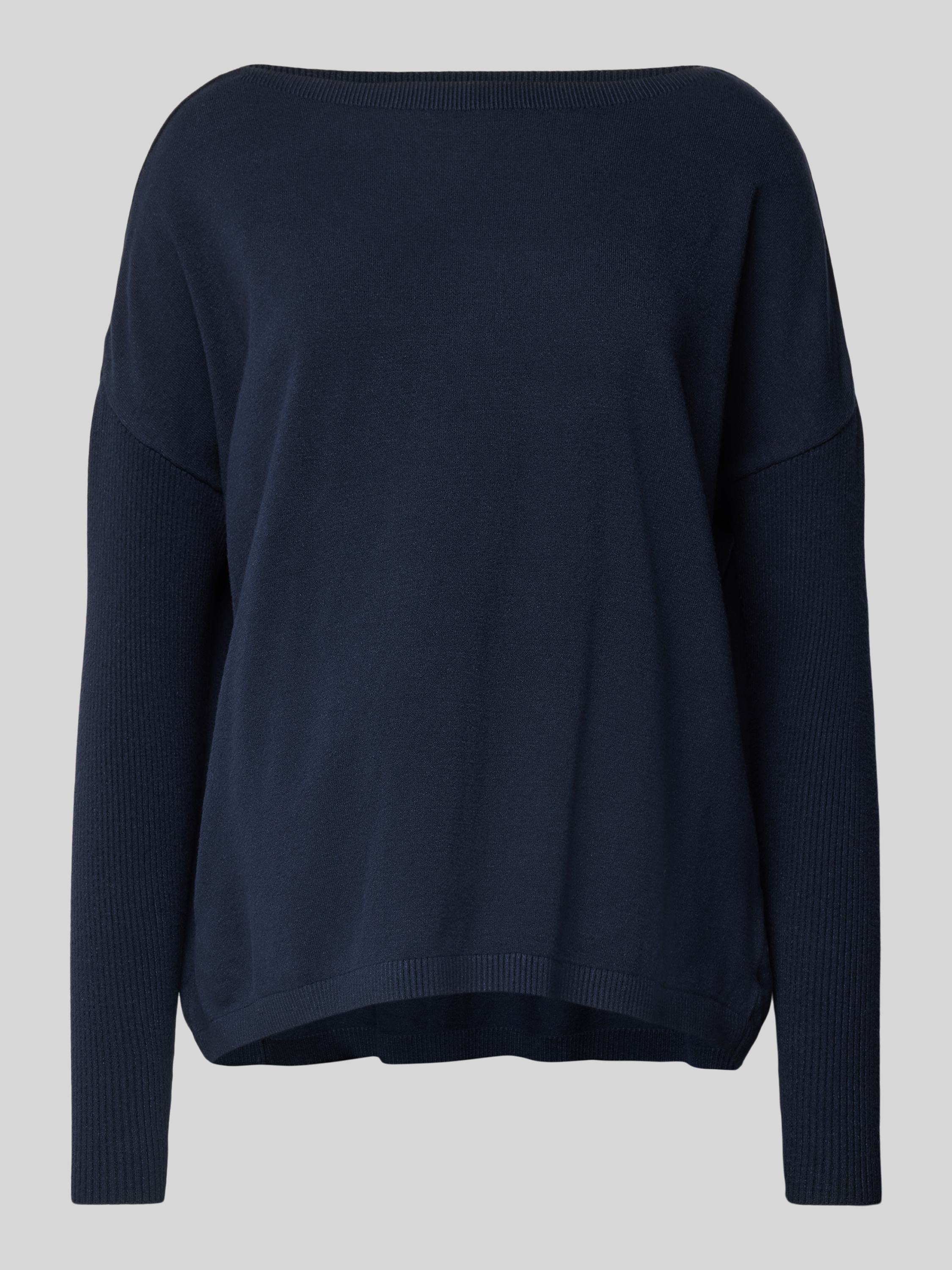 Sweter z dzianiny z dekoltem w łódkę - granatowy melanż