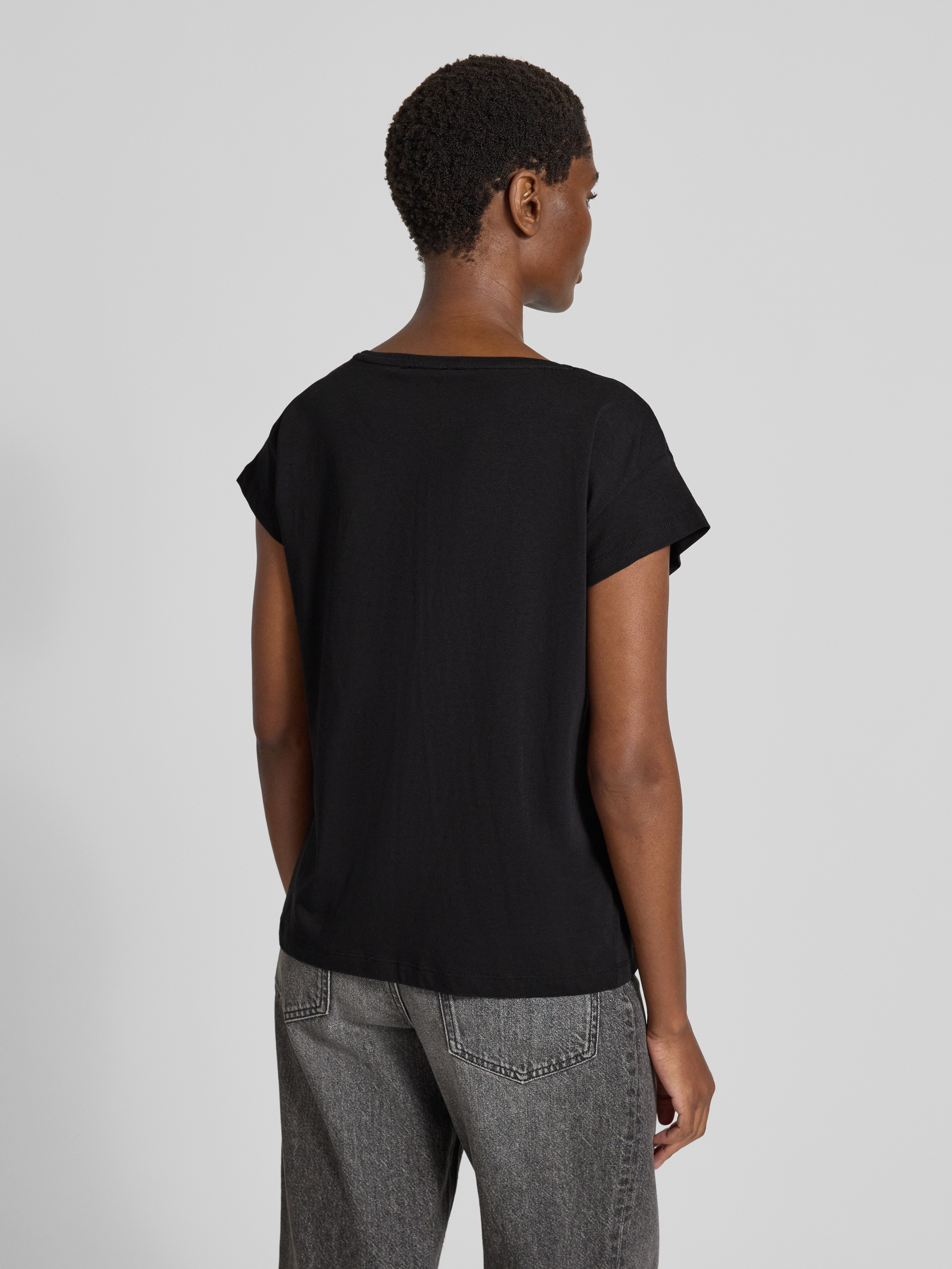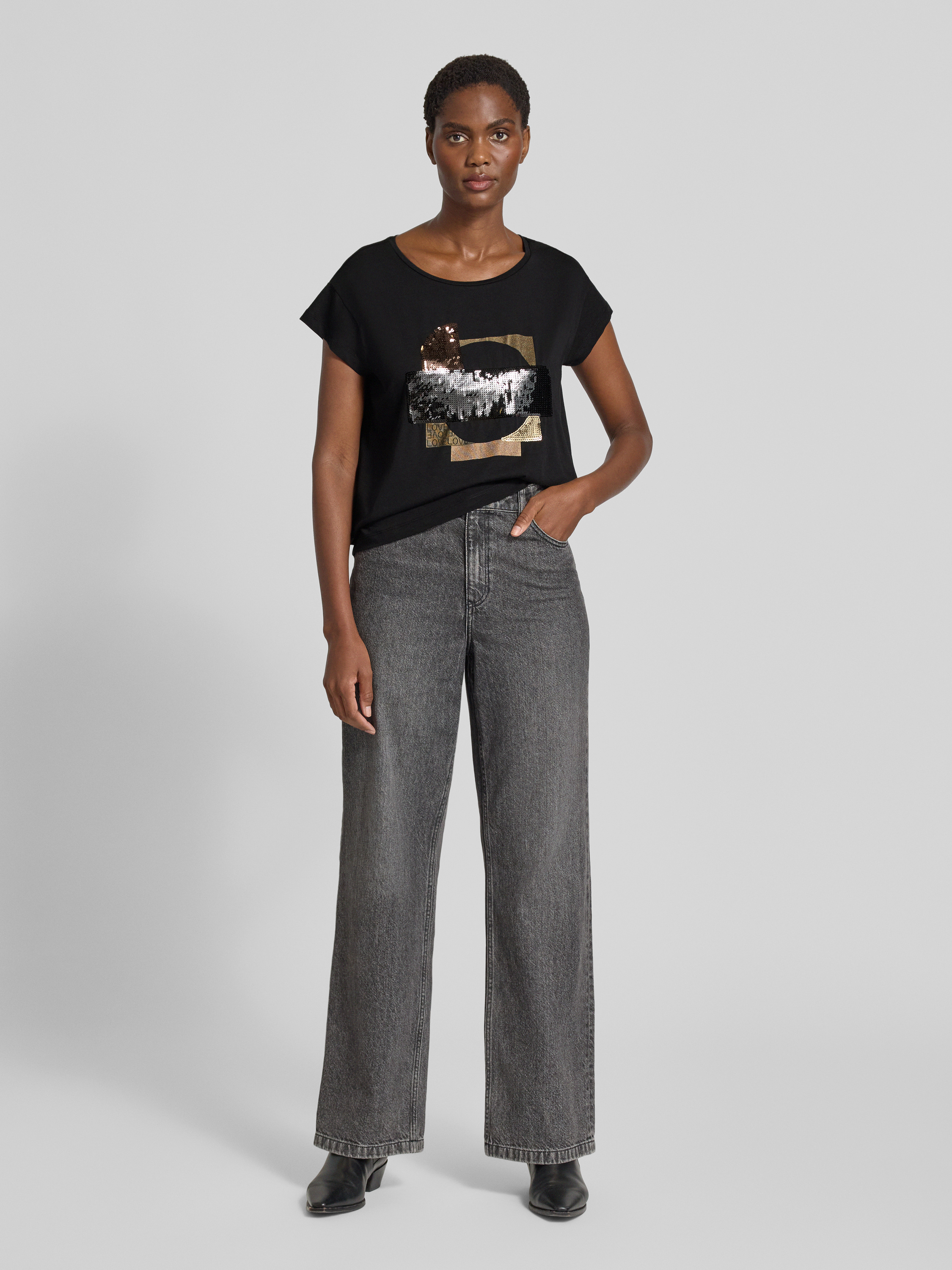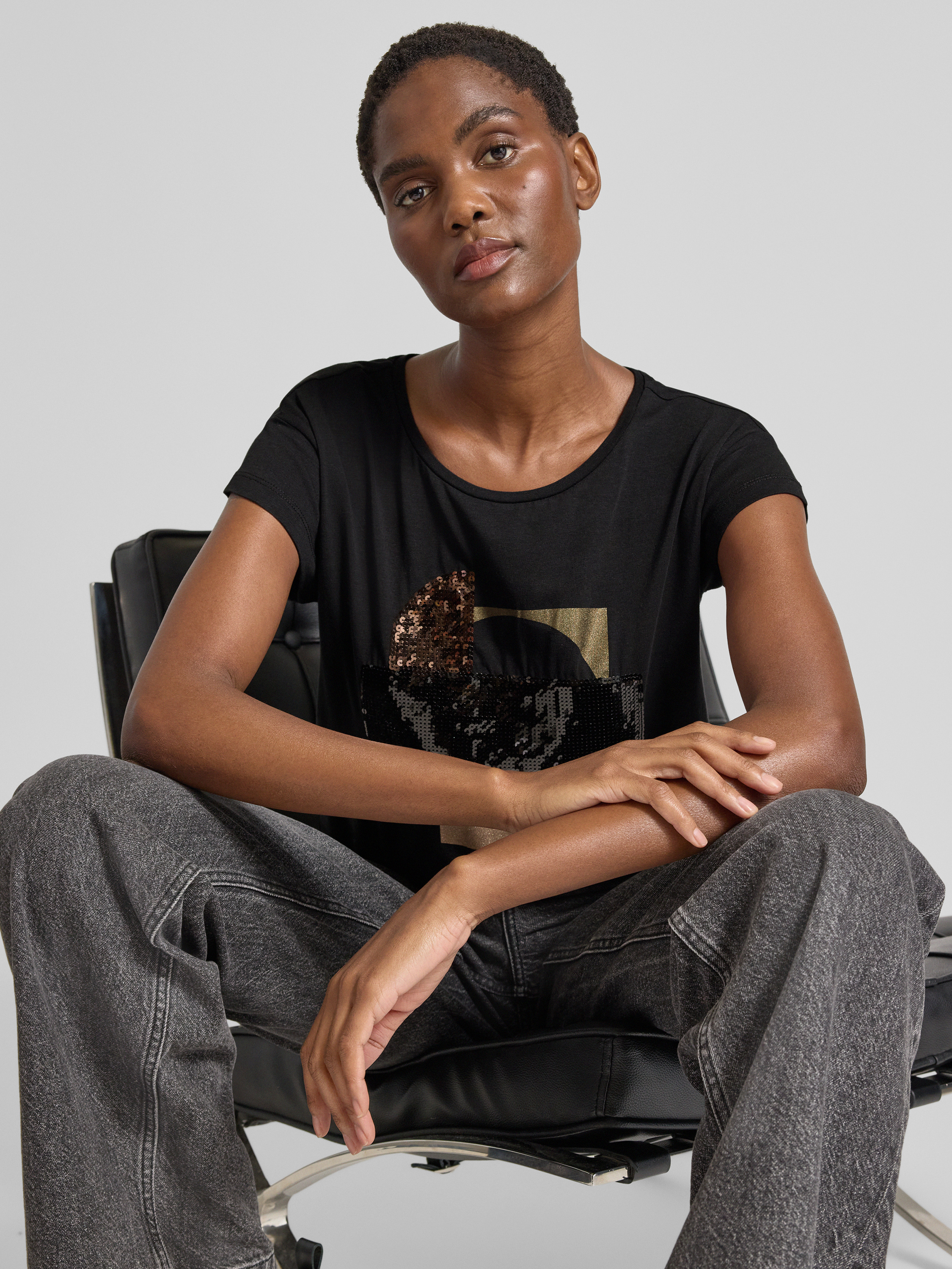 T-shirt z cekinowym obszyciem - czarny