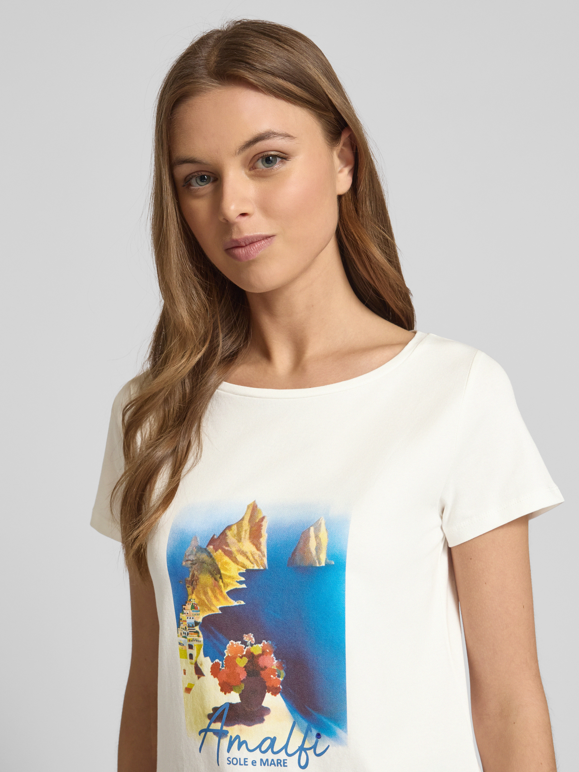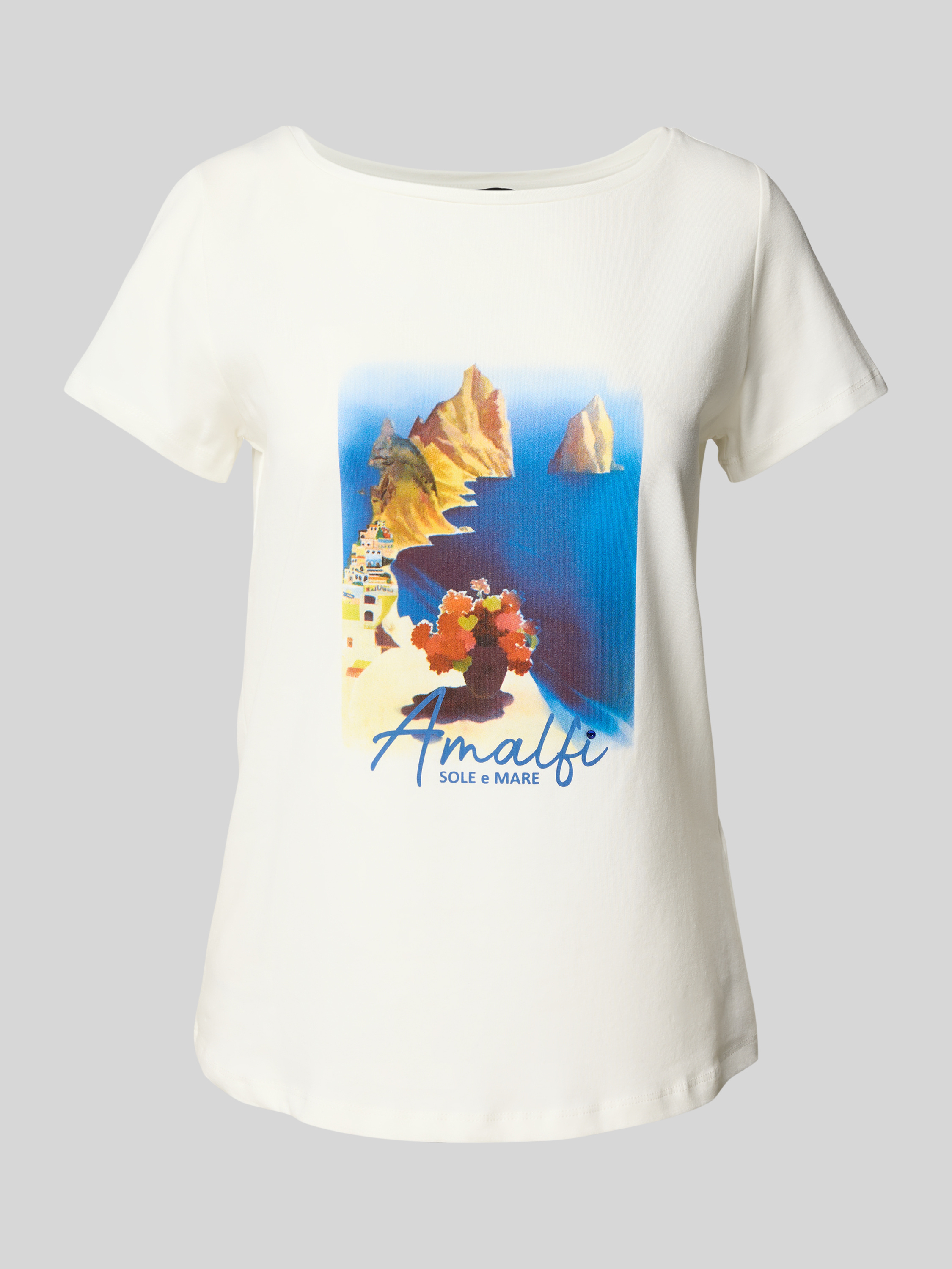T-shirt z prążkowanym okrągłym dekoltem - złamany biały
