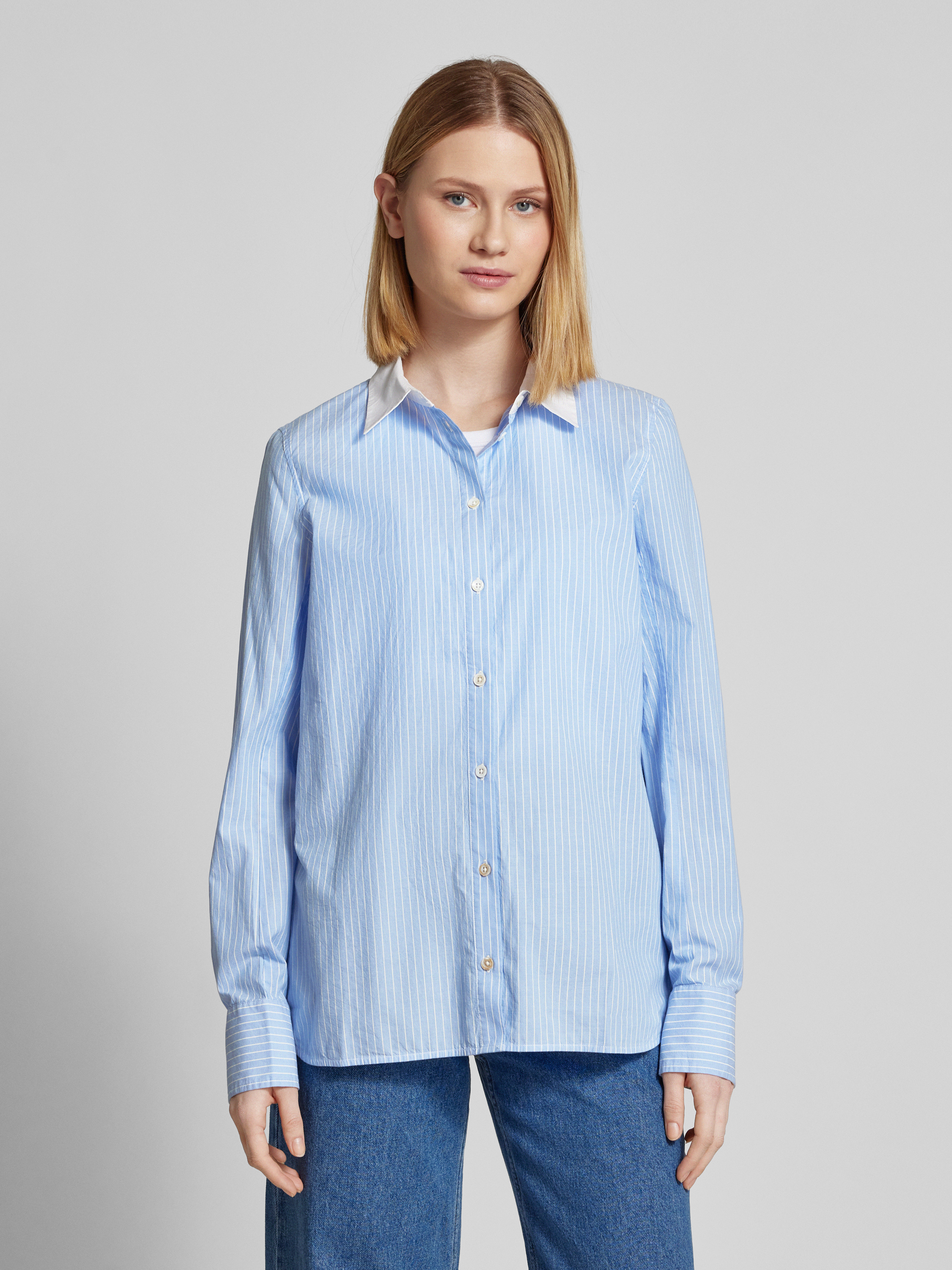 Bluzka koszulowa o kroju regular fit z kołnierzykiem koszulowym model ‘TAYLA’ - oceaniczny