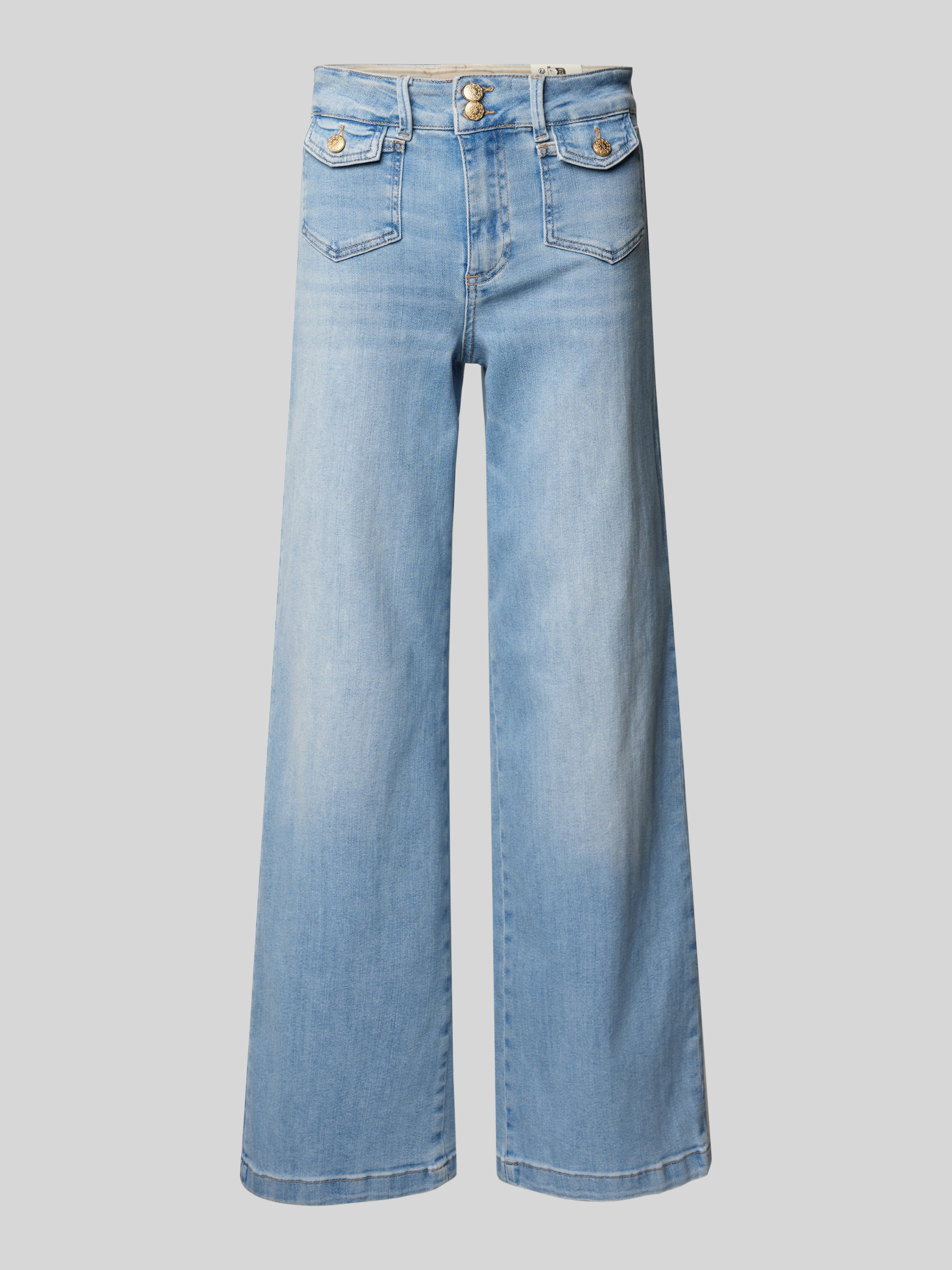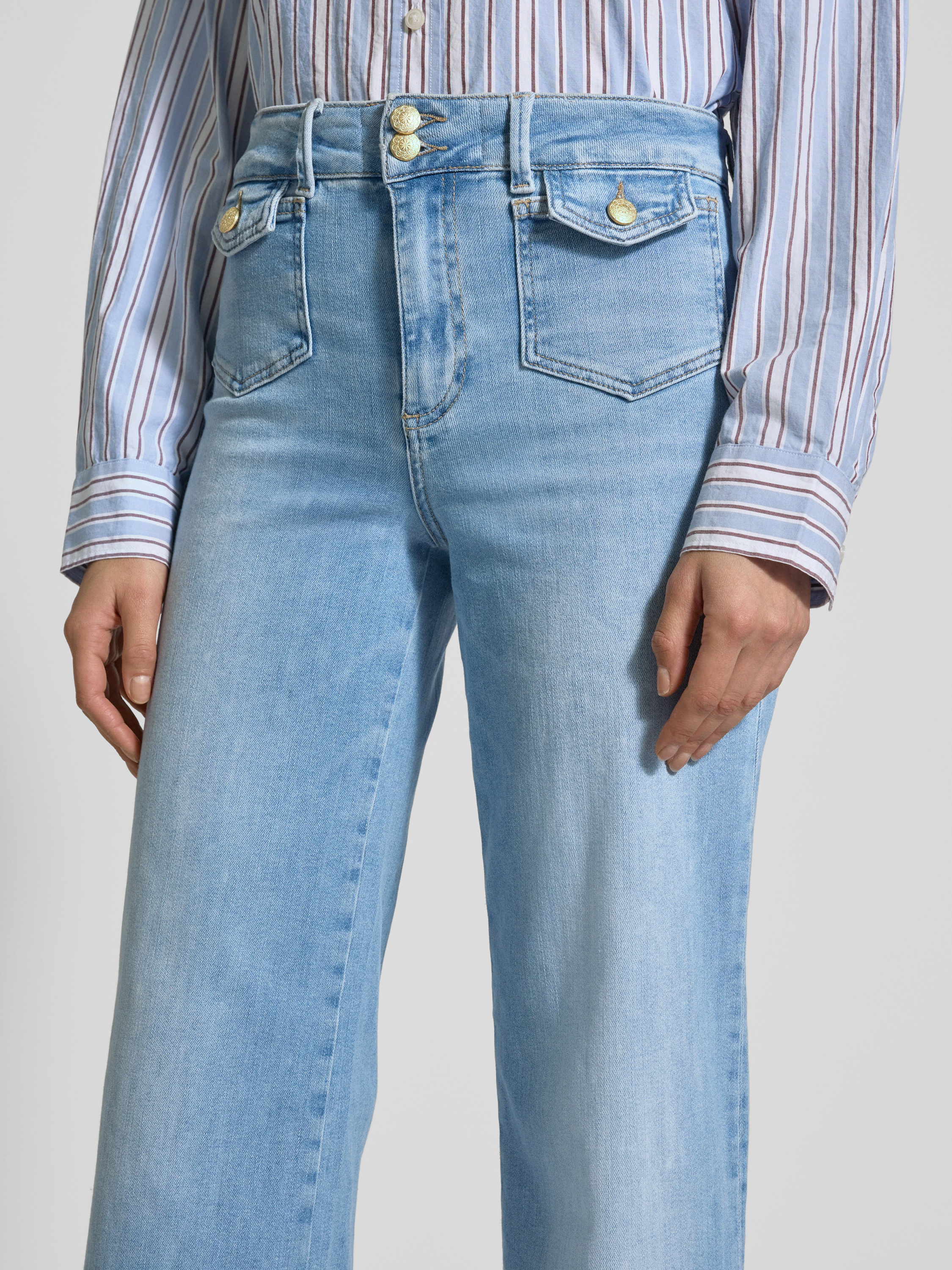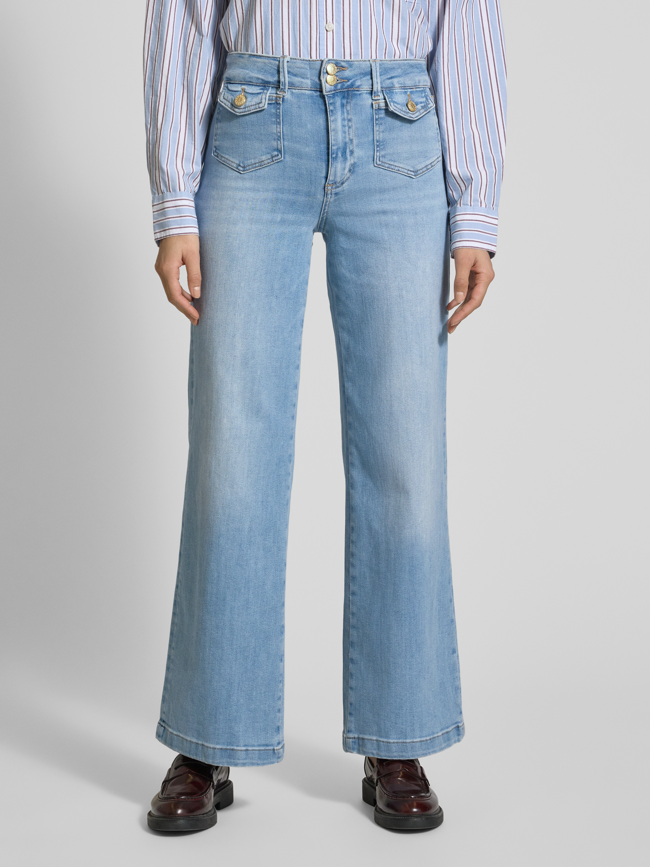 Jeansy rozkloszowane z kieszeniami z patką model ‘COLETTE’ - jasnoniebieski
