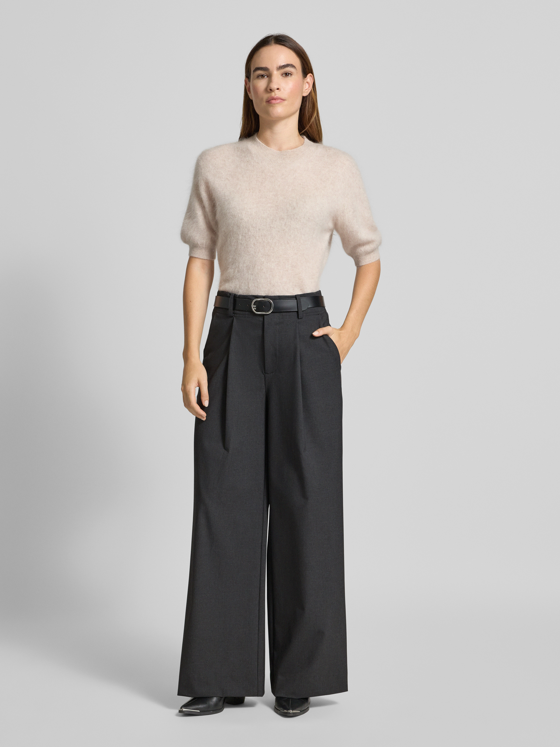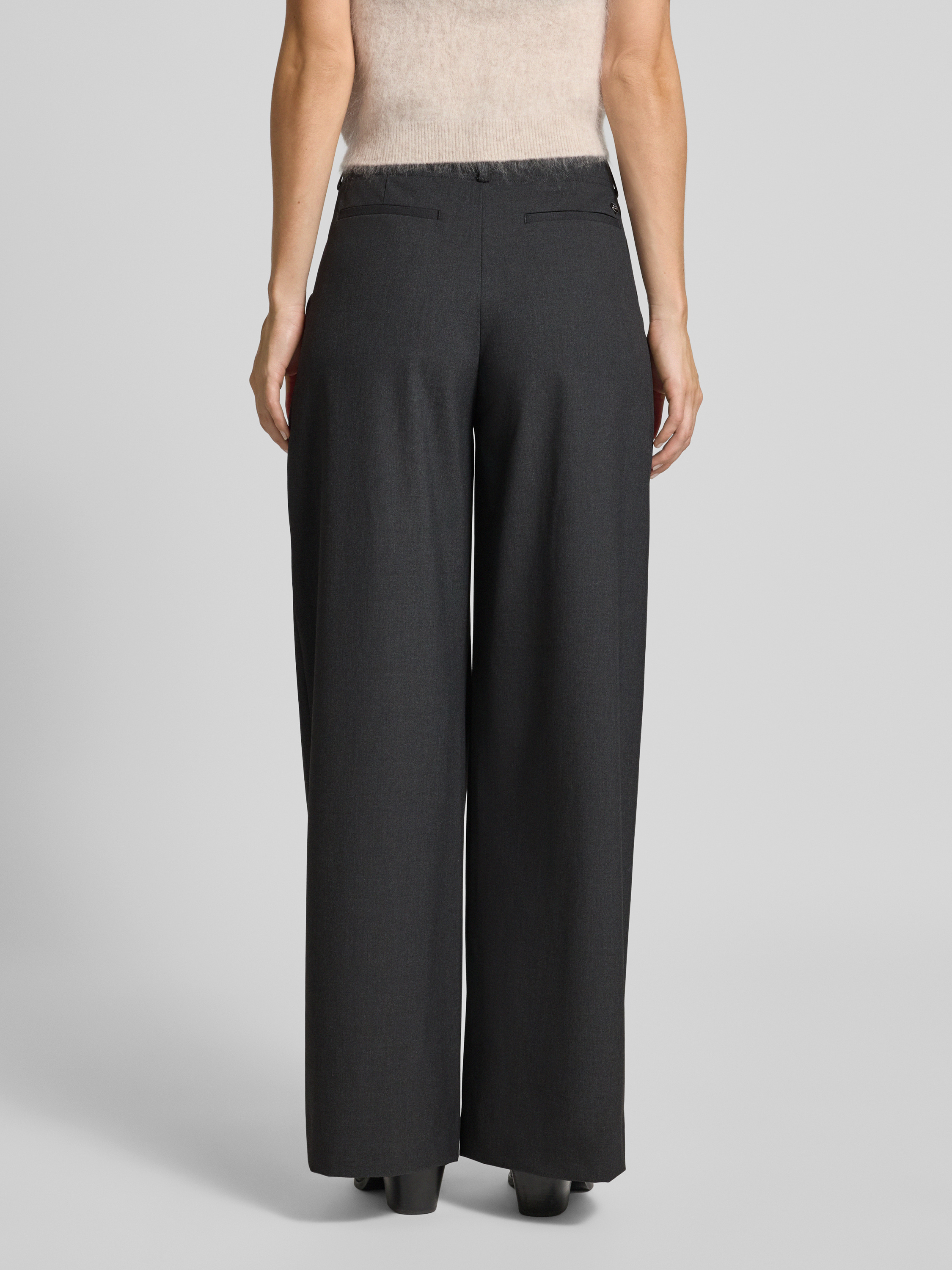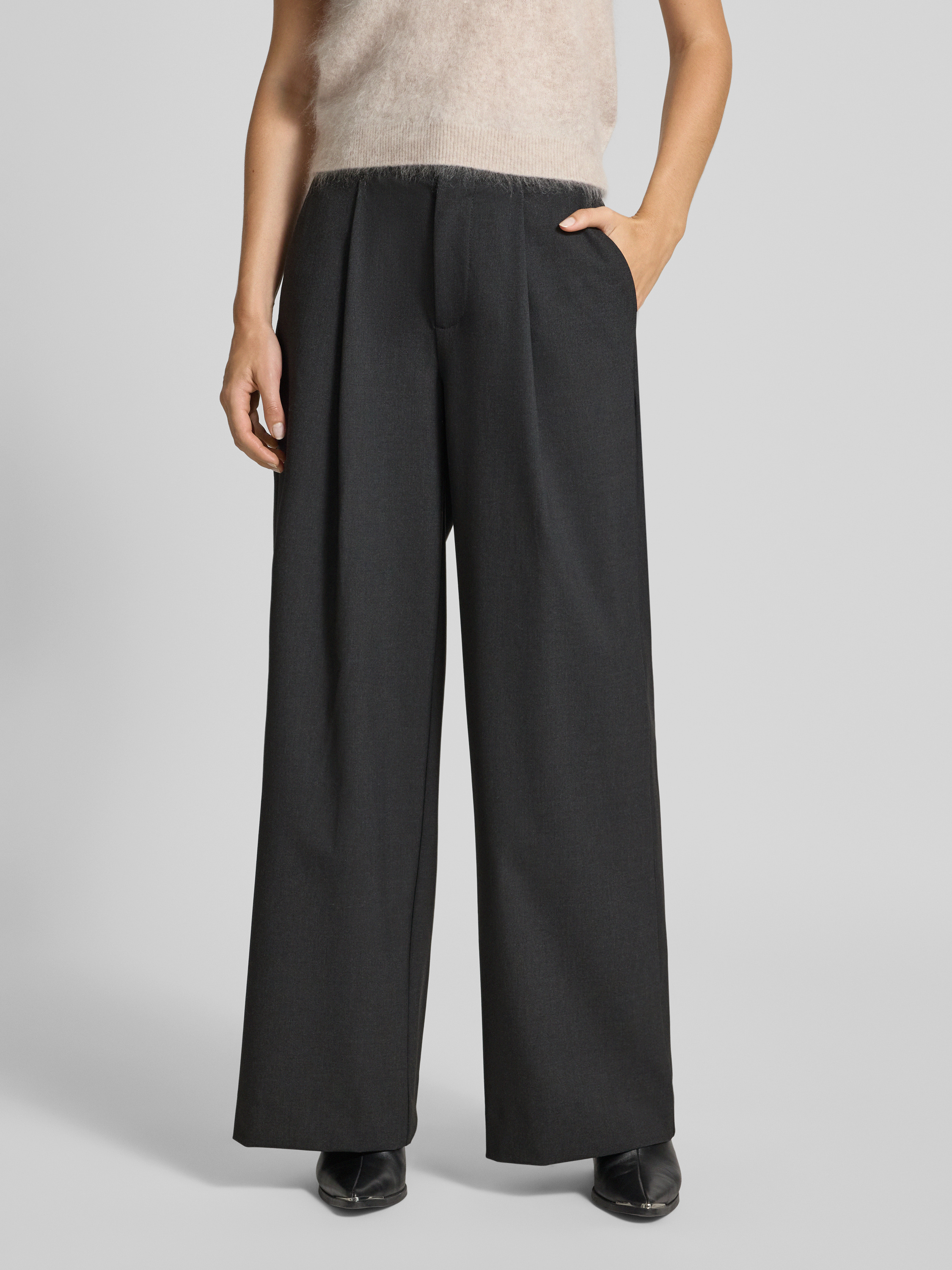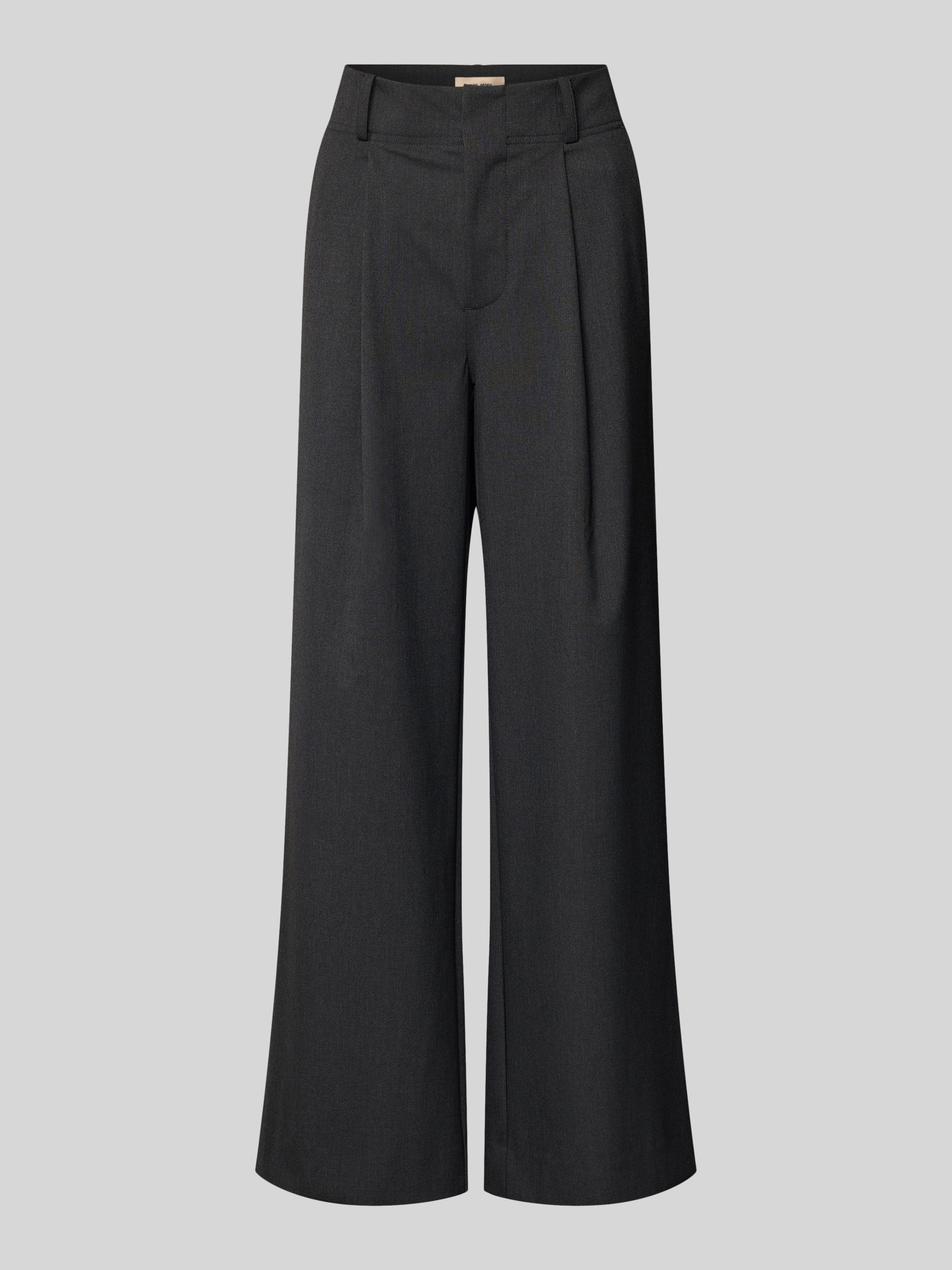 Spodnie materiałowe z szeroką nogawką i zakładkami w pasie model ‘Evine Scarla’ - ciemnoszary