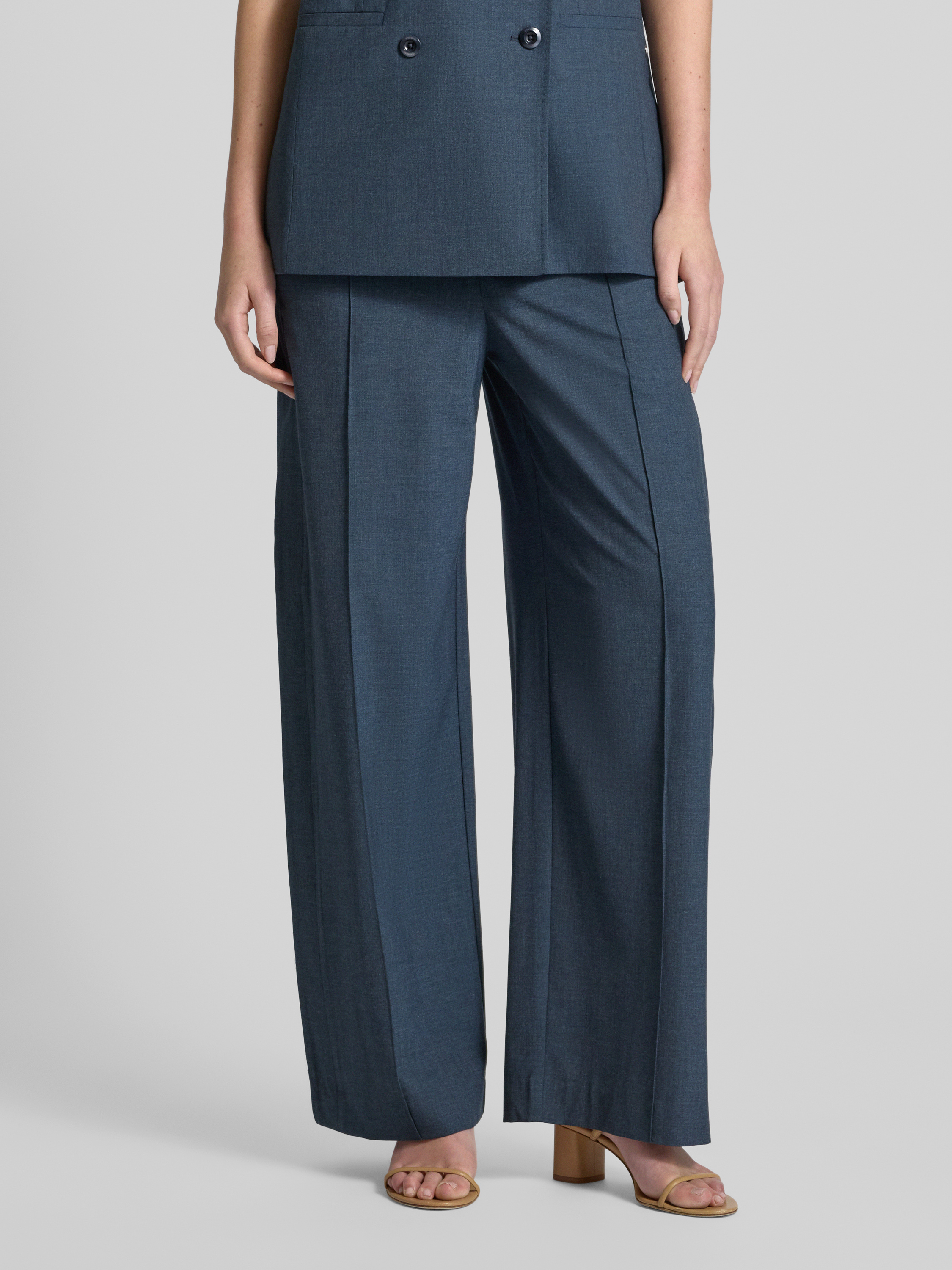 MOS MOSHSpodnie materiałowe z szeroką nogawką z przeszytym kantem model ‘Nila Roy’ - szaroniebieski