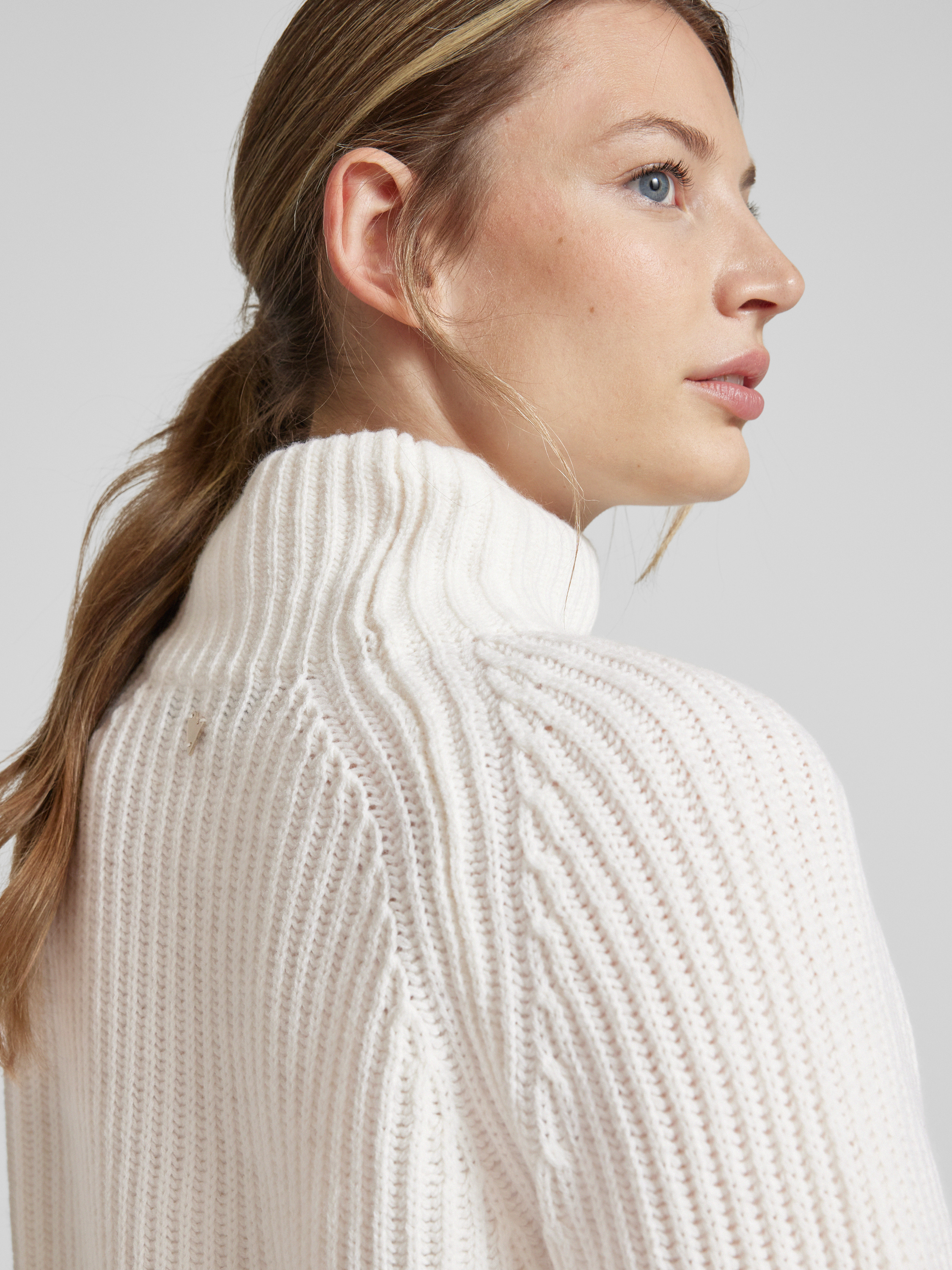 Sweter z dzianiny z golfem model ‘Thyra’ - écru