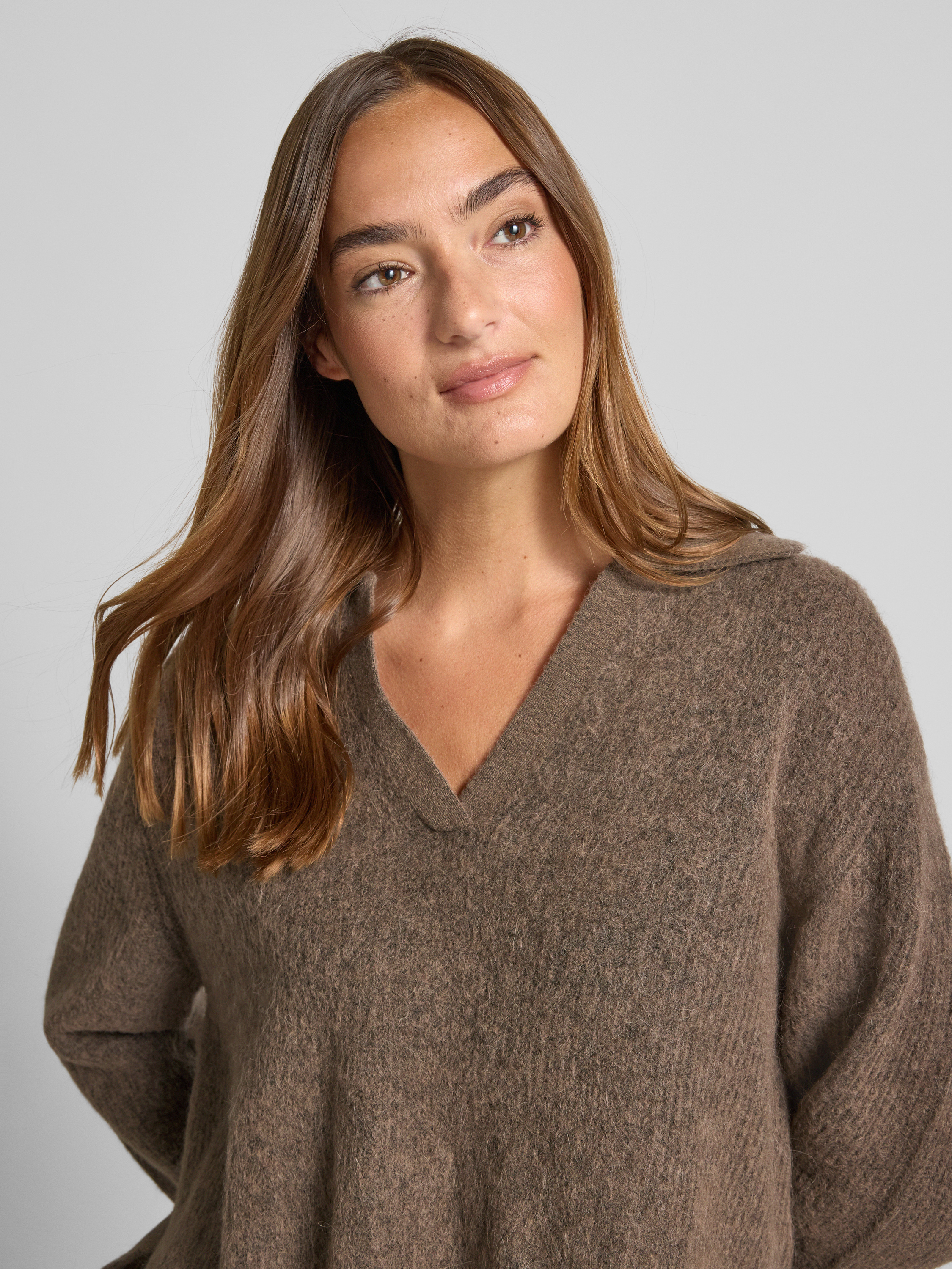 • MOS MOSH Sweter z dzianiny z mieszanki wełny z kołnierzykiem polo model ‘Thora Aidy’ Szarobrązowy