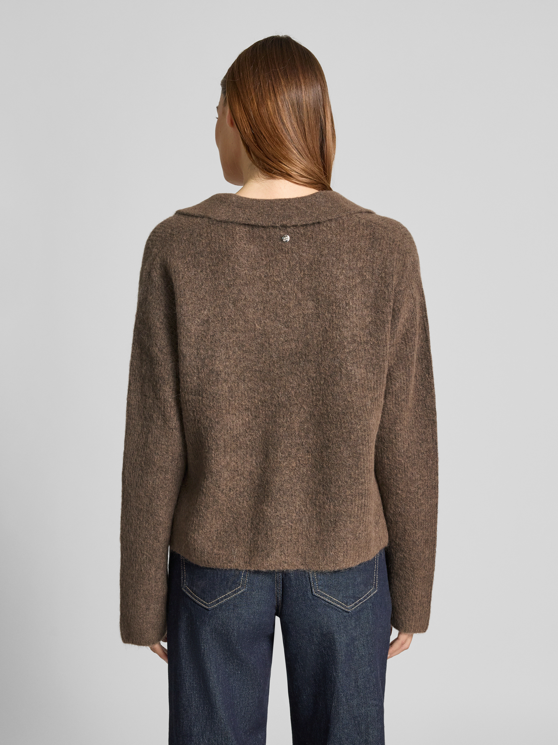 MOS MOSHSweter z dzianiny z mieszanki wełny z kołnierzykiem polo model ‘Thora Aidy’ - szarobrązowy