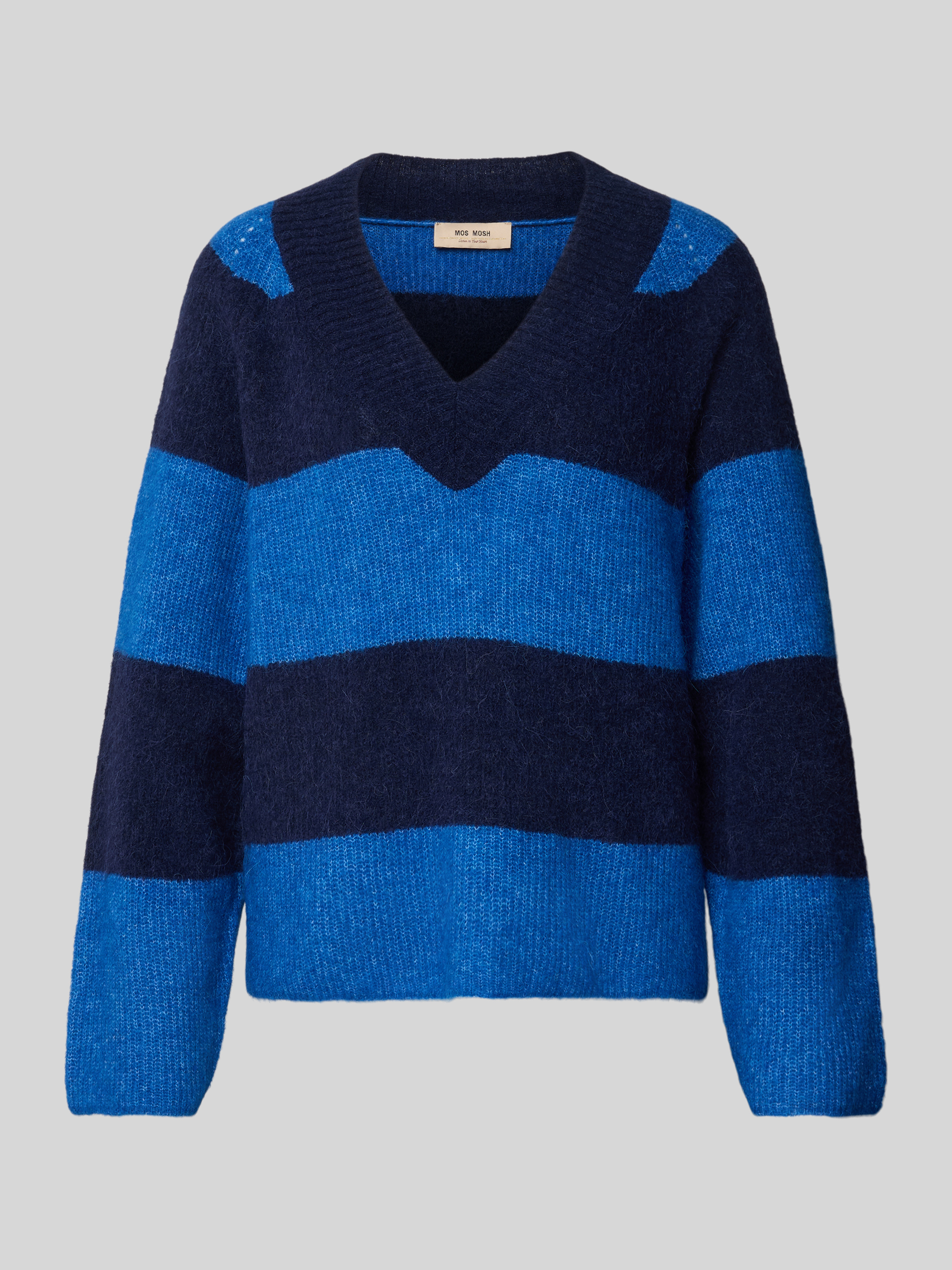 MOS MOSHSweter z dzianiny z mieszanki wełny ze wzorem w paski model ‘Taci’ - królewski niebieski
