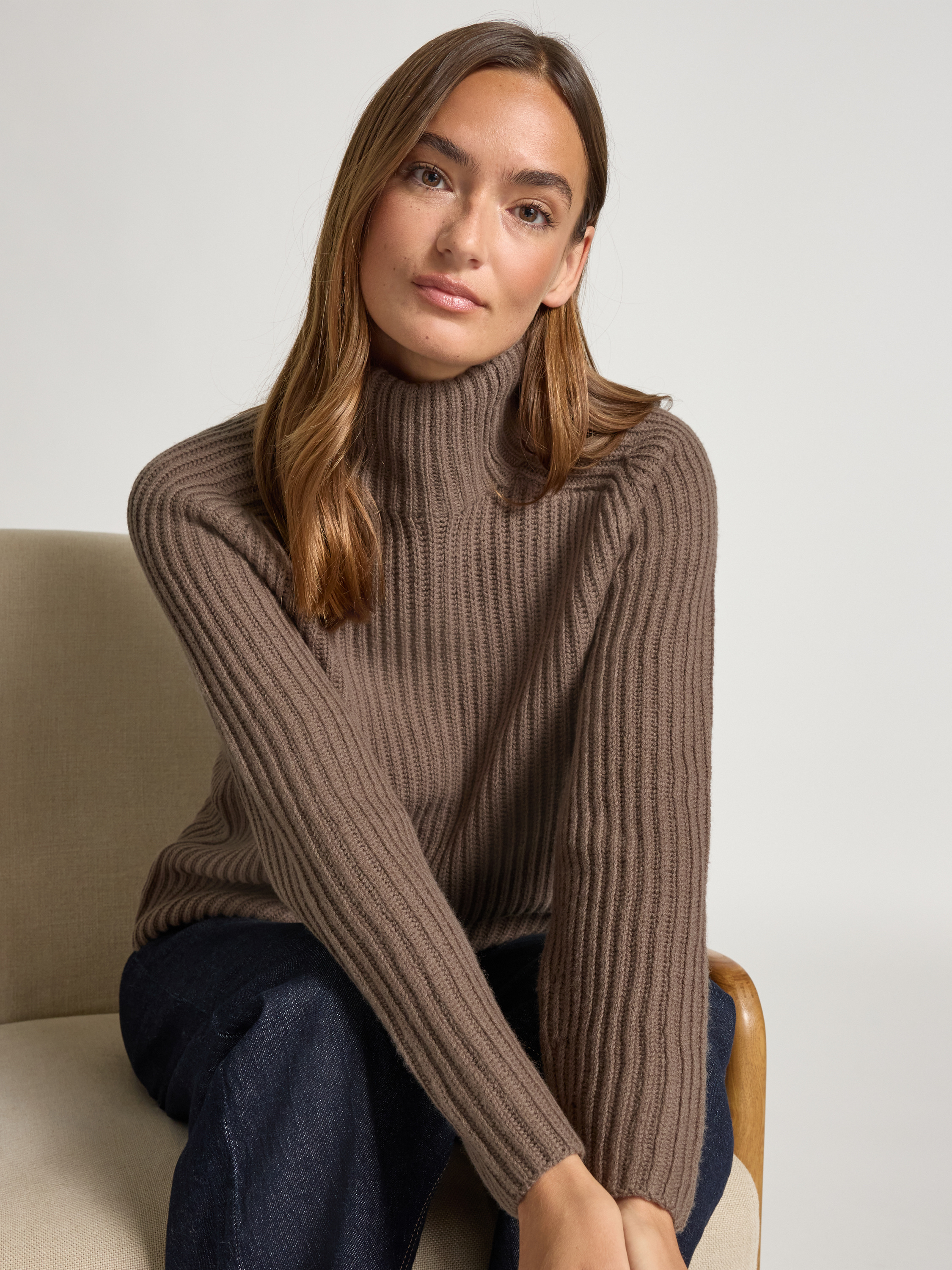 MOS MOSHSweter z dzianiny ze stójką model ‘Thyra’ - szarobrązowy