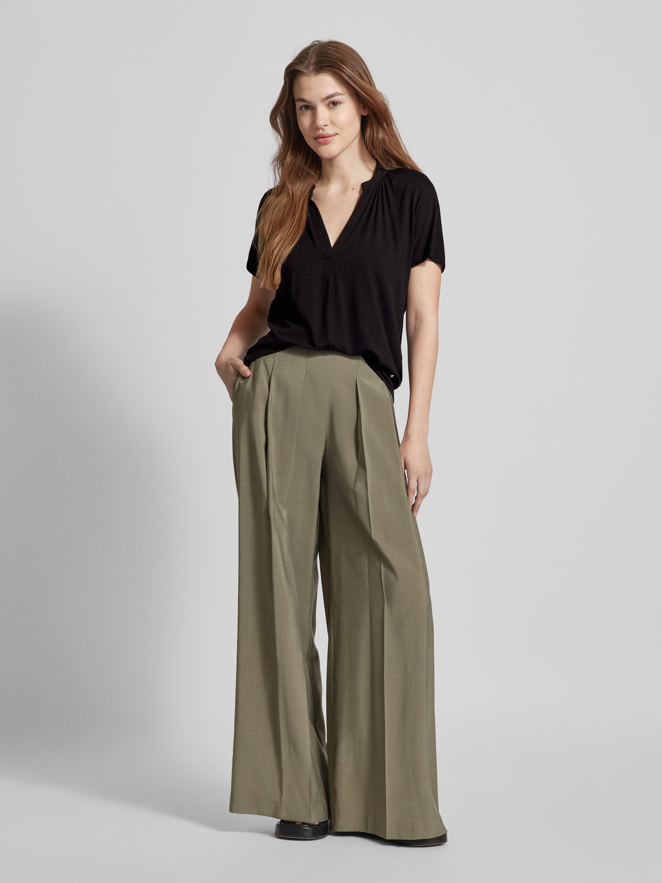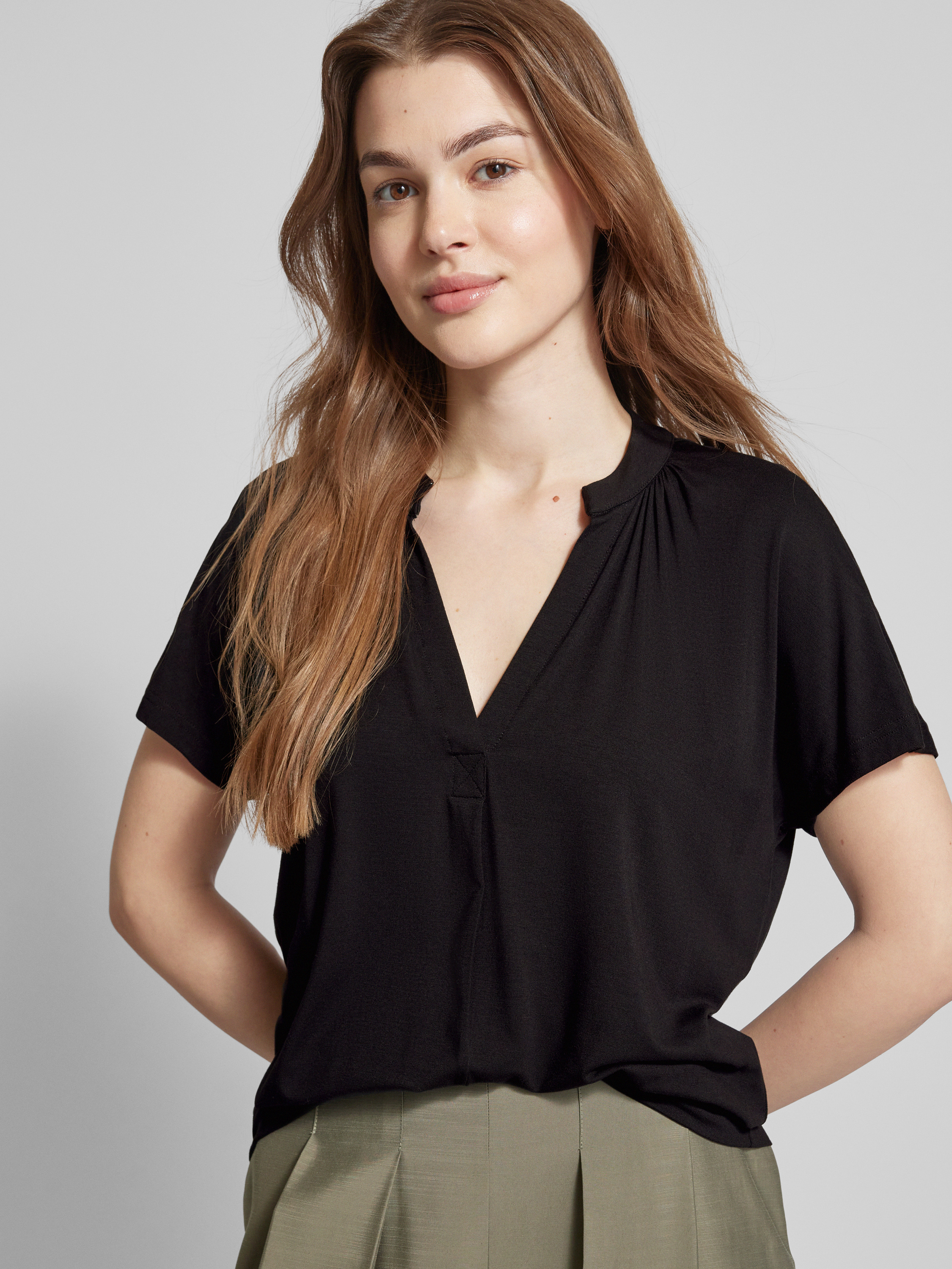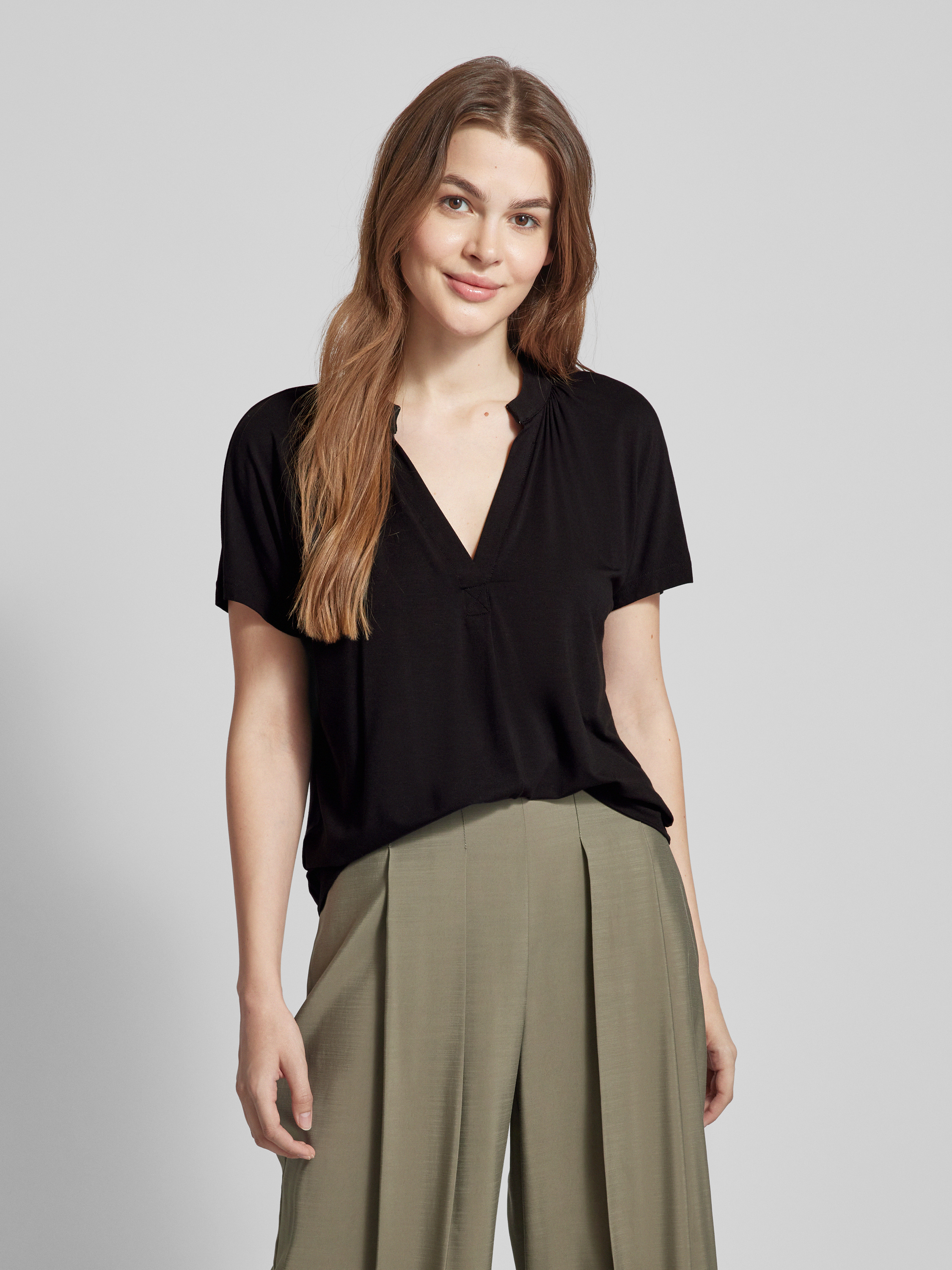 T-shirt z dekoltem w serek model ‘Shira’ -