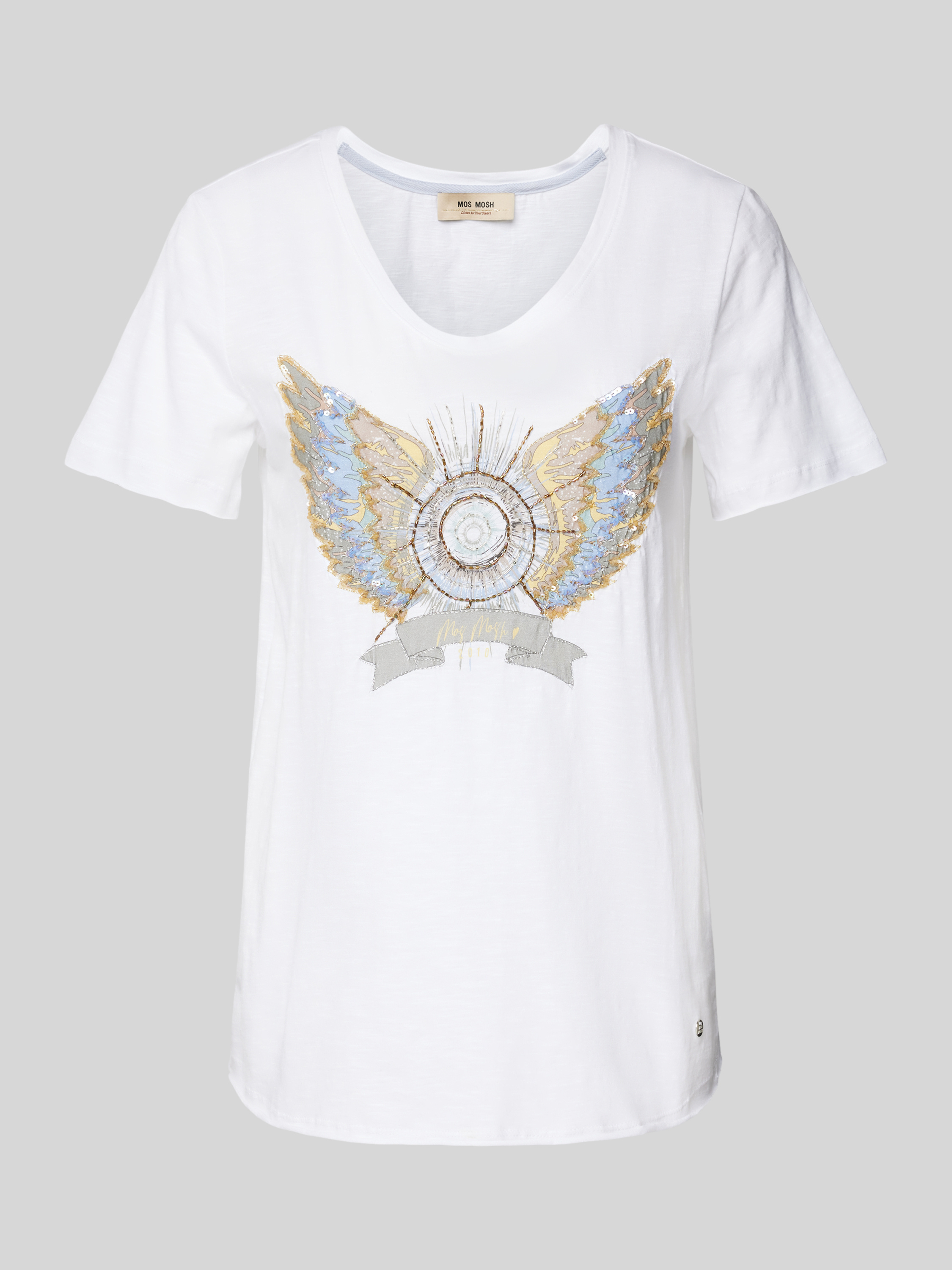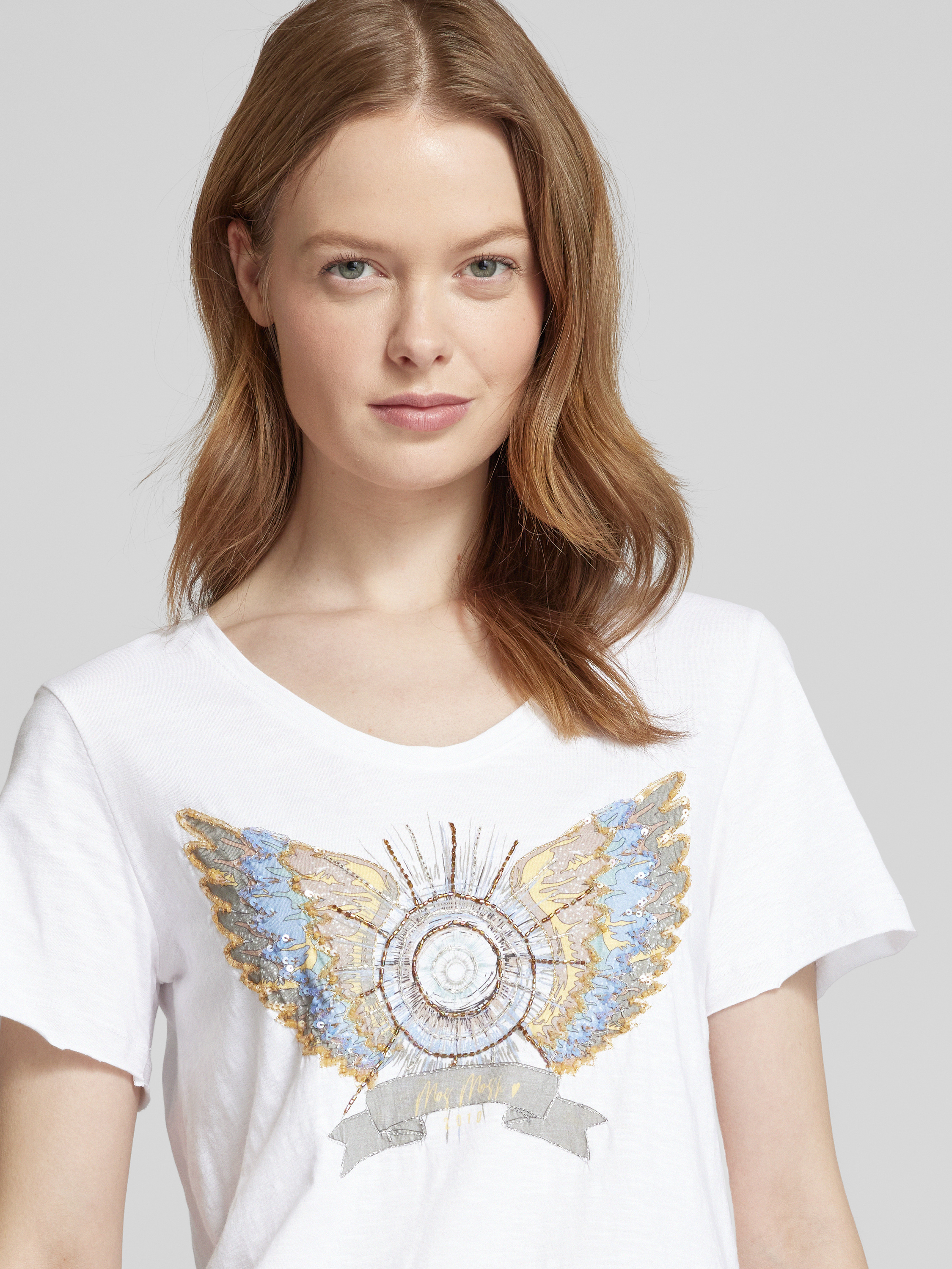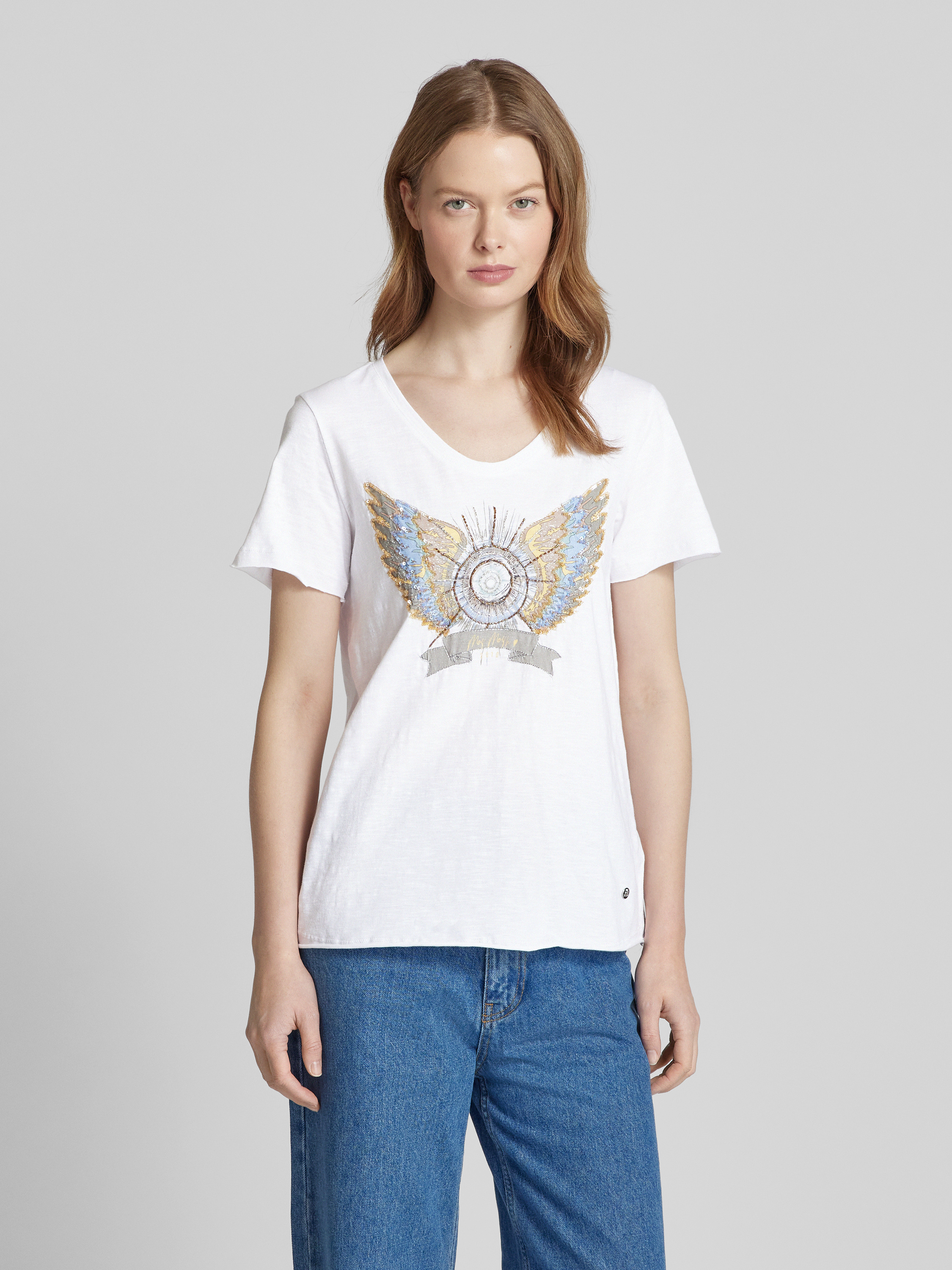 T-shirt z obszyciem z ozdobnych kamieni model ‘GETHI’ - biały
