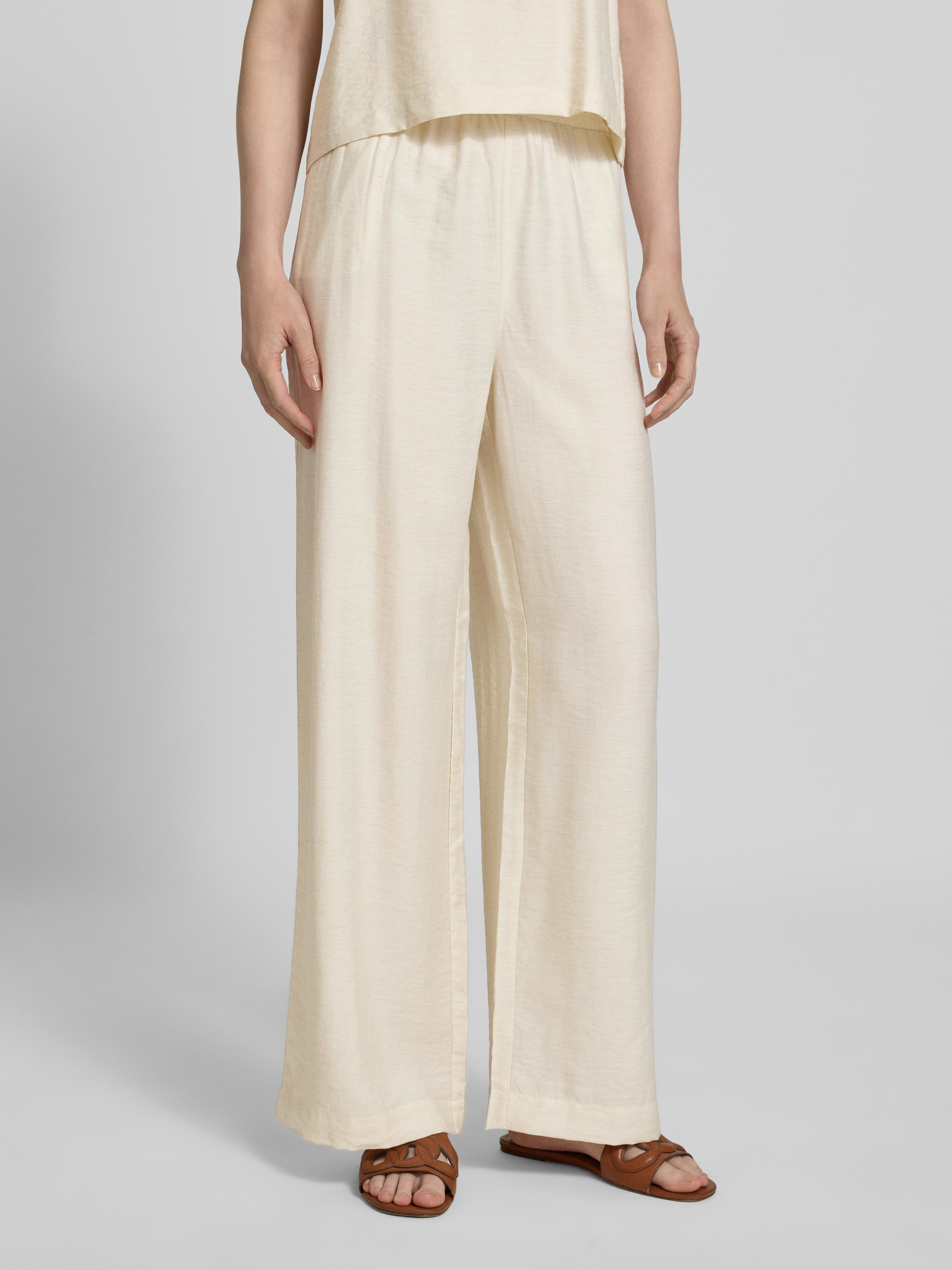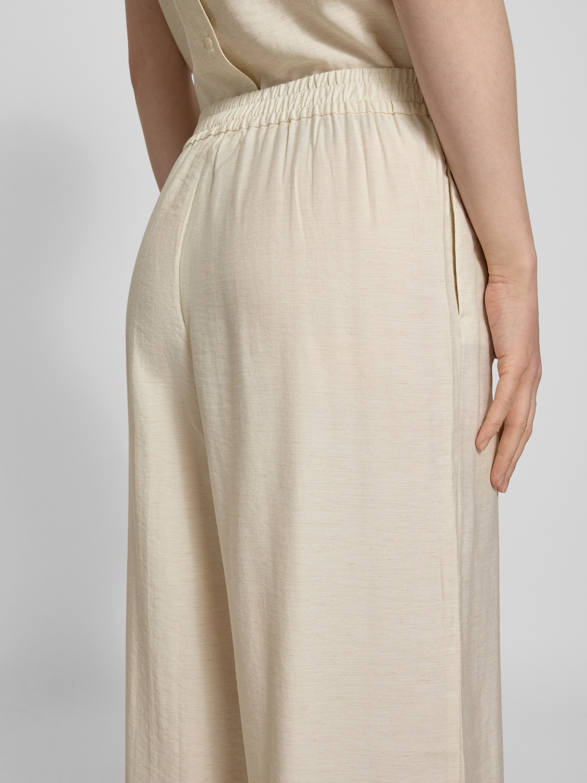 Spodnie materiałowe z wysokim stanem i elastycznym pasem model ‘Disa’ - piaskowy